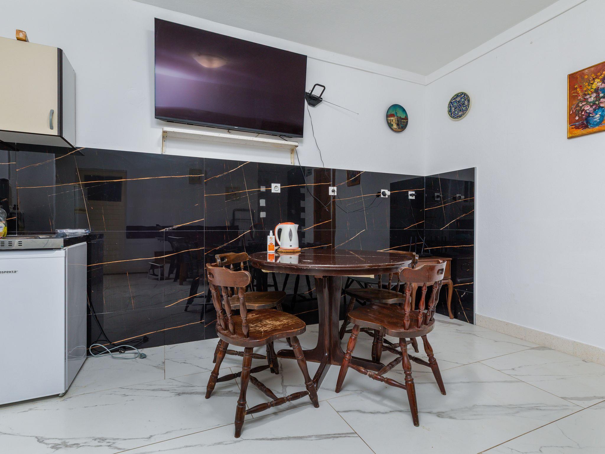 Umgebung des Objekts (Ordentlich), Hof (200m2, Kinderbereich, Sitzbereich), Parkplatz (Anzahl der Parkplätze: 6, Entfernung vom Objekt: im Hof), Pool: gemeinsam, Dimensionen: 6.8m x 3.5m x 1.6m, Wassertyp: Süßwasser, Grill: gemeinsam, WiFi Internet, Wäschewaschen, Föhn, Bügeleisen, Liegestühle