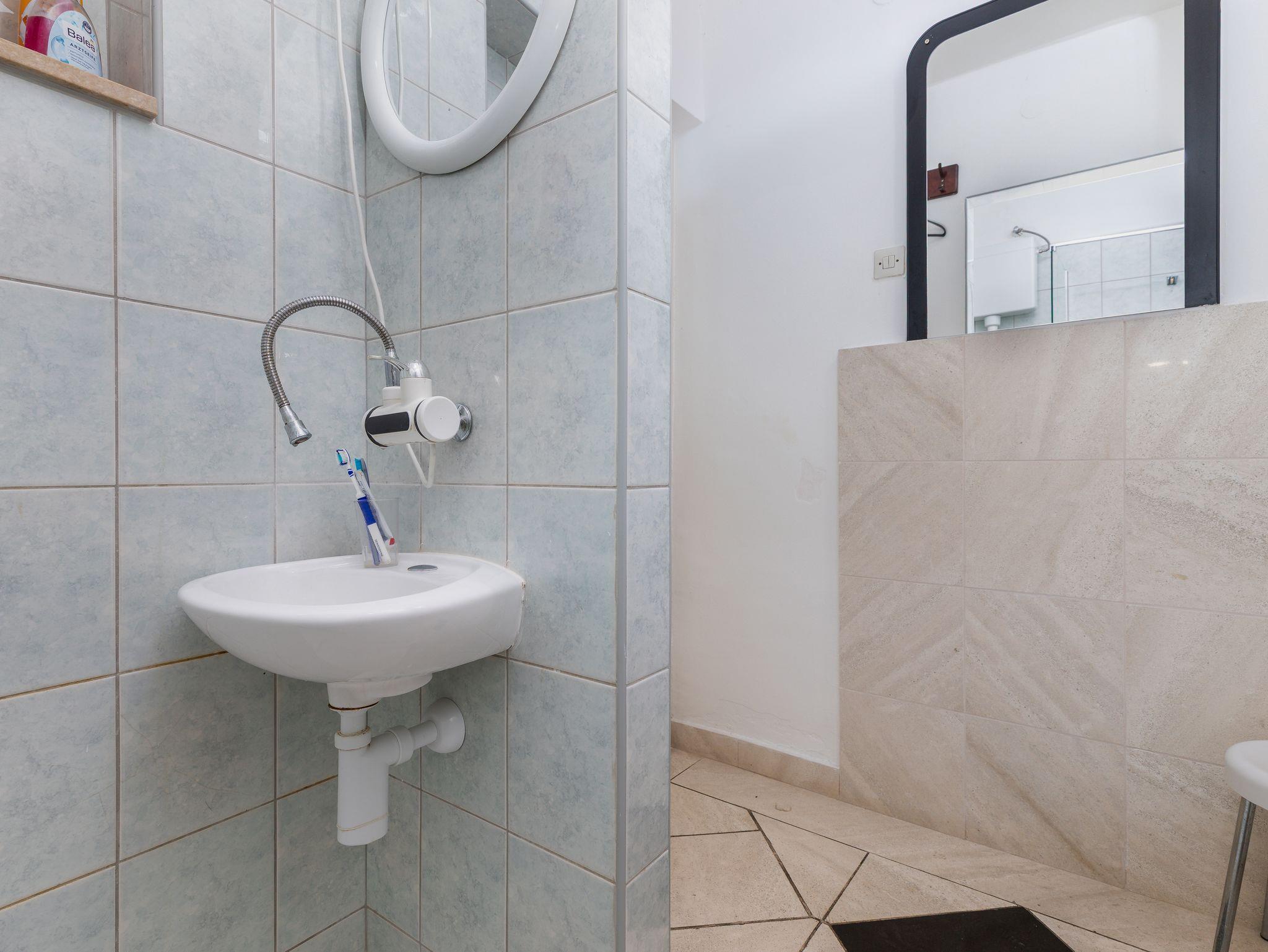 Ferienwohnung bietet Platz für 4 Gäste. Die Betten sind in Schlafzimmern, die es 1 gibt, und in Wohnzimmer, innerhalb einer Gesamtfläche von 36m2, angeordnet. Die Gäste haben eine eigene Terrasse zur Verfügung, auf der sie in warmen Sommernächten genießen können. Das Apartment bietet Meerblick. Es ist erlaubt, Speisen auf dem Gemeinschafts-Grill vorzubereiten. Während ihres Aufenthalts können Gäste das gemeinsam zur Nutzung stehende Schwimmbad benutzen. IM PREIS INBEGRIFFEN: Kurtaxe, Endreinigung, Klimatisierung, Pool, Parkplatz, Internet, Bügeleisen, Föhn, Liegestühle. VERBINDLICHE ZUSÄTZLICHE KOSTEN: Aufzahlung für Kurzaufenthalte (prozentualer Zuschlag pro Nächtigungsanzahl: 30% - 1, 20% - 2, 10% - 3). UNVERBINDLICHE ZUSÄTZLICHE KOSTEN: Wäschewaschen (10,00 € Waschen). Die Verfügbarkeit zusätzlicher Dienstleistungen in Ihrem reservierten Termin und die Preise derselben (falls nicht aufgeführt) müssen im Voraus überprüft werden. Zusätzliche Dienstleistungen die in der Zahlungsaufforderung nicht aufgeführt sind werden direkt beim Vermieter bezahlt, angenommen der Gast nutzt auch diese. Ermäßigung auf den Grundpreis: Gratistag 14=13 (bei einem Aufenthalt von 14 Tagen oder mehr erhalten Sie einen Gratistag für den Aufenthalt bis 31.12.26).