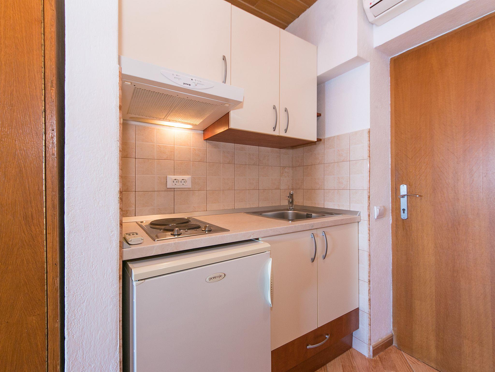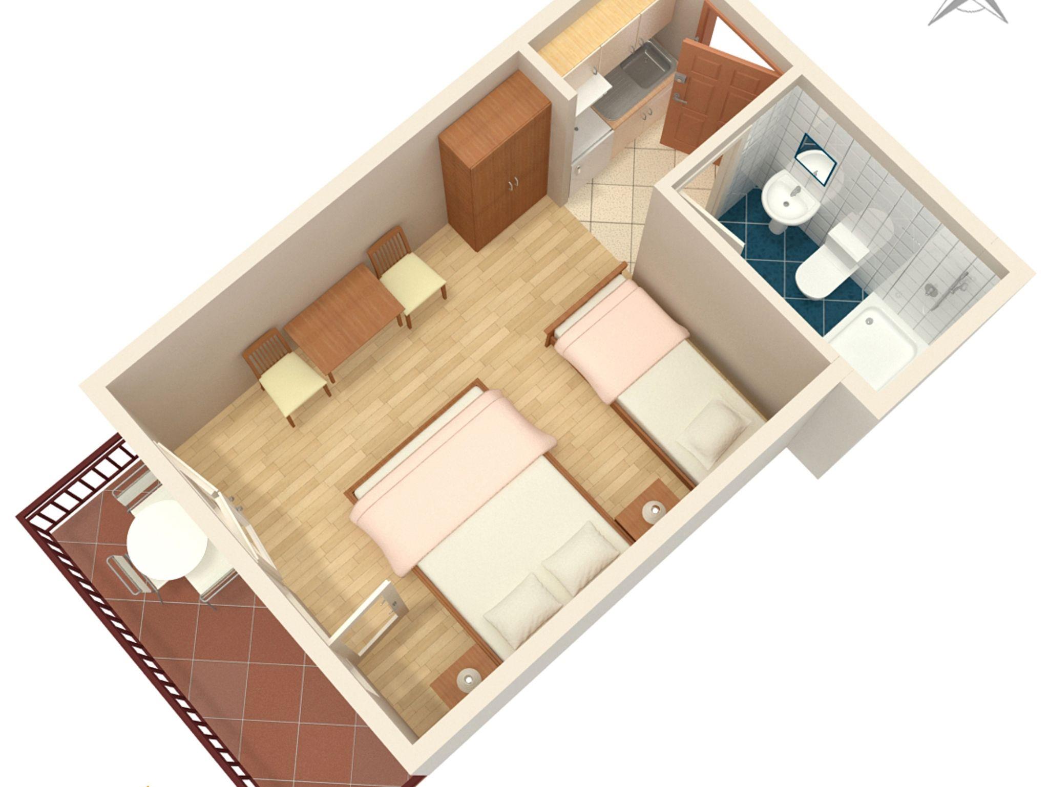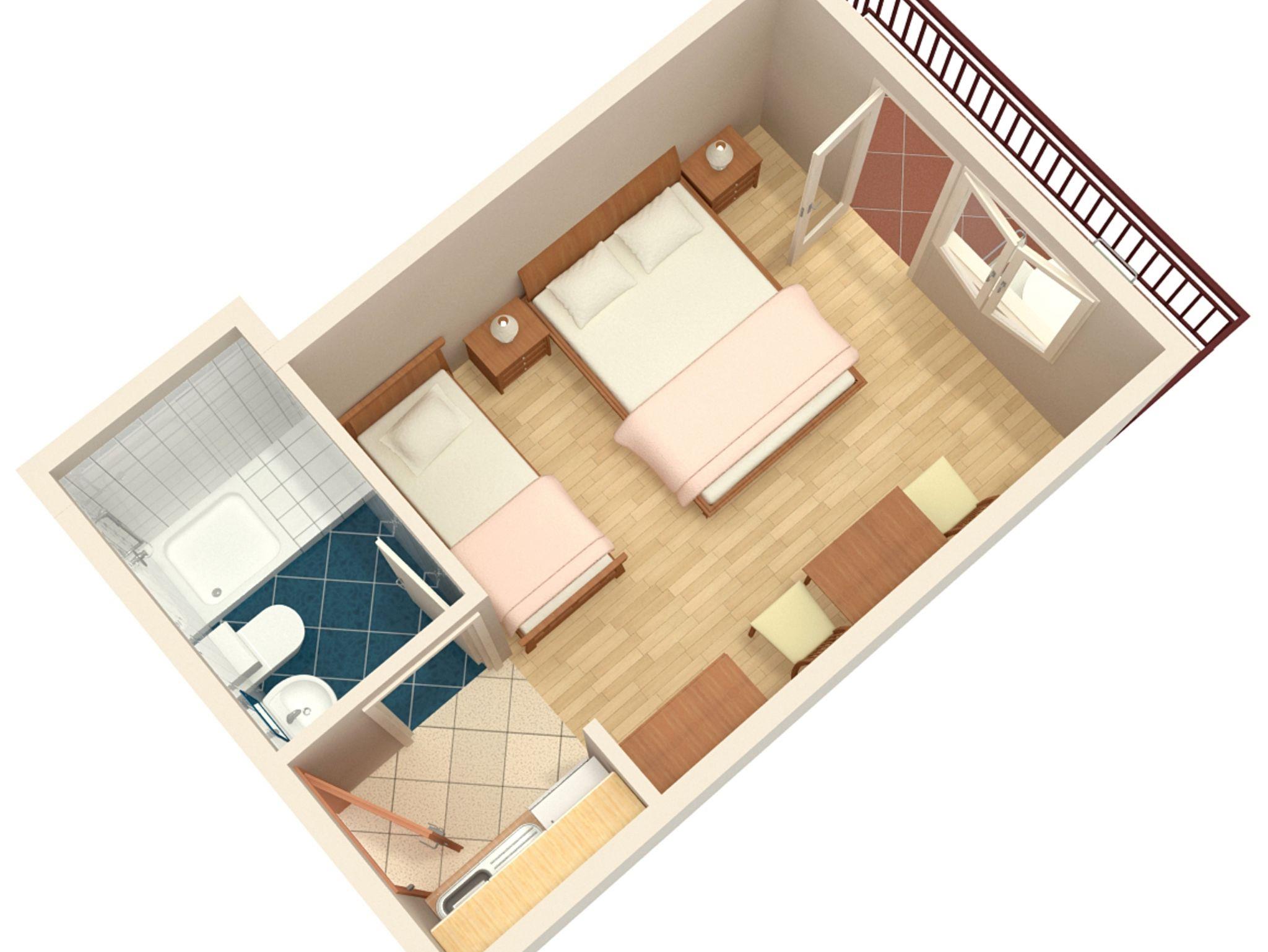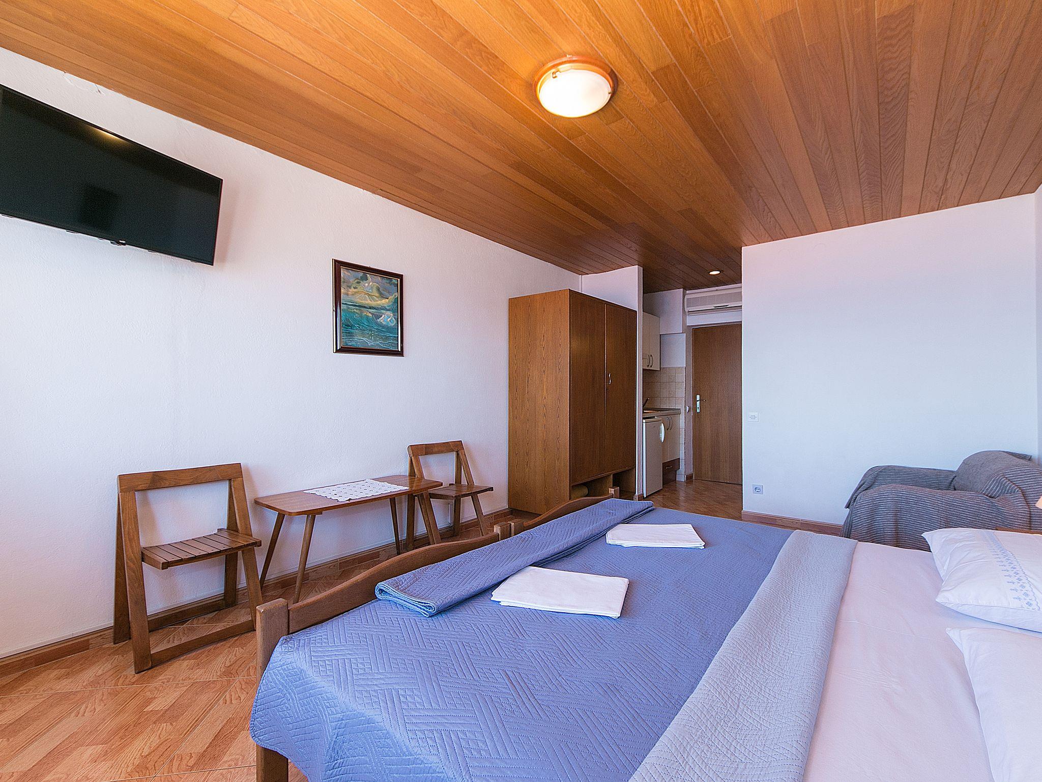 Studio bietet Platz für 3 Gäste. Die Betten sind in Schlafzimmern, die es 1 gibt, innerhalb einer Gesamtfläche von 22m2, angeordnet. Die Gäste haben einen eigenen Balkon zur Verfügung, auf der sie in warmen Sommernächten genießen können. Das Studio-Apartment bietet Meerblick. IM PREIS INBEGRIFFEN: Kurtaxe, Endreinigung, Klimatisierung, Parkplatz, Internet, Kinderbett, Bügeleisen, Bügelbrett, Föhn. Die Verfügbarkeit zusätzlicher Dienstleistungen in Ihrem reservierten Termin und die Preise derselben (falls nicht aufgeführt) müssen im Voraus überprüft werden. Zusätzliche Dienstleistungen die in der Zahlungsaufforderung nicht aufgeführt sind werden direkt beim Vermieter bezahlt, angenommen der Gast nutzt auch diese.