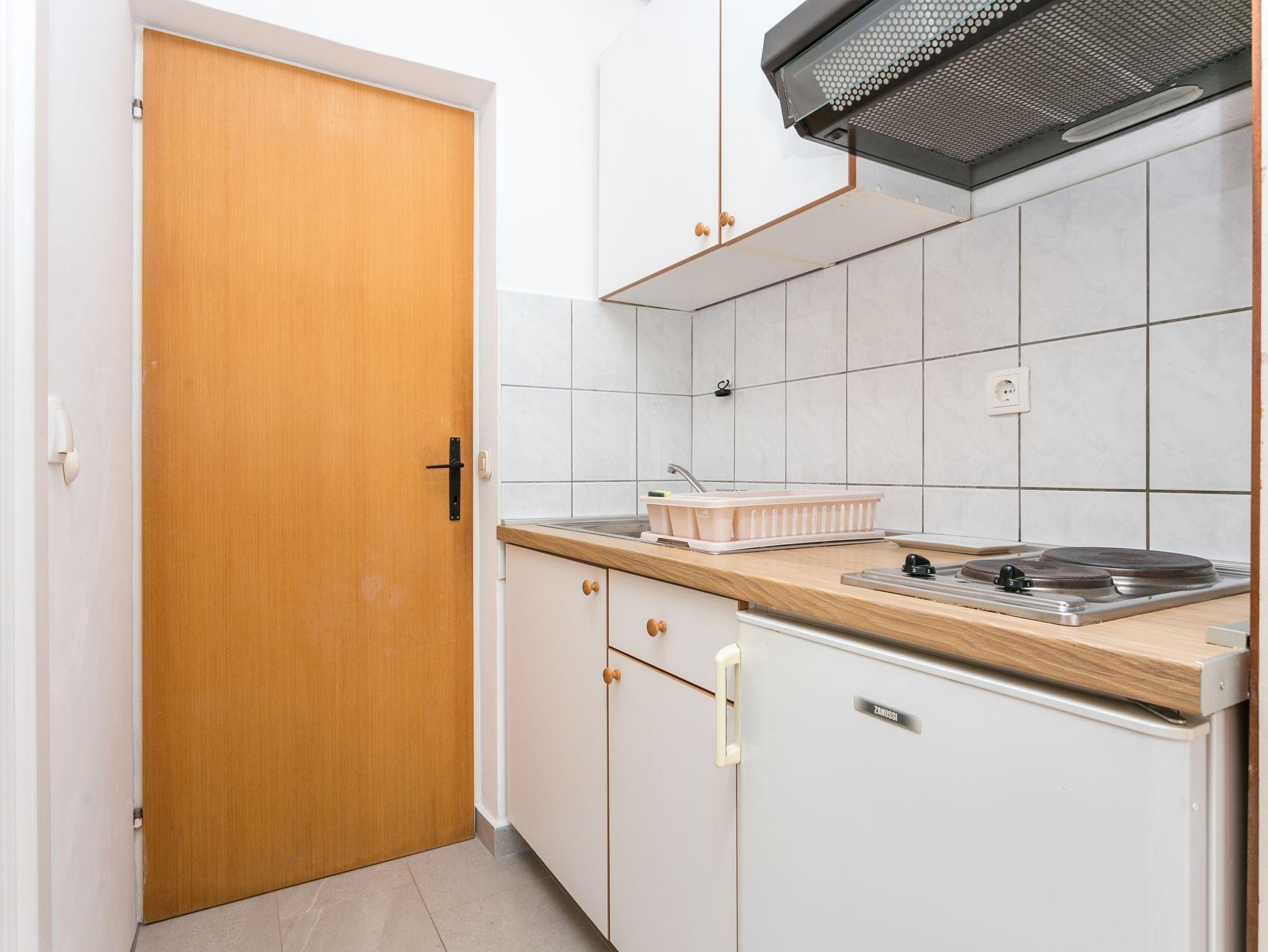 Studio bietet Platz für 3 Gäste. Die Betten sind in Schlafzimmern, die es 1 gibt, innerhalb einer Gesamtfläche von 25m2, angeordnet. Die Gäste haben eine eigene Terrasse zur Verfügung, auf der sie in warmen Sommernächten genießen können. Das Studio-Apartment bietet Meerblick. IM PREIS INBEGRIFFEN: Kurtaxe, Endreinigung, Zentralheizung, Parkplatz, Internet, Bügeleisen, Bügelbrett. VERBINDLICHE ZUSÄTZLICHE KOSTEN: Aufzahlung für Kurzaufenthalte (prozentualer Zuschlag pro Nächtigungsanzahl: 30% - 1, 20% - 2, 10% - 3). UNVERBINDLICHE ZUSÄTZLICHE KOSTEN: Klimatisierung (5,00 € pro Nacht), Wäschewaschen (5,00 € Waschen), Fahrrad (10,00 € täglich (pro Stück)). Die Verfügbarkeit zusätzlicher Dienstleistungen in Ihrem reservierten Termin und die Preise derselben (falls nicht aufgeführt) müssen im Voraus überprüft werden. Zusätzliche Dienstleistungen die in der Zahlungsaufforderung nicht aufgeführt sind werden direkt beim Vermieter bezahlt, angenommen der Gast nutzt auch diese. Ermäßigung auf den Grundpreis: Gratistag 14=13 (bei einem Aufenthalt von 14 Tagen oder mehr erhalten Sie einen Gratistag für den Aufenthalt bis 31.12.26).
