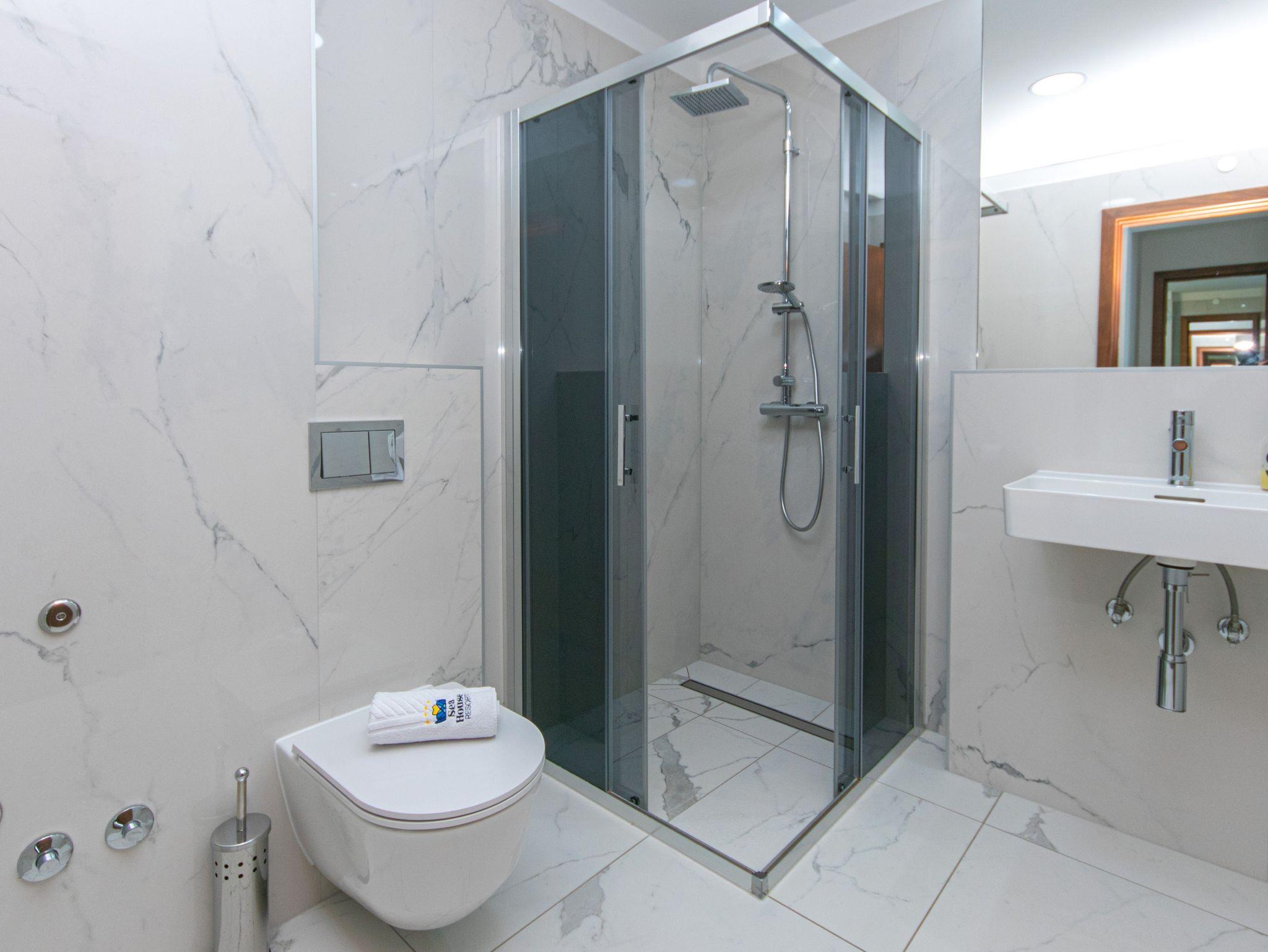 Hof (200m2, Wird mit einem anderen Objekt mitbenutzt, Sitzbereich), Parkplatz (Anzahl der Parkplätze: 8, Entfernung vom Objekt: im Hof), Pool: gemeinsam, Dimensionen: 10m x 5m x 1.5m, Wassertyp: Salzwasser, Heizung: Ja, Frühstück, WiFi Internet, Wäschewaschen, Föhn, Bügeleisen, Bügelbrett, Kinderbett
