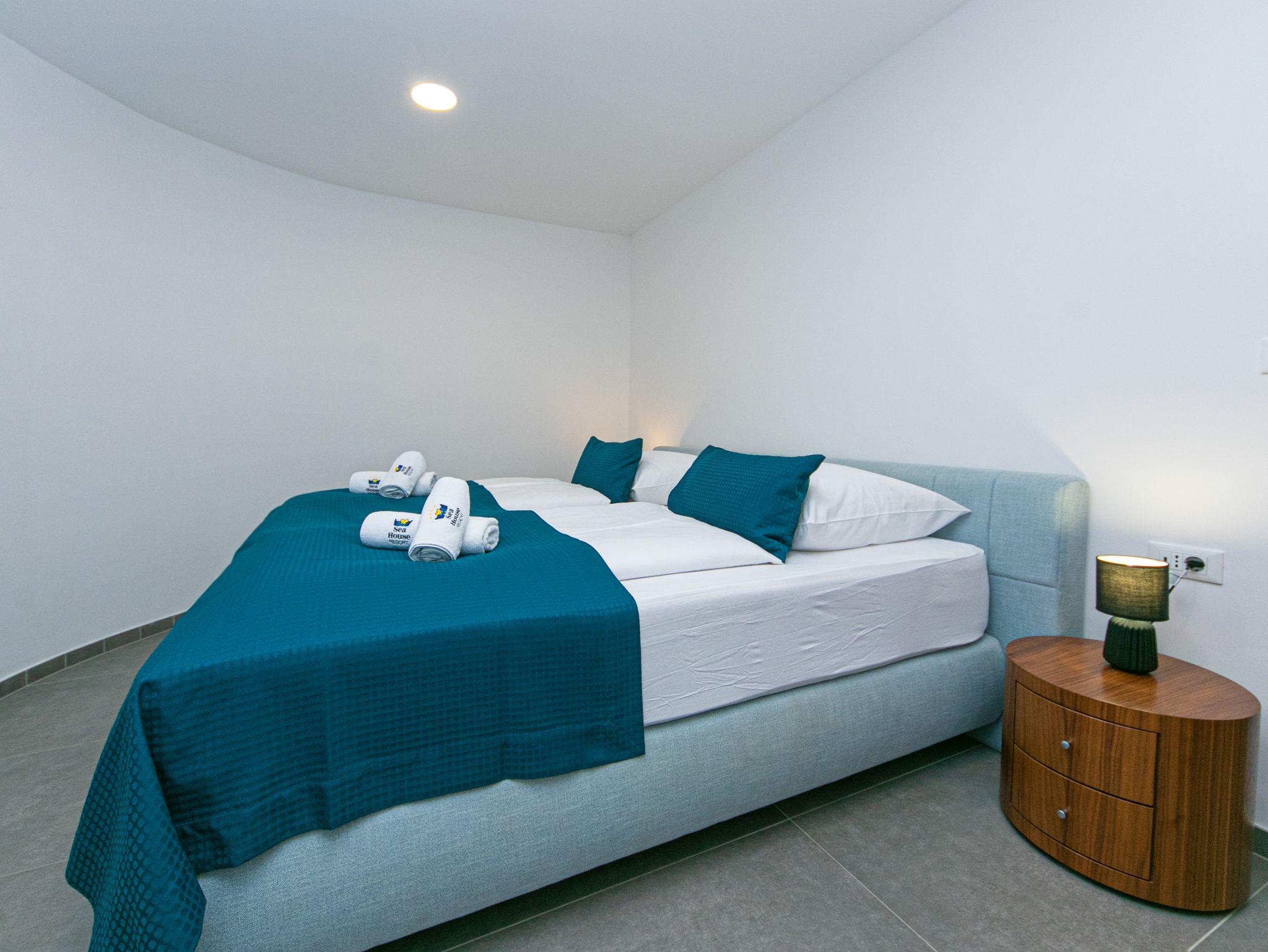 Ferienwohnung bietet Platz für 6 Gäste. Die Betten sind in Schlafzimmern, die es 2 gibt, und in Wohnzimmer, innerhalb einer Gesamtfläche von 71m2, angeordnet. Die Gäste haben eine eigene Terrasse zur Verfügung, auf der sie in warmen Sommernächten genießen können. Das Apartment bietet Meerblick. Während ihres Aufenthalts können Gäste das gemeinsam zur Nutzung stehende Schwimmbad benutzen. IM PREIS INBEGRIFFEN: Frühstück, Endreinigung, Klimatisierung, Pool, Parkplatz, Internet, Kinderbett, Bügeleisen, Bügelbrett, Föhn. VERBINDLICHE ZUSÄTZLICHE KOSTEN: Kurtaxe (Erwachsene 0,93 € - 2,00 € Nacht/Person, Kinderermäßigung 12 - 17 Jahre). UNVERBINDLICHE ZUSÄTZLICHE KOSTEN: Wäschewaschen (5,00 € Waschen). Die Verfügbarkeit zusätzlicher Dienstleistungen in Ihrem reservierten Termin und die Preise derselben (falls nicht aufgeführt) müssen im Voraus überprüft werden. Zusätzliche Dienstleistungen die in der Zahlungsaufforderung nicht aufgeführt sind werden direkt beim Vermieter bezahlt, angenommen der Gast nutzt auch diese.