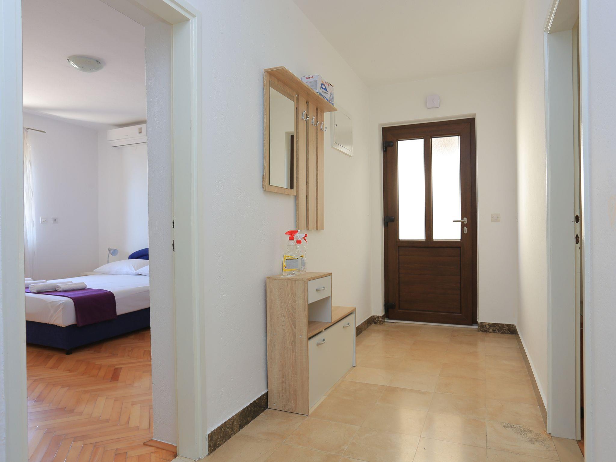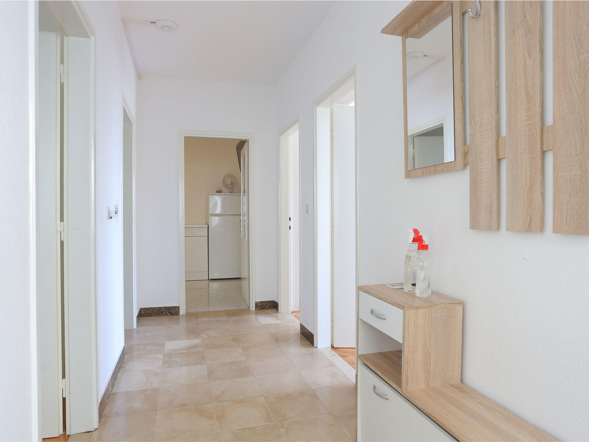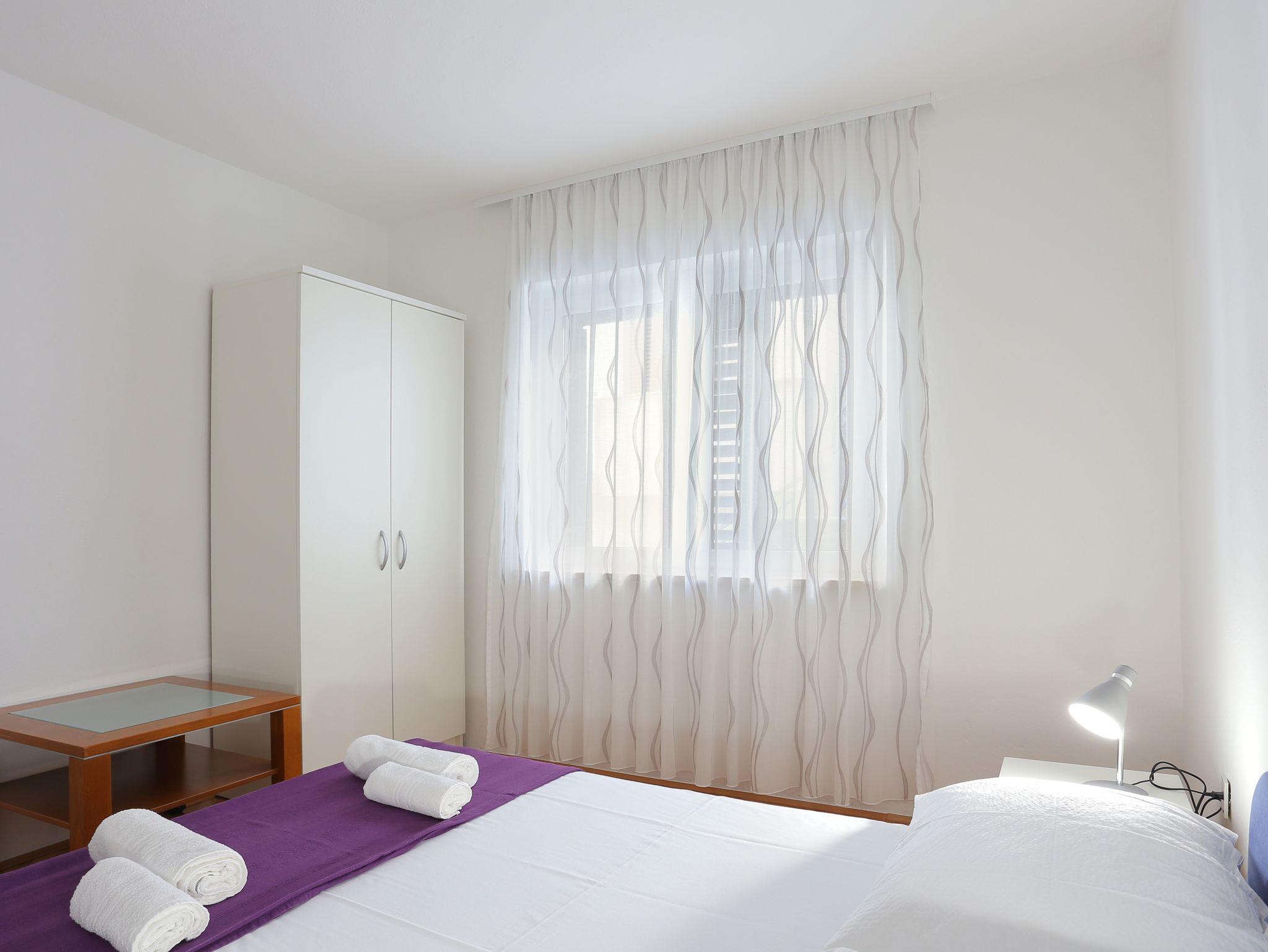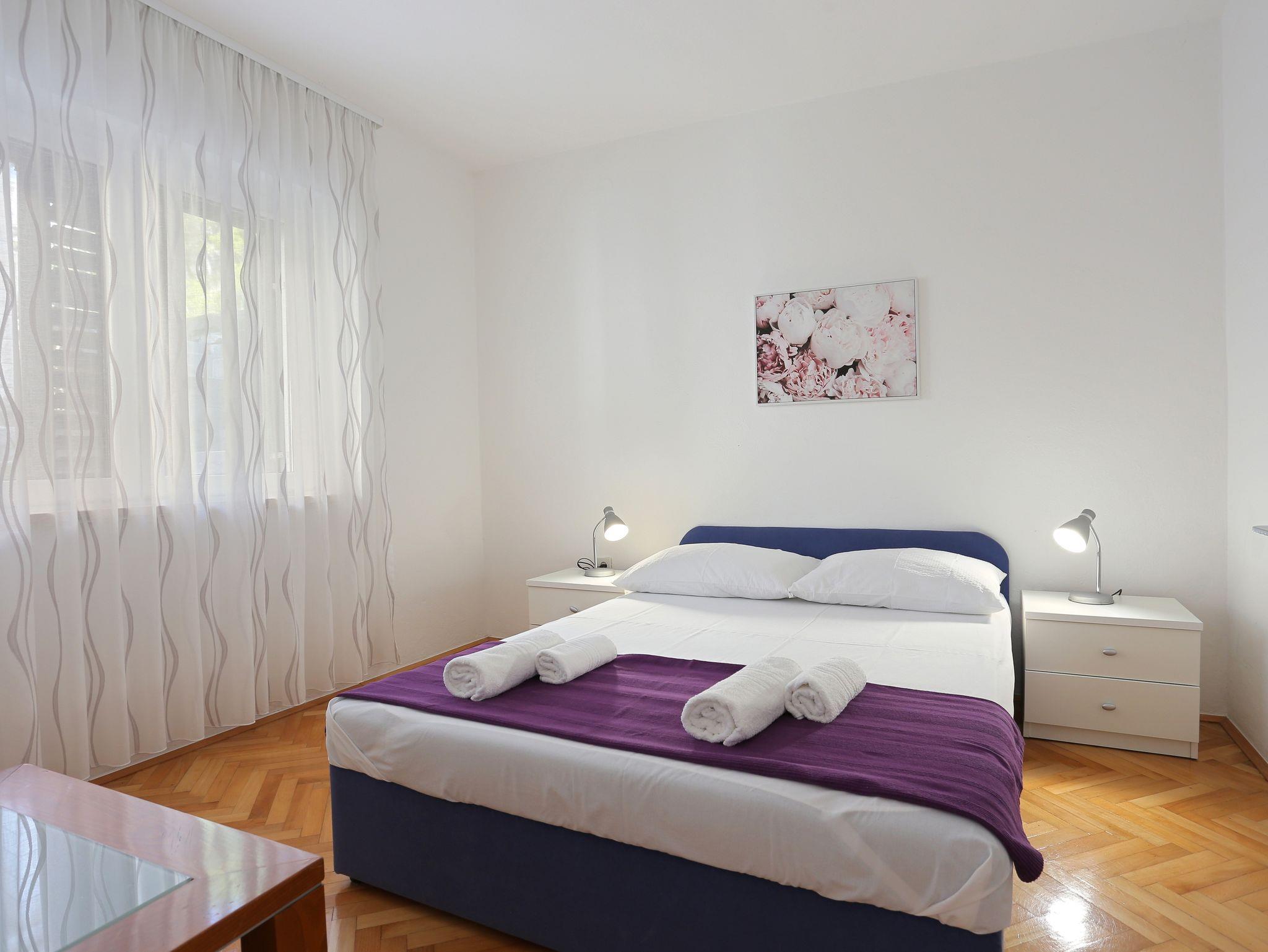Ferienwohnung bietet Platz für 8 Gäste. Die Betten sind in Schlafzimmern, die es 3 gibt, innerhalb einer Gesamtfläche von 68m2, angeordnet. Die Gäste haben eine eigene Terrasse zur Verfügung, auf der sie in warmen Sommernächten genießen können. Das Apartment bietet Meerblick. Es ist erlaubt, Speisen auf dem Gemeinschafts-Grill vorzubereiten. IM PREIS INBEGRIFFEN: Kurtaxe, Endreinigung, Klimatisierung, Parkplatz, Garage, Internet, Bügeleisen, Bügelbrett, Föhn, tragbarer Grill. VERBINDLICHE ZUSÄTZLICHE KOSTEN: Aufzahlung für Kurzaufenthalte (prozentualer Zuschlag pro Nächtigungsanzahl: 30% - 1, 20% - 2, 10% - 3). UNVERBINDLICHE ZUSÄTZLICHE KOSTEN: Wäschewaschen (5,00 € Waschen). Die Verfügbarkeit zusätzlicher Dienstleistungen in Ihrem reservierten Termin und die Preise derselben (falls nicht aufgeführt) müssen im Voraus überprüft werden. Zusätzliche Dienstleistungen die in der Zahlungsaufforderung nicht aufgeführt sind werden direkt beim Vermieter bezahlt, angenommen der Gast nutzt auch diese. Ermäßigung auf den Grundpreis: Gratistag 14=13 (bei einem Aufenthalt von 14 Tagen oder mehr erhalten Sie einen Gratistag für den Aufenthalt bis 31.12.26).