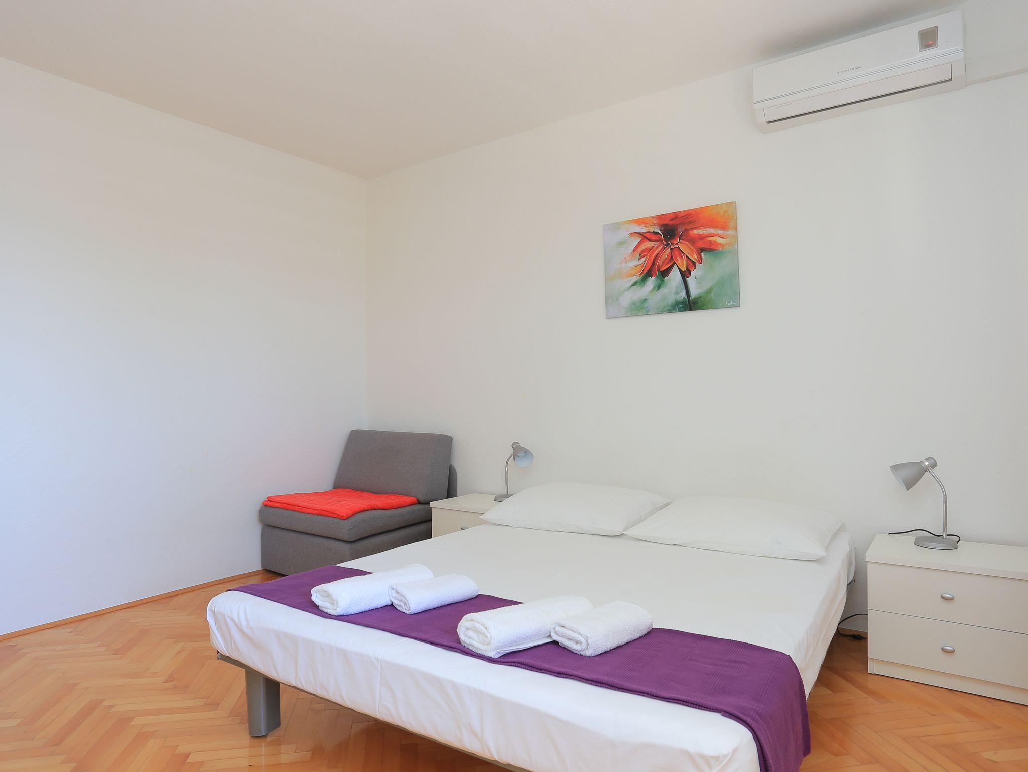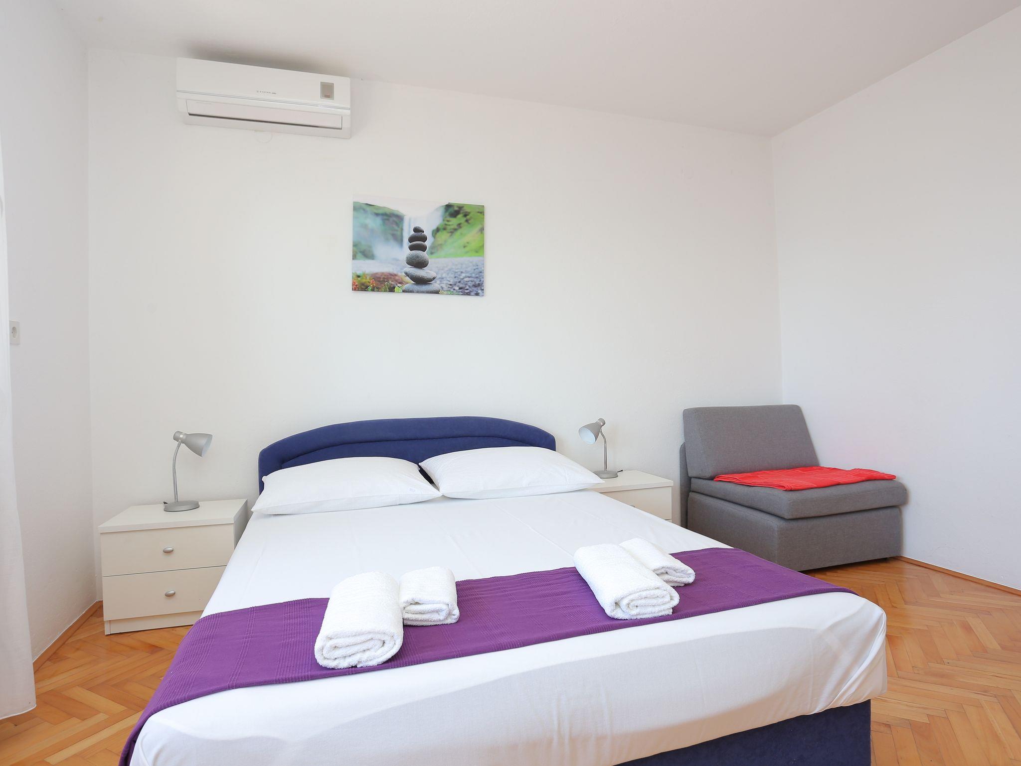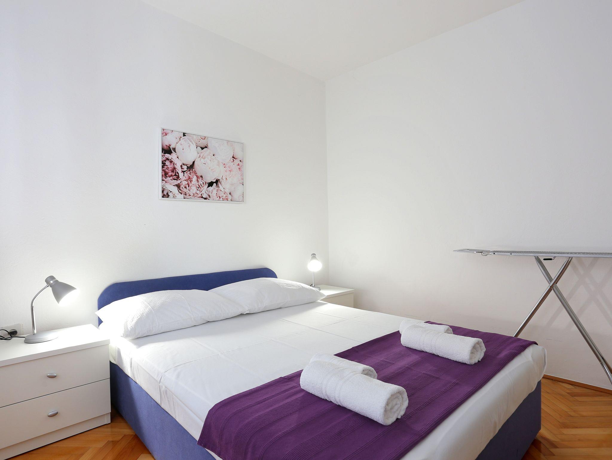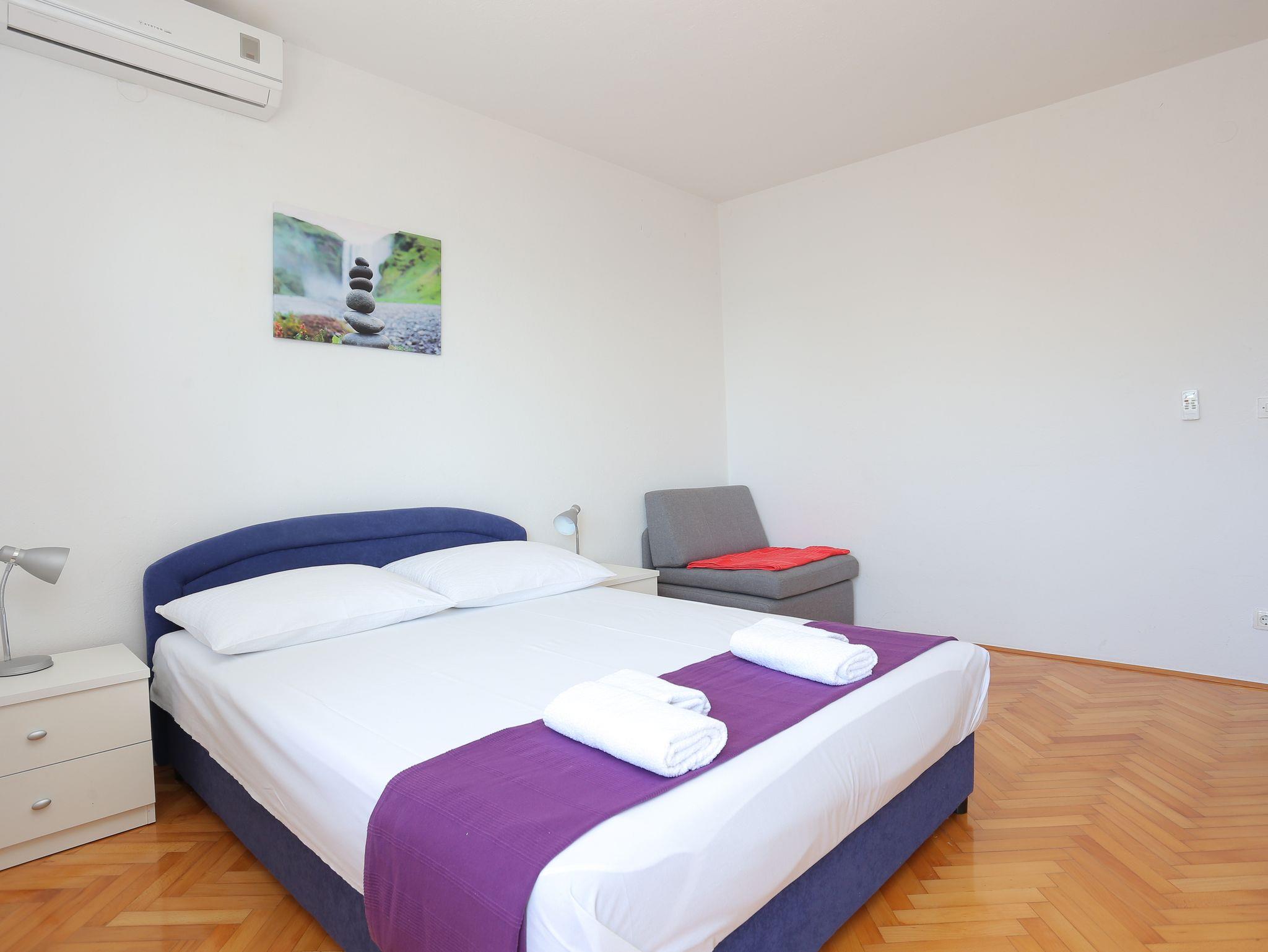 Ferienwohnung bietet Platz für 8 Gäste. Die Betten sind in Schlafzimmern, die es 3 gibt, innerhalb einer Gesamtfläche von 68m2, angeordnet. Die Gäste haben eine eigene Terrasse zur Verfügung, auf der sie in warmen Sommernächten genießen können. Das Apartment bietet Meerblick. Es ist erlaubt, Speisen auf dem Gemeinschafts-Grill vorzubereiten. IM PREIS INBEGRIFFEN: Kurtaxe, Endreinigung, Klimatisierung, Parkplatz, Garage, Internet, Bügeleisen, Bügelbrett, Föhn, tragbarer Grill. VERBINDLICHE ZUSÄTZLICHE KOSTEN: Aufzahlung für Kurzaufenthalte (prozentualer Zuschlag pro Nächtigungsanzahl: 30% - 1, 20% - 2, 10% - 3). UNVERBINDLICHE ZUSÄTZLICHE KOSTEN: Wäschewaschen (5,00 € Waschen). Die Verfügbarkeit zusätzlicher Dienstleistungen in Ihrem reservierten Termin und die Preise derselben (falls nicht aufgeführt) müssen im Voraus überprüft werden. Zusätzliche Dienstleistungen die in der Zahlungsaufforderung nicht aufgeführt sind werden direkt beim Vermieter bezahlt, angenommen der Gast nutzt auch diese. Ermäßigung auf den Grundpreis: Gratistag 14=13 (bei einem Aufenthalt von 14 Tagen oder mehr erhalten Sie einen Gratistag für den Aufenthalt bis 31.12.26).