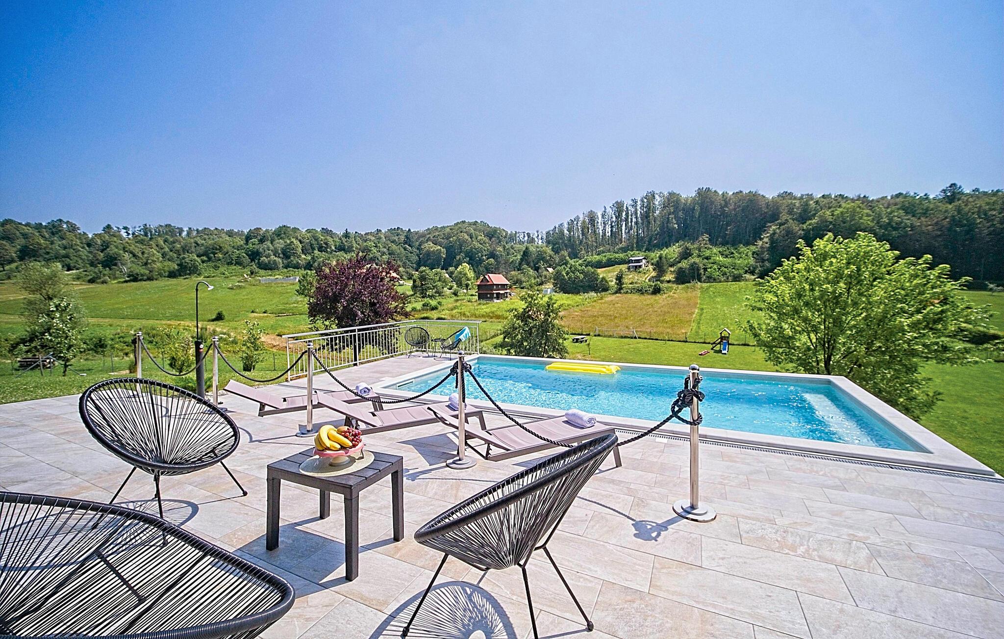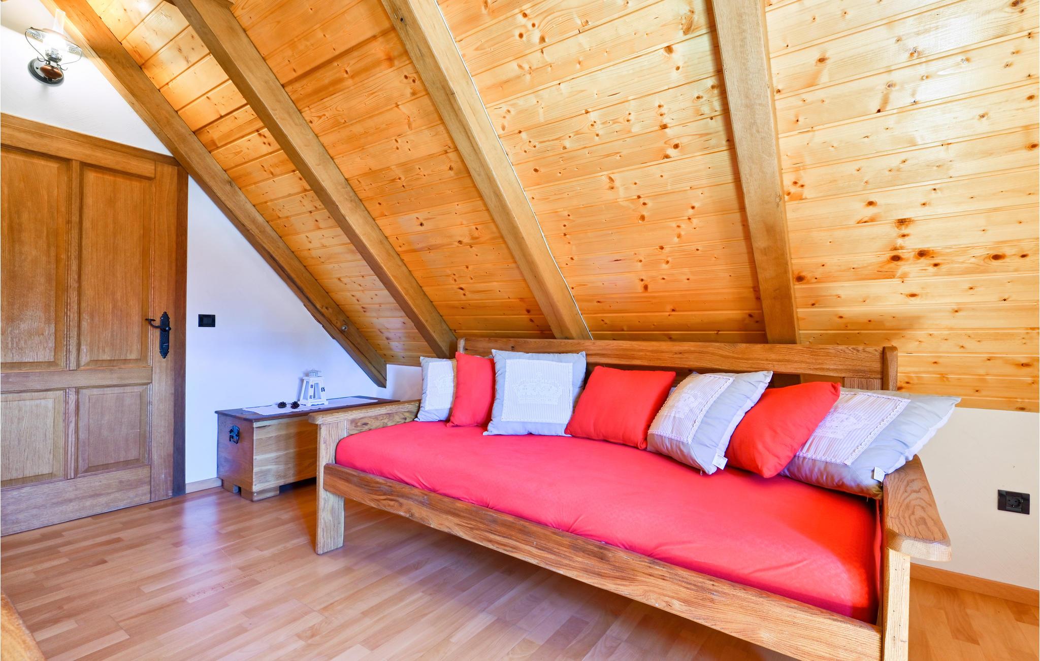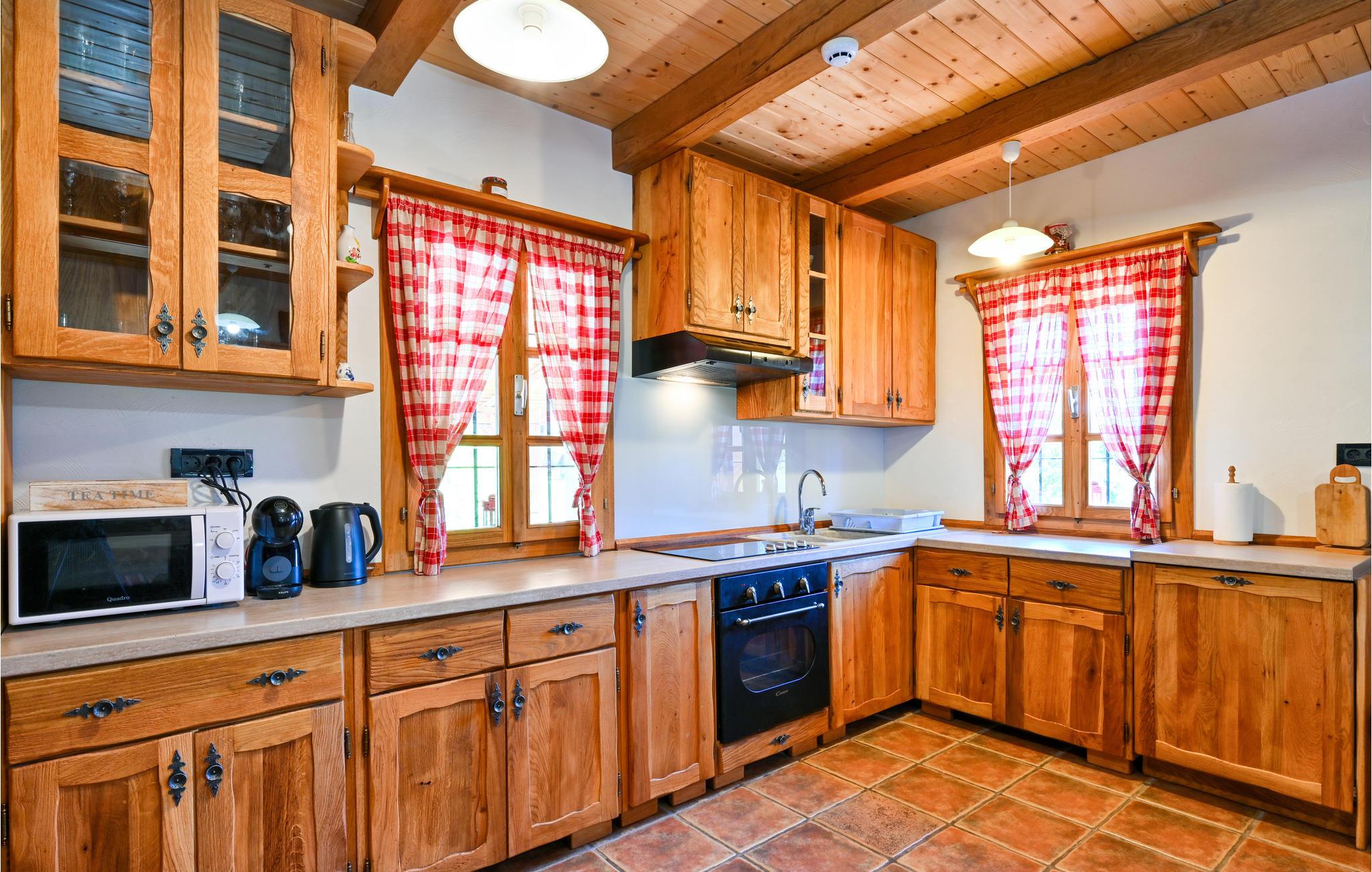 Dette rummelige feriehus byder jer velkommen i en blid bjergskråning omgivet af et malerisk landskab med skove og enge. Alt er her til en hyggelig og varieret familietid væk fra hverdagen. Glæd jer til hyggelige spilleaftener ved pejsen, muntre måltider i en rustik og raffineret atmosfære, og udfordr jer selv ved bordfodboldbordet.