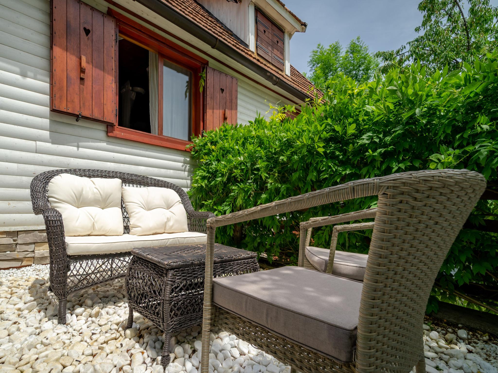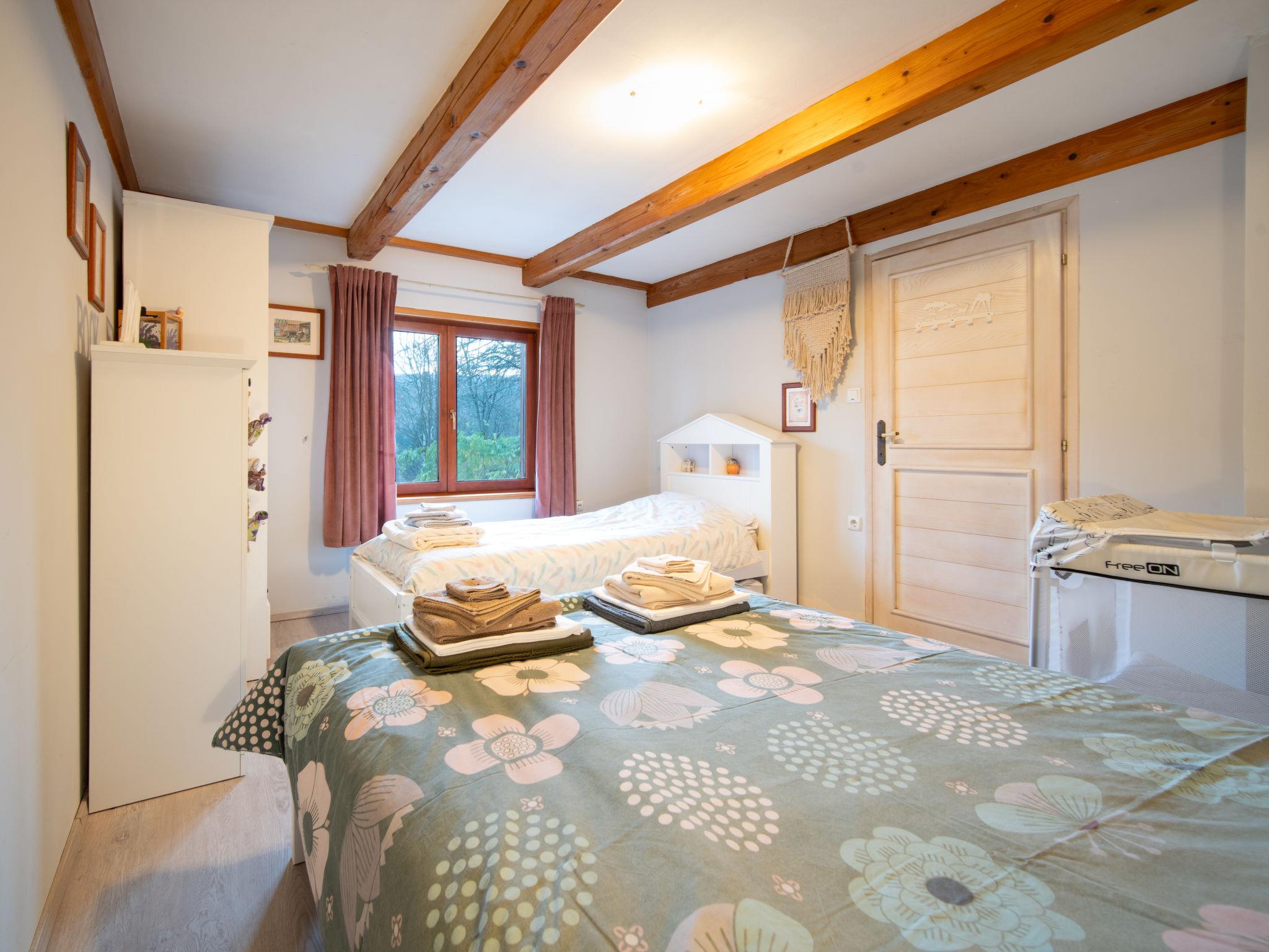 3-room house 120 m2. Living/dining room with satellite TV. Walk-through room with 1 french bed (160 cm, length 200 cm), wood-burning stove. 1 room with 1 bed (90 cm, length 200 cm), 1 french bed (140 cm, length 200 cm). Open kitchen (4 hot plates, oven, toaster, kettle, microwave, freezer). Bath/WC. Electric heating, wood heating. Terrace 15 m2. Terrace furniture. View of the forest. Facilities: safe, iron, mosquito net, hair dryer, logs (free). Internet (WiFi, free). E-charging station. Please note: 2 pets/ dogs allowed. Fire extinguisher.