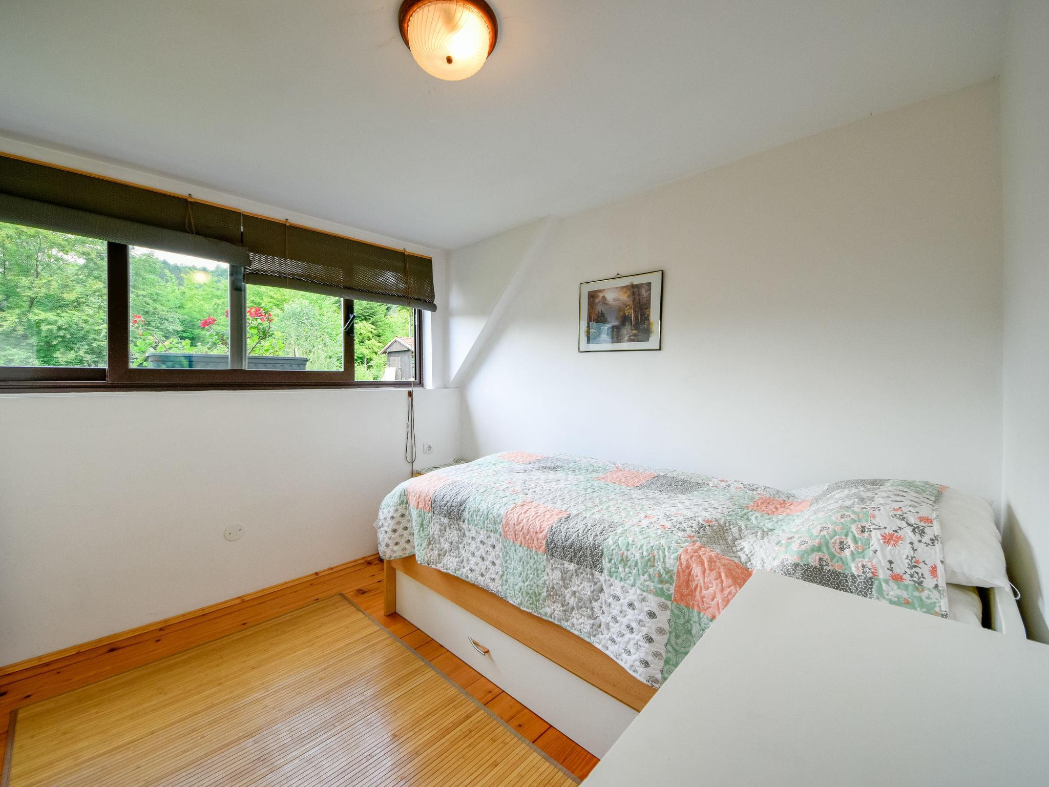 4-room house 100 m2 on 2 levels. Living/dining room 40 m2 with open-hearth fireplace and satellite TV (flat screen). Exit to the swimming pool. Open kitchen (4 hot plates, oven, dishwasher, microwave, freezer, electric coffee machine). Shower/WC. Upper floor: entrance hall with air conditioning. Exit to the balcony. 1 room with 1 bed (90 cm, length 190 cm), 1 pull-out bed (length 190 cm). 1 room with sloping ceilings, ceiling height 107 - 215 cm with 1 french bed (160 cm, length 190 cm). Exit to the balcony. 1 room with sloping ceilings, ceiling height 107 - 215 cm with 1 french bed (140 cm, length 200 cm). Exit to the balcony. Shower/WC. Heating (extra). Balcony 3 m2, balcony 7 m2, terrace 55 m2, roofed. Terrace furniture, deck chairs. View of the swimming pool, the countryside and the forest. Facilities: hair dryer, logs (extra). Internet (WiFi, free). Parking (roofed, 1 car).