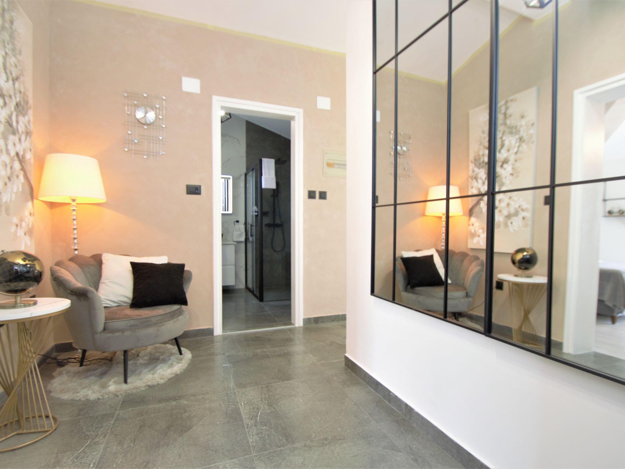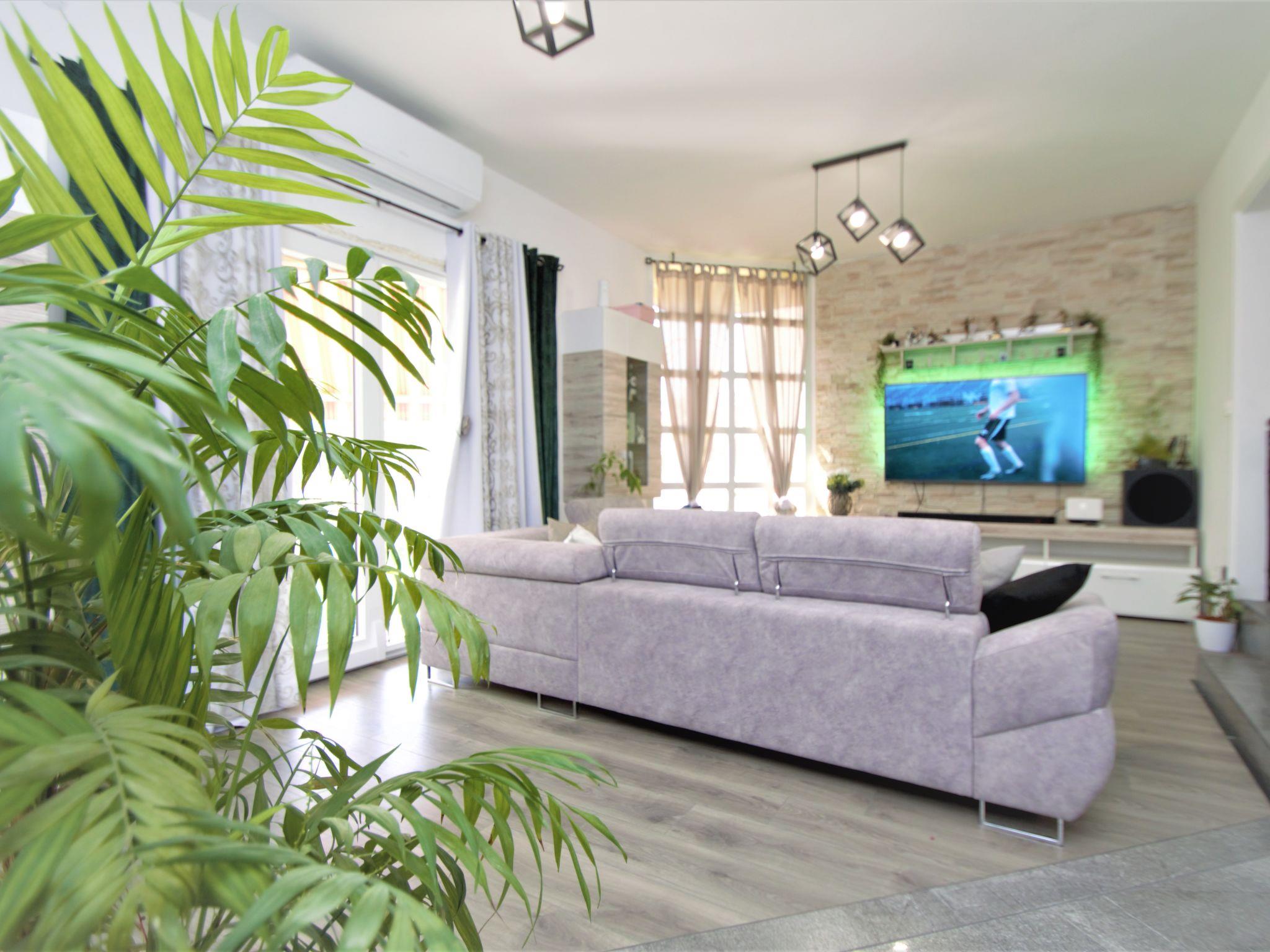 4-room semi-detached house 170 m2 on 2 levels, south facing position. Living/dining room 40 m2 with satellite TV (flat screen), air conditioning. Exit to the terrace. Open kitchen (oven, dishwasher, 4 ceramic glass hob hotplates, toaster, kettle, microwave, freezer, electric coffee machine). Shower/WC. Upper floor: 2 rooms, each room with 1 french bed (160 cm, length 200 cm), satellite TV (flat screen), air conditioning. Exit to the terrace. 1 room with 1 bed (80 cm, length 190 cm), 1 french bed (160 cm, length 200 cm), satellite TV (flat screen), air conditioning. Exit to the balcony. Shower/WC. No heating option. Balcony 5 m2, terrace 15 m2. Terrace furniture. Facilities: safe, children's high chair, baby cot, hair dryer. Internet (WiFi, free).
