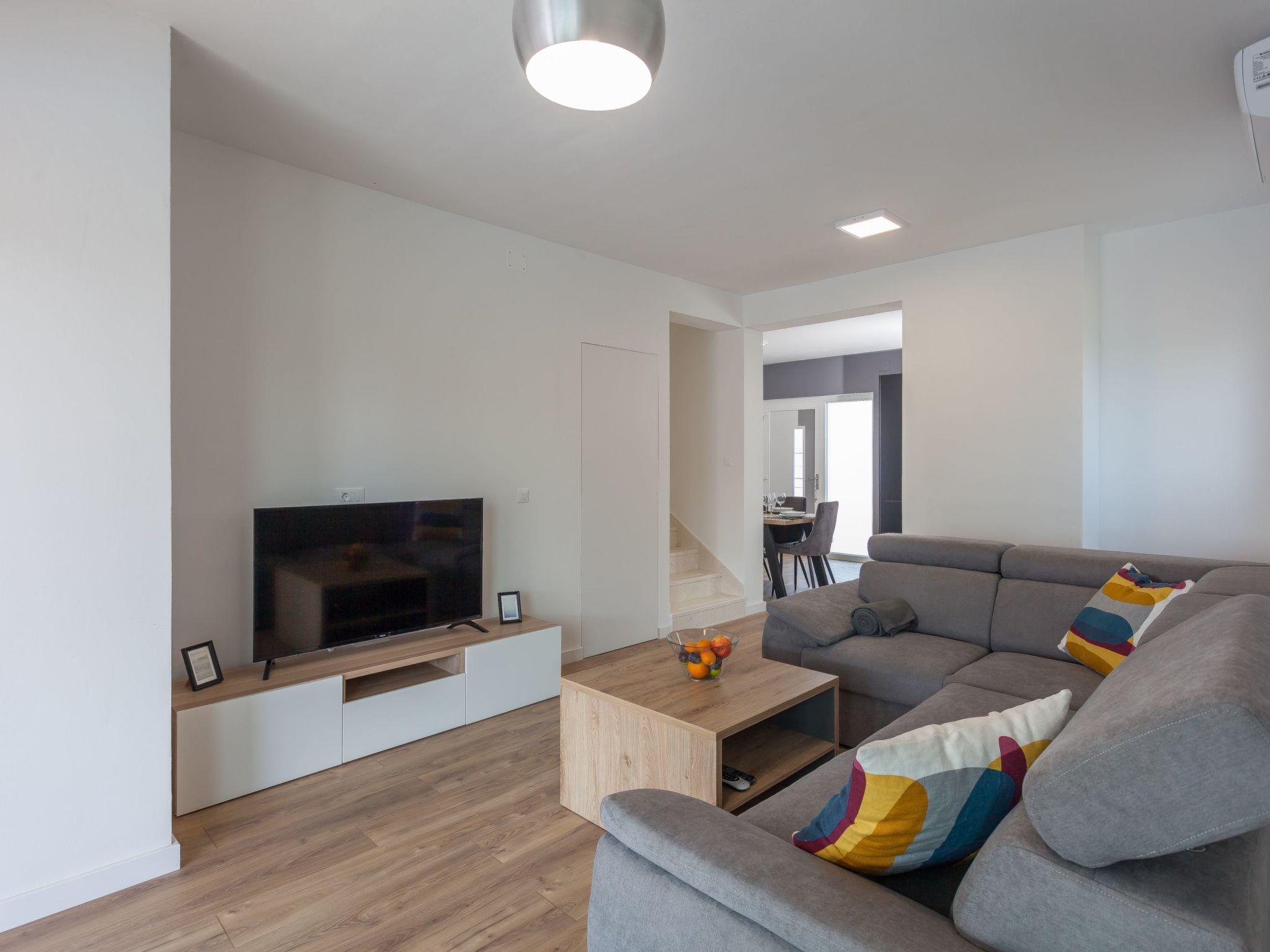 Outside there is a private swimming pool and around it there are 5 sun loungers which provide great comfort when relaxing in the summer heat with a cold drink. A large trampoline is available for children to enjoy in the yard. Guests can also enjoy a barbecue and the outside dining area which is the perfect place for various gatherings. There is also private parkin available, and all important points of interest guests might be interested in, like bars, restaurants and shops, are available within 1 kilometre radius.