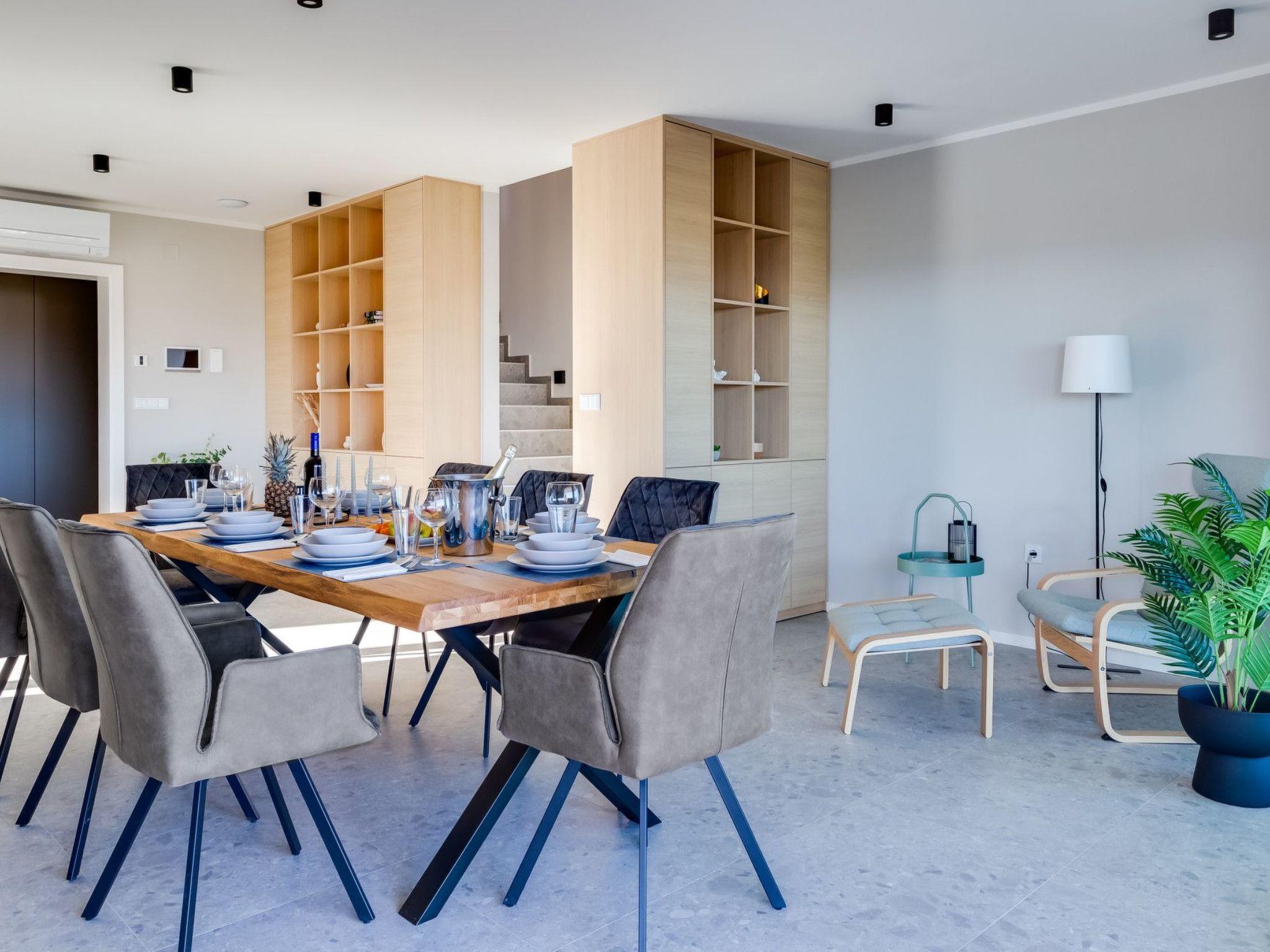 On the first floor of the villa, there is a living room, a dining room, and another kitchen, providing enough space for group gatherings and socializing. The terrace offers another table where you can enjoy dinner under the stars, as well as a lounge area where you can relax at any time of the day.