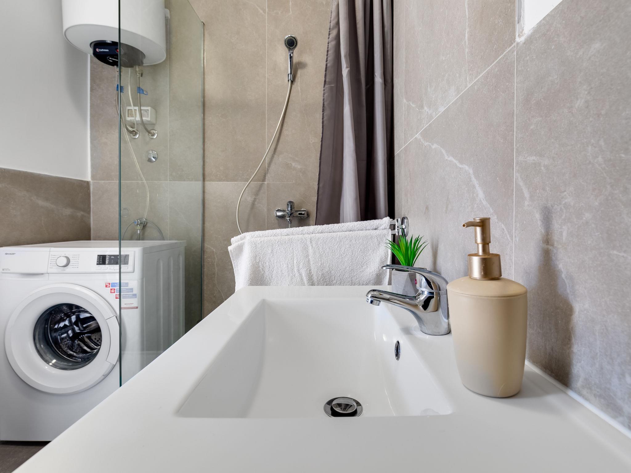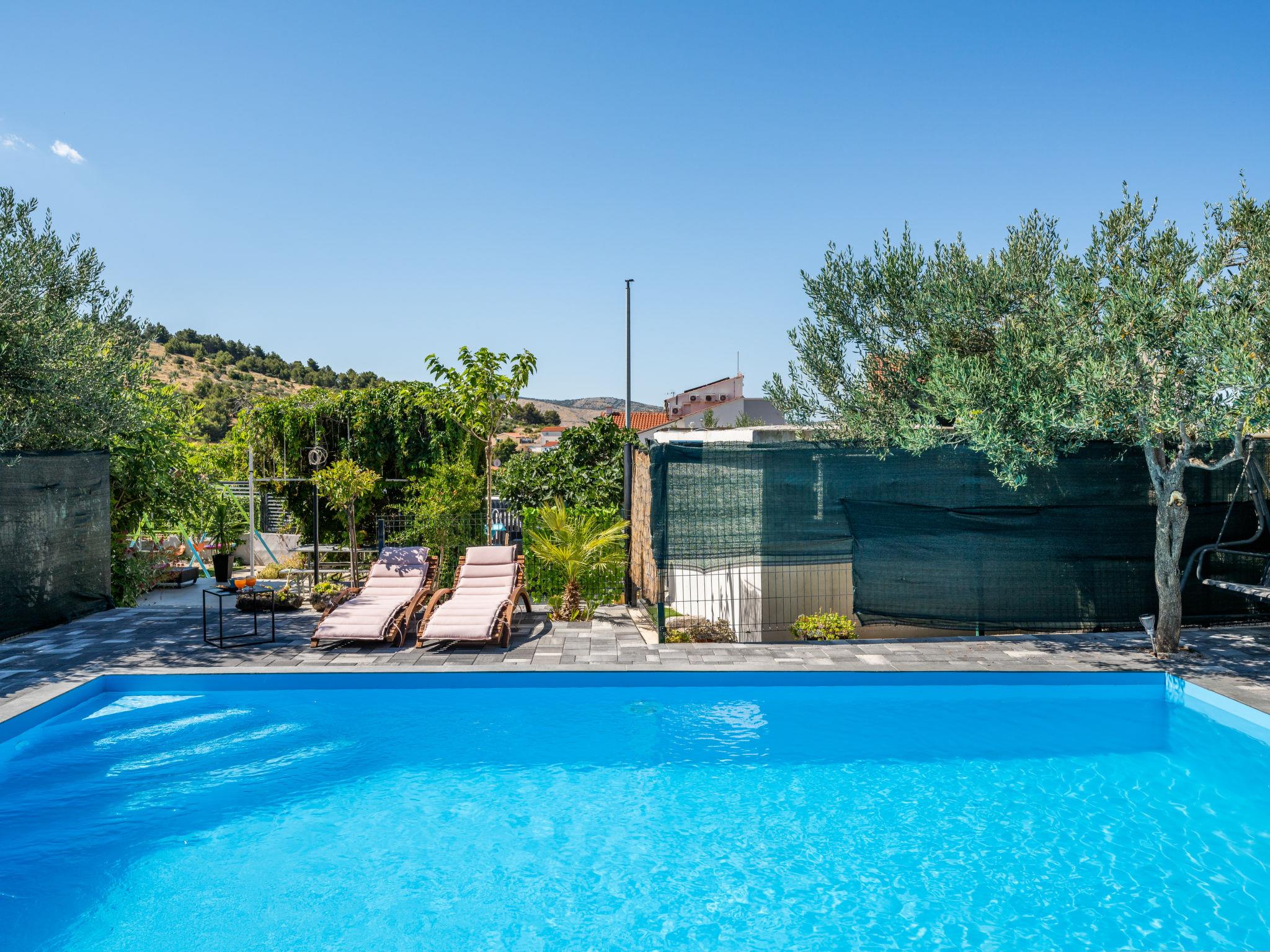 Žaboric 3 km from Brodarica: Semi-detached house "Marijana". 10 km from the centre of Šibenik, in a sunny position, 800 m from the sea, 800 m from the beach, located by a road. Private: property 430 m2, swimming pool (8 x 4 m, depth 150 cm, seasonal availability: 15.May. - 31.Oct.) with internal staircase. Outdoor shower, terrace (20 m2), garden furniture. In the house: internet access, washing machine. Parking (for 2 cars) at the house on the premises. Shop 500 m, shopping centre 7 km, restaurant 800 m, bus stop 300 m, pebble beach 800 m. Nearby attractions: NP Krka 22 km, Aquapark 7 km.