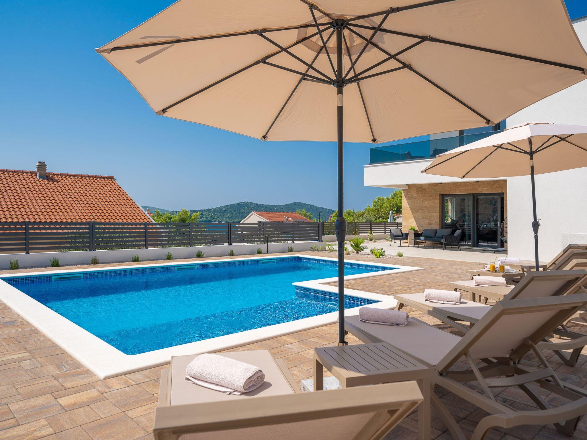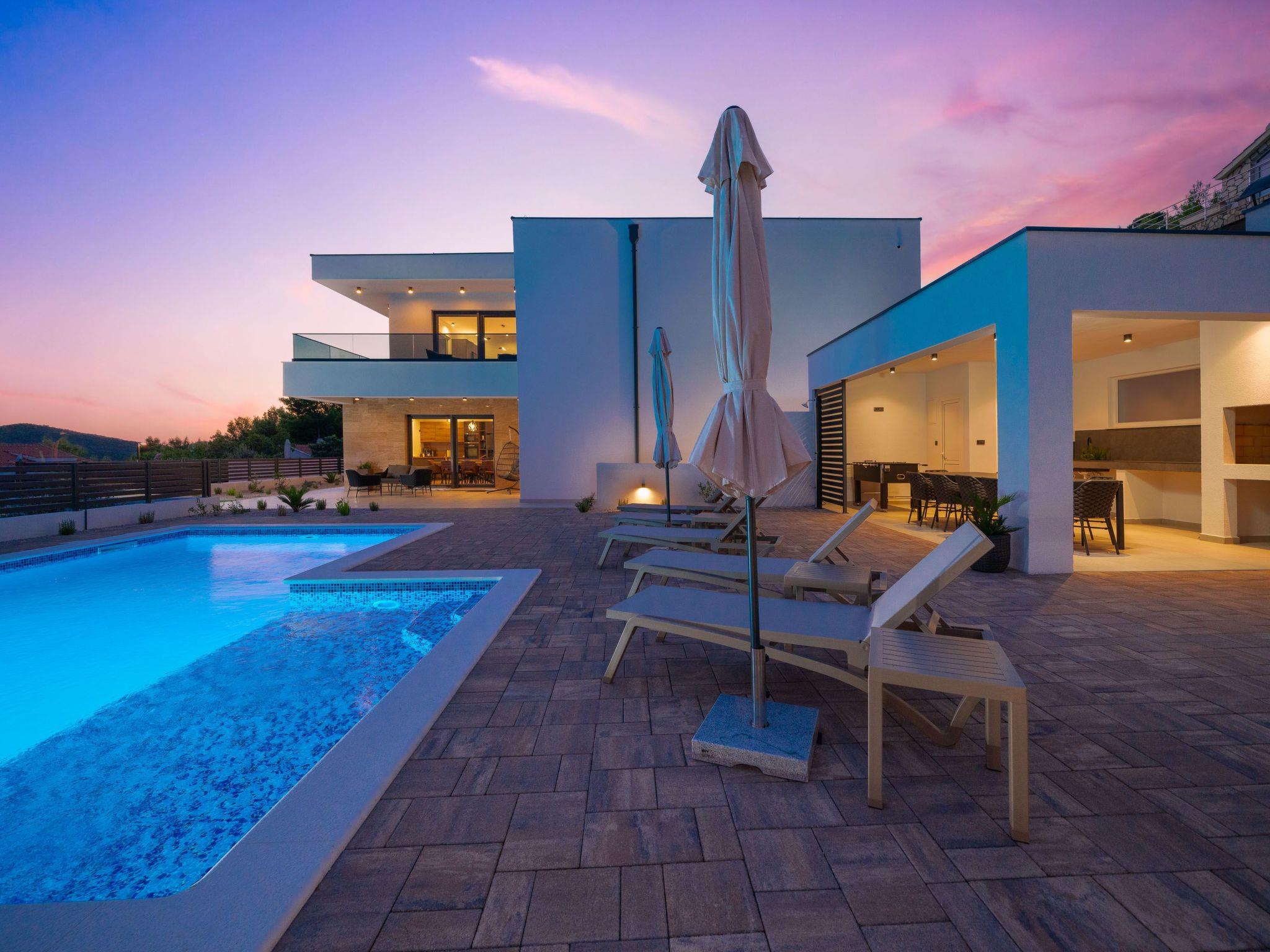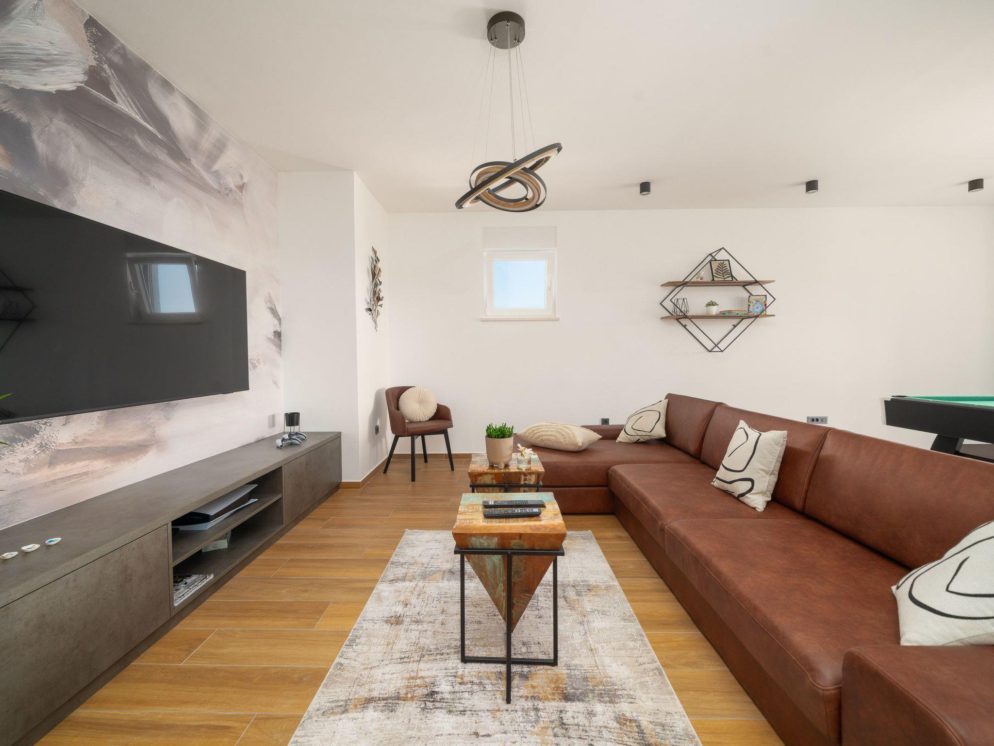 The outdoor area of Villa Suncica is equally impressive, designed to provide the ultimate in leisure and relaxation. A beautiful yard embraces a heated pool, promising endless fun and refreshment under the sun. The outdoor kitchen invites you to indulge in al fresco dining, creating memorable meals in the company of loved ones. Additionally, a private roof terrace offers a secluded spot to unwind or entertain, making every moment spent outdoors truly unforgettable.