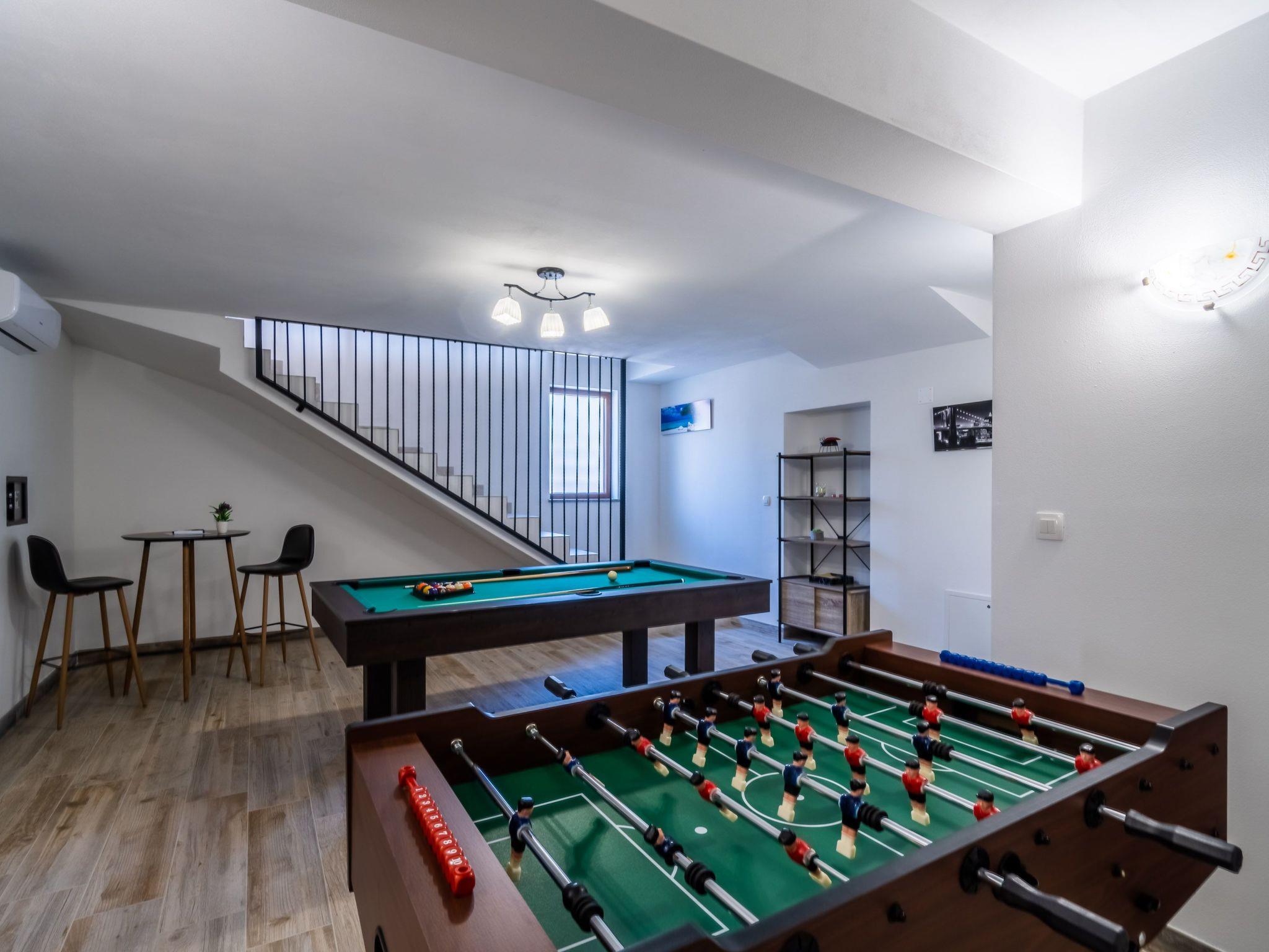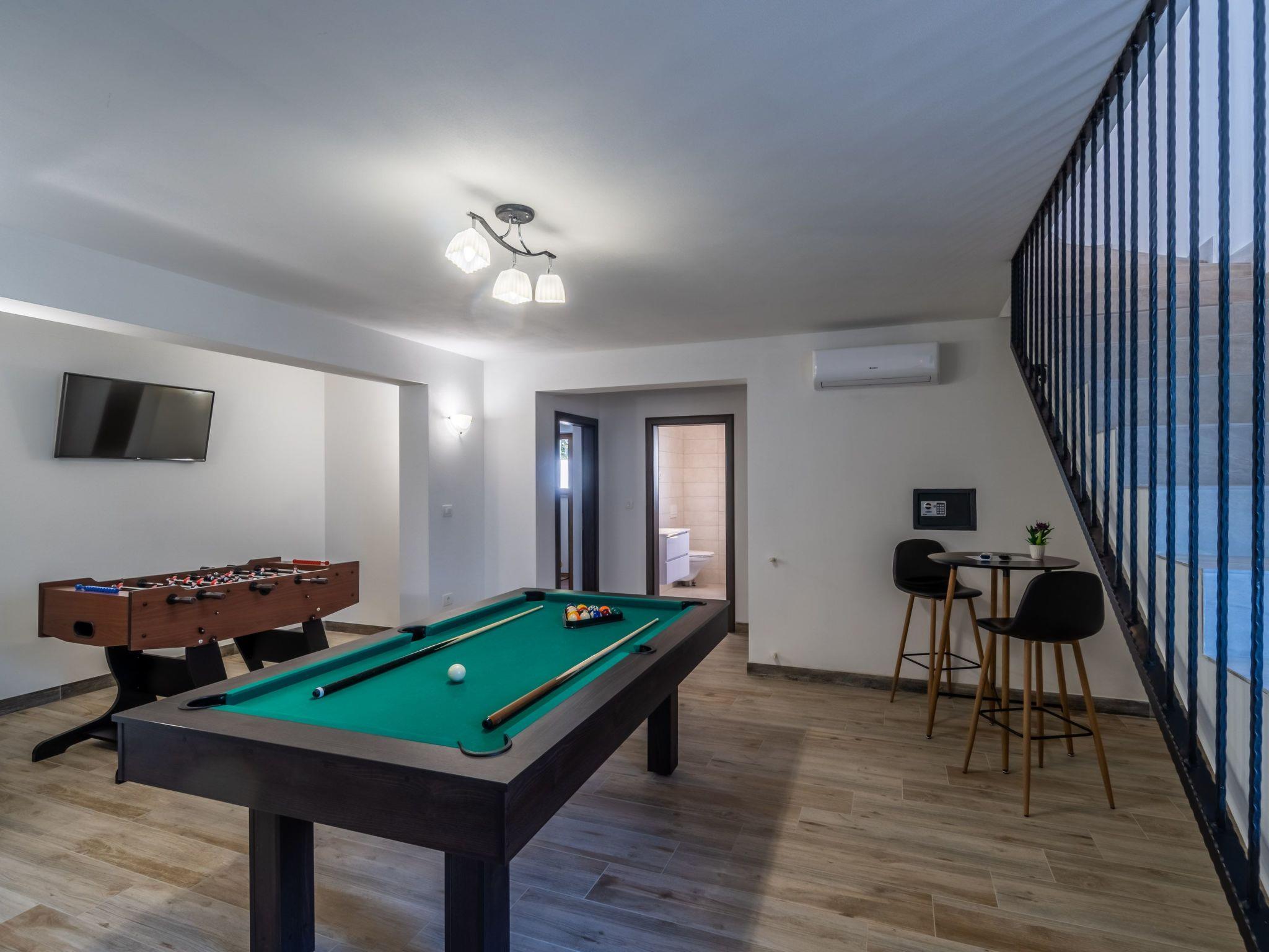 - 4th bedroom with double bed, private bathroom (toilette, shower, hair dryer, sink), and air condition storage room with washing machine, vacuum cleaner, and iron with ironing boardplay room with pool table and SAT TV, air condition safe