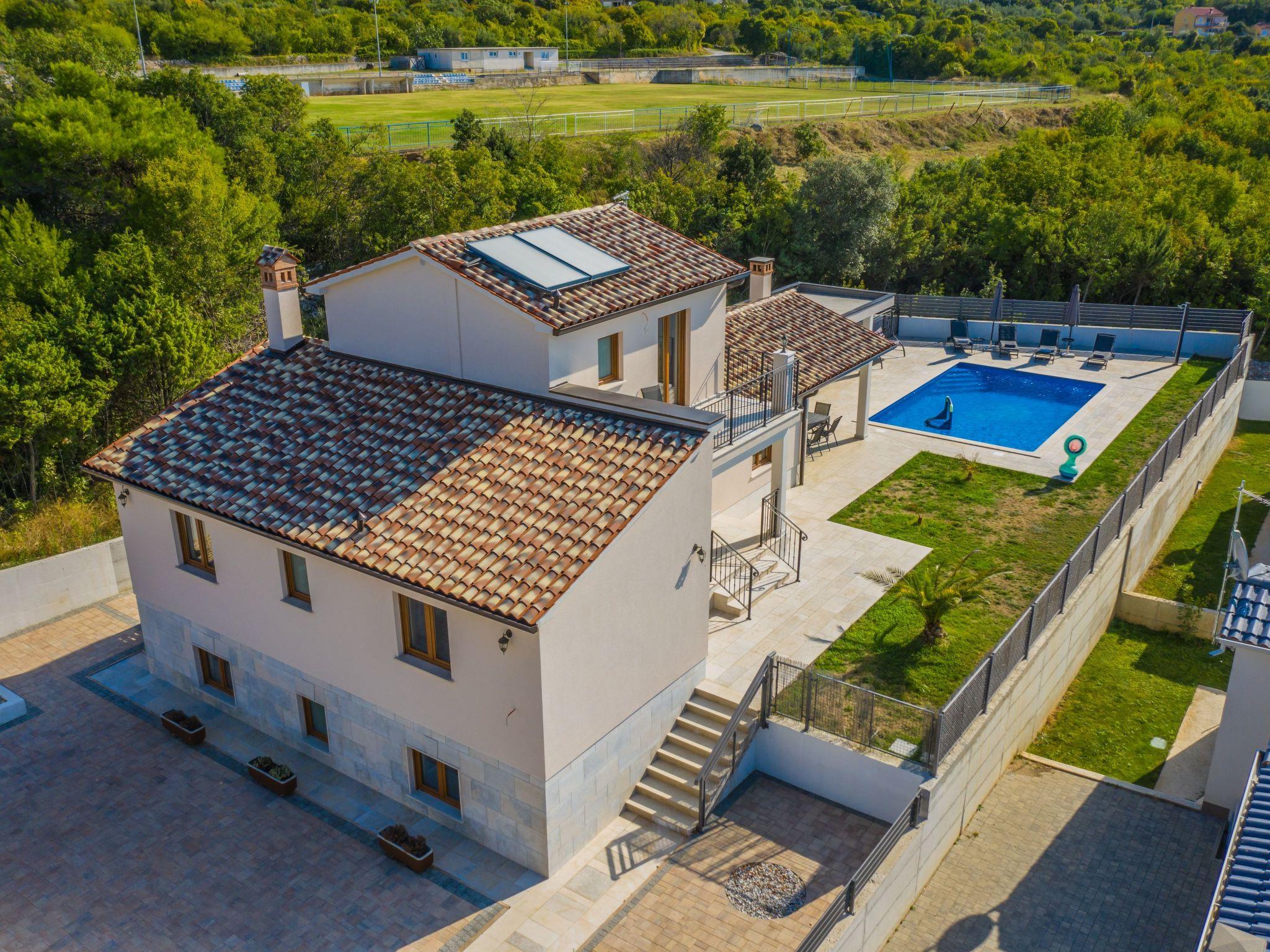 Villa Vanda is self standing house in countryside offering a magnificent atmosphere for the relaxing careless holiday. The villa is surrounded by spacious (400m2) fenced garden and private swimming pool 8 x 5 m2. Located in greenery, oriented towards the sea, villa offers stunning sea view from the top floor. The interior (170m2) of the villa is spacious and bright, tastefully and modern furnished. It features 4 bedrooms, each with its own bathroom, kitchen with dining room and lower ground floor room with a pool table. The exterior offers beautiful space for relaxation and cozy evening barbecue dinners.