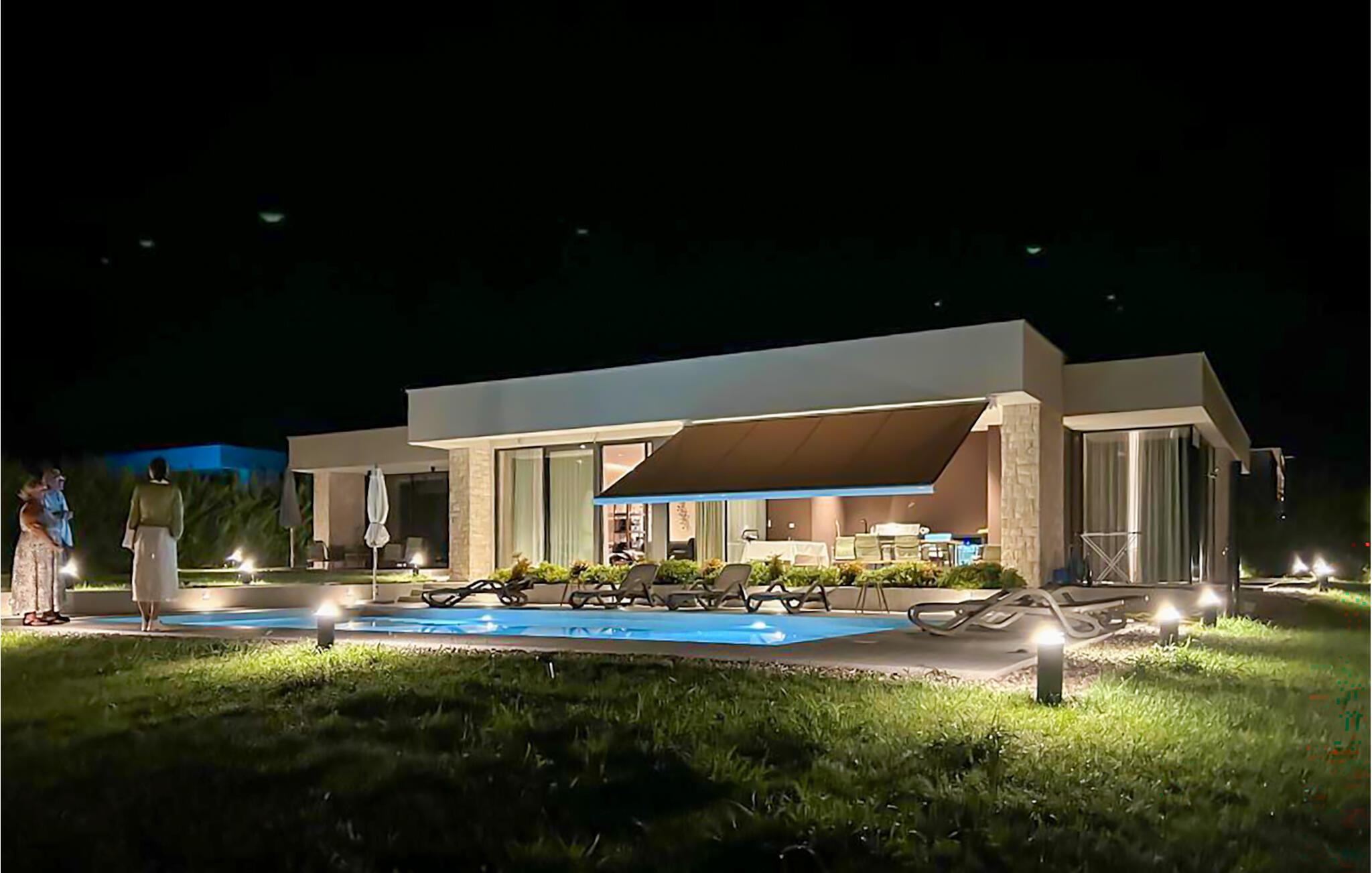 En pragtfuld pool venter jer på den solrige terrasse, hvor stemningsfuld belysning lægger op til uforglemmelige svømmeoplevelser, selv under åben himmel. Genoplad batterierne på liggestolene, mens børnene morer sig ved bordtennisbordet, og se solnedgangen med et glas vin på terrassen.