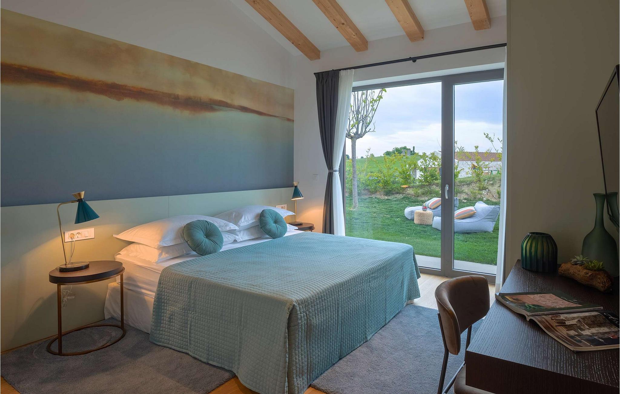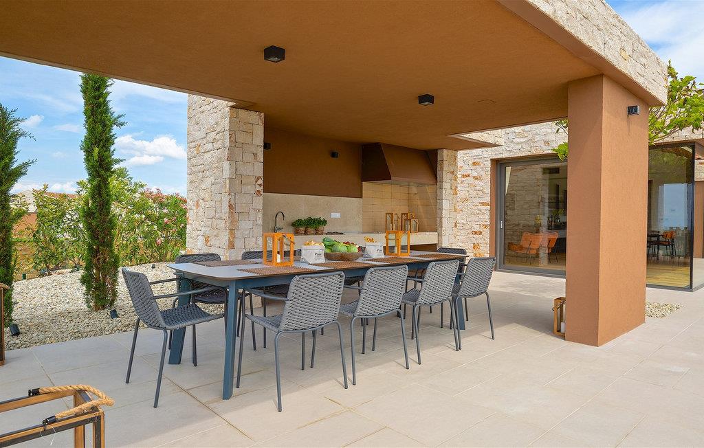 Den moderne villa Terra Bianca ligger i den maleriske landsby Verteneglio i den nordvestlige del af den magisk smukke halvø i Istrien. Her har du mulighed for at nyde skønheden i det landlige Istrien, endeløse olivenlunde og vinmarker, mens nærheden af Novigrad, Rovinj og Porec garanterer en uforglemmelig ferie. Villa Terra Bianca har 4 rummelige soveværelser, to med dobbeltsenge og to med to enkeltsenge, der kan sættes sammen til en dobbeltseng. Hvert soveværelse har aircondition, satellit-tv og eget badeværelse med brusekabine. Det åbne rum-koncept gør villaen yderst behagelig at tilbringe tid med venner og familie. Til din rådighed er et fuldt udstyret køkken med spiseplads og en smuk, luftig stue. Det indre af villaen er fuld af interessante detaljer, der tilføjer den afslappede stemning i hele rummet. Den 2000 m2 store have har en smuk swimmingpool (40 m2), hvor du kan køle af, mens du har 10 komfortable liggestole til din rådighed til solbadning. På varme sommeraftener kan du nyde at lave mad på den udendørs gasgrill eller slappe af i saunaen eller spabadet. Villaens underholdningstilbud omfatter 4 cykler, bordtennisudstyr og en legeplads for de yngste gæster. Der er i alt 5 private parkeringspladser til rådighed. Tilbring din ferie i den fantastiske Villa Terra Bianca og udforsk skønheden i Istrien. Betagende landskaber og monumenter, strande ideelle for familier med børn og et rigt udbud af restauranter og barer venter på at blive udforsket. Mod et ekstra gebyr kan vi tilbyde dig personlig kokkeservice, stuepige, gartner, personlig træner, massør og yogainstruktør, organiseret transport fra og til lufthavnen, bådture og dagsture, dagsture til olivenlunde og vingårde og meget mere Af selvfølgelig trøffeljagt. Poolopvarmning er tilgængelig efter anmodning mod et ekstra gebyr, der skal betales lokalt.
