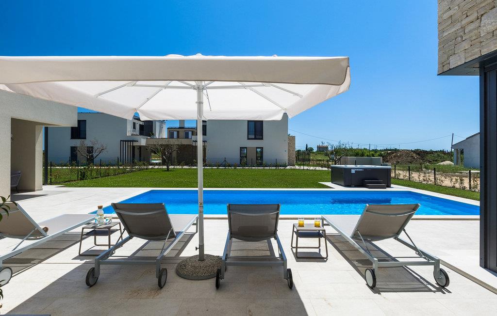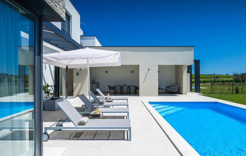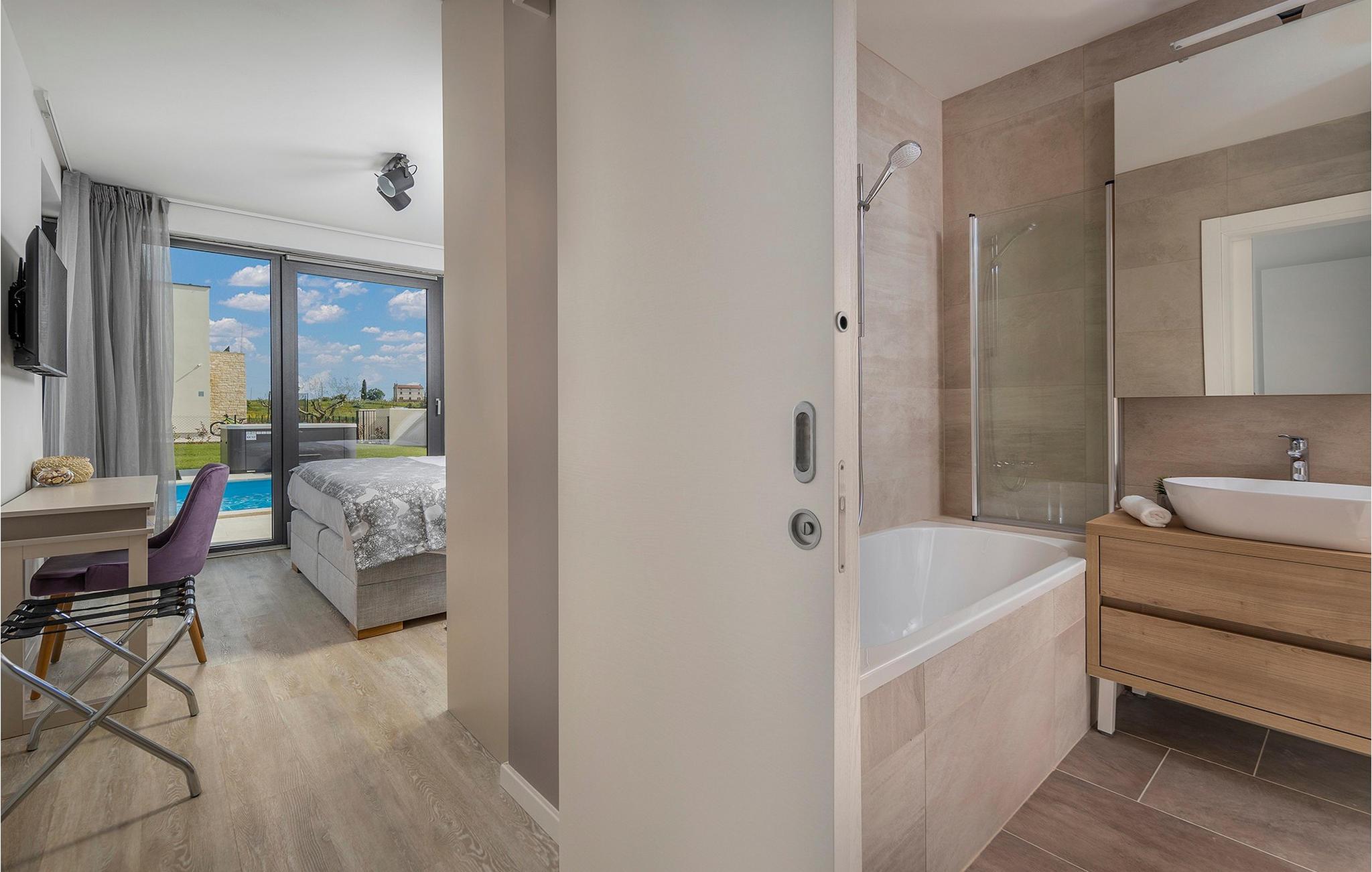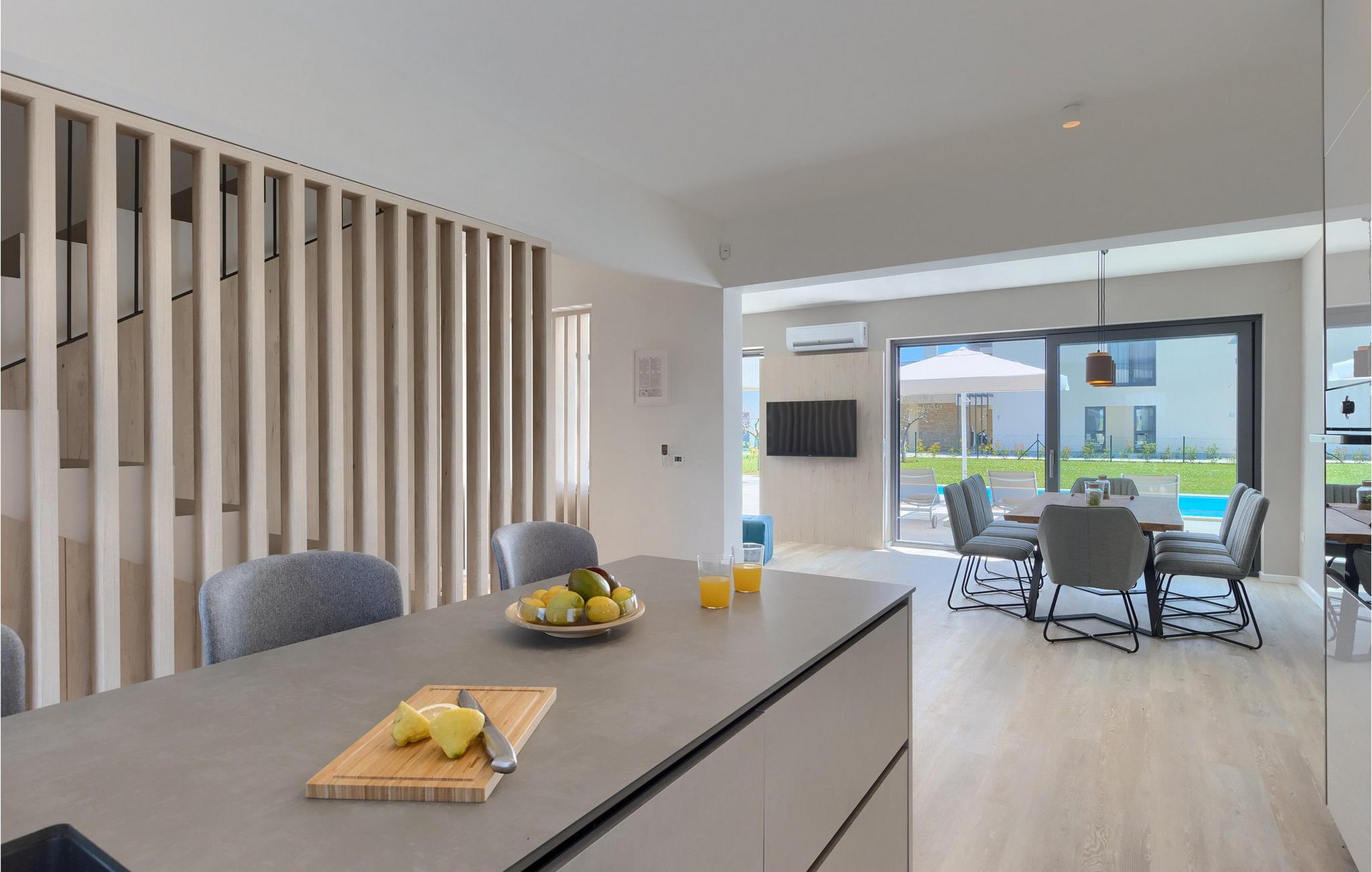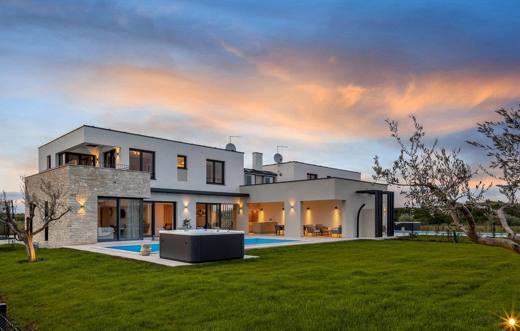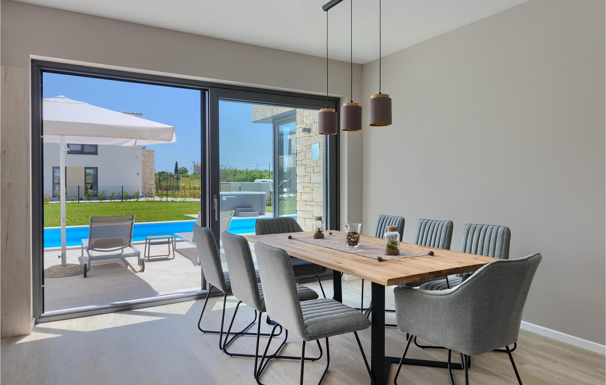 Der er mange villaer, der altid vil efterlade et godt minde om en fredelig og luksuriøs ferie. En af dem er Villa Sole, en istrisk skønhed i Brtonigla, ved siden af ligger hendes søstervilla Luna. Et roligt sted som Brtonigla glæder gæster fra hele verden, fordi det byder på romantiske solnedgange, inviterer til lange gåture, er omgivet af uberørt natur og byder på en håndfuld attraktioner og underholdning. Villa Sole har 230 m2 boligareal, er bygget i 2021 i moderne stil og har en stor indhegnet gård med en luksuriøs pool og jacuzzi, hvor du helt sikkert vil køle dig ned i sommervarmen. Villaen har en over- og underetage og tilbyder overnatning til max 10 og optimalt 8 personer. På underetagen er der opholdsstue med tv, sofa, sofabord og lænestol, køkken med bar med plads til 3 personer og spiseplads med spisebord til 8 personer. Også på nederste etage er et soveværelse med eget badeværelse med badekar. Villaen har også et separat toilet. Den øverste etage byder på 3 smukke soveværelser med dobbeltsenge og ensuite badeværelser med bruser. Det, der vil glæde dig, er, at hvert af soveværelserne har sin egen udgang til altanen eller terrassen. I villaens gård er der en swimmingpool på 40 m2, den er 1,35 m dyb og har en ekstra varmefunktion, men mod et tillæg. Den allerede nævnte jacuzzi er placeret nær poolen, og du kan solbade på liggestole og læse din yndlingsbog. Den udendørs terrasse har et sommerkøkken med bord til 8 personer, samt en udendørs sofa, ideel til at nippe til morgenkaffen eller bare slappe af. Der er to parkeringspladser inde i gården og en parkeringsplads udenfor gården. Underholdningsindhold for voksne og børn omfatter en trampolin i villaens gårdhave, badminton, dart samt to voksencykler og 1 børnecykel. Børn vil helt sikkert blive forbløffet over det berømte istriske vandland Istralandia, som byder på en masse underholdende indhold for alle aldre. Voksne nyder at gå eller cykle. Smag også de traditionelle vine fra lokale producenter, hvis vinmarker vokser på op til fire forskellige jordtyper. Derfor er Brtonigla-vine kendetegnet ved en særlig kvalitet og forskellig smag af de samme vintyper. Det er umuligt at gå galt, det er op til dig at vælge sort eller hvid, teran eller malvasia! Istrien er også kendt for trøfler, underjordiske vilde svampe, der vokser i Istriens skove, er meget dyre og giver et lækkert gastronomisk tilbud.Forkæl dig selv med charmen ved smukke Istrien og slap af i luksusen ved Villa Sole! Poolopvarmning er tilgængelig mod et ekstra gebyr, der skal betales lokalt. Kæledyr er tilladt på denne ejendom efter ejerens skøn og mod et gebyr. Bemærk venligst, at denne ejendom kun accepterer ungdomsgrupper eller polterabender mod betaling af et refunderbart depositum. En ungdomsgruppe i denne ejendom består af personer under 30 år. Er I en ungdomsgruppe eller polterabend, vil I blive bedt om at betale depositum ved ankomst. Ethvert beløb, der kræves for at reparere eventuelle skader på boligen forårsaget af dig under dit ophold, vil blive trukket fra depositumet og derefter returneret til dig.