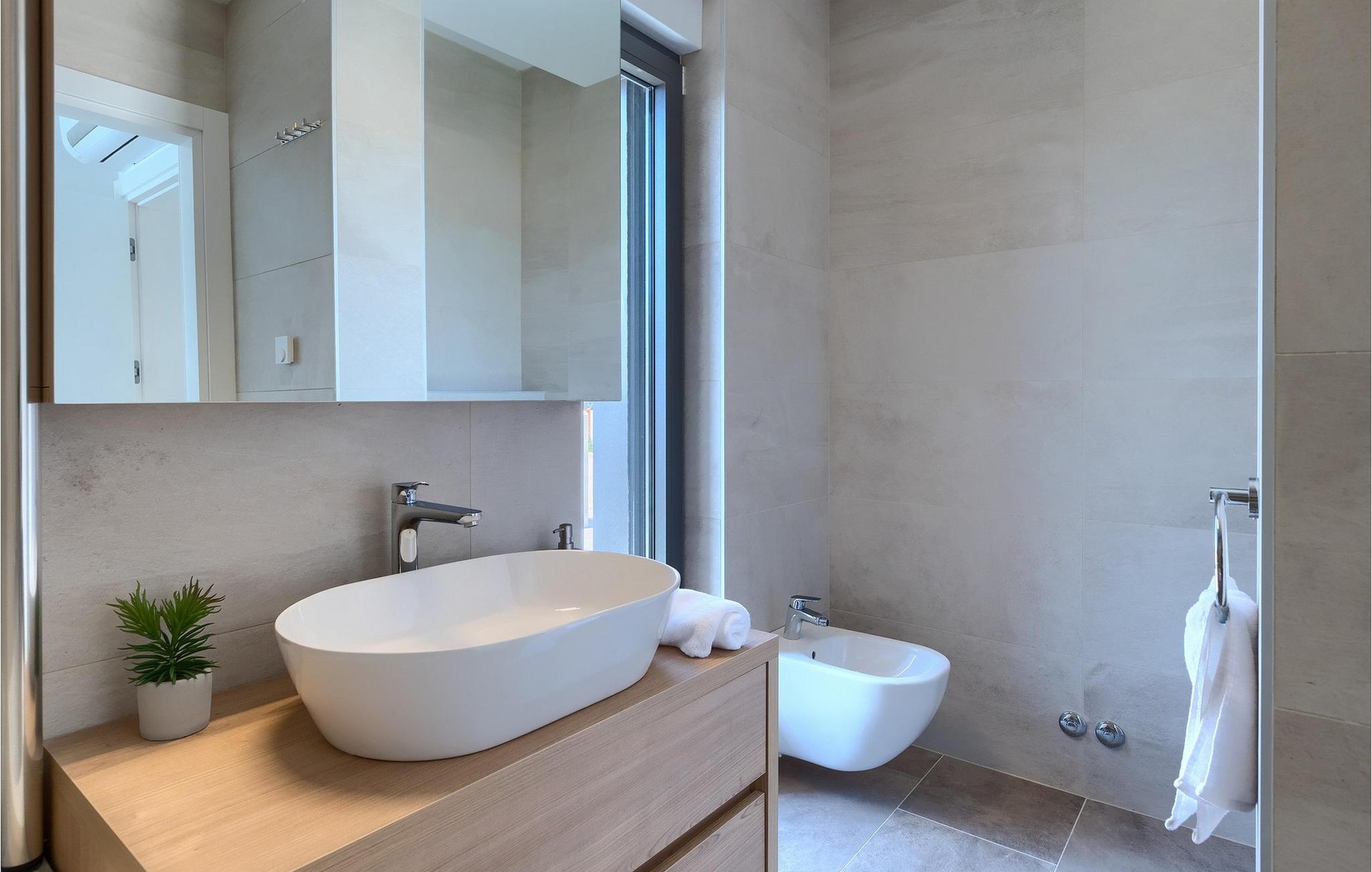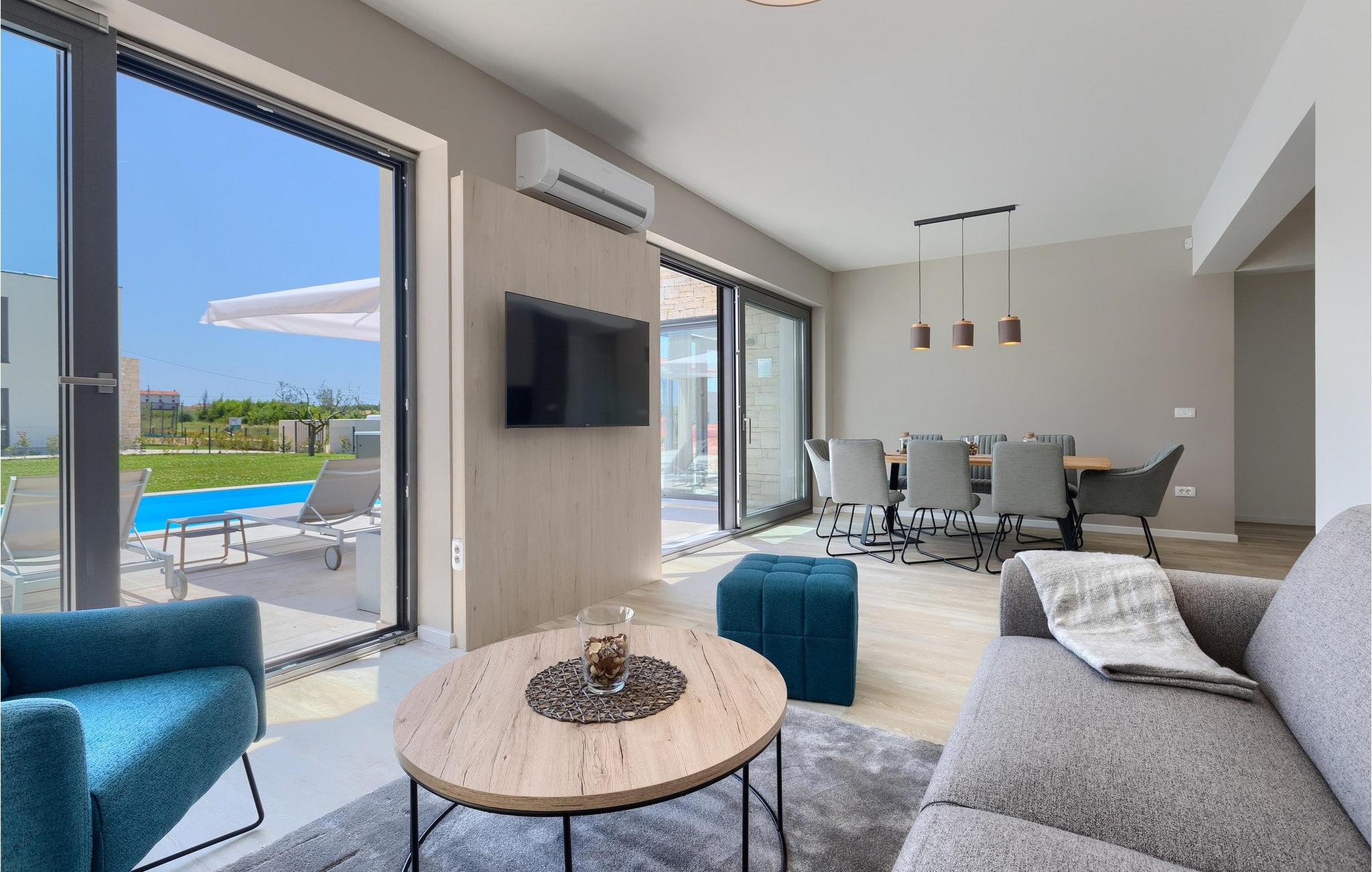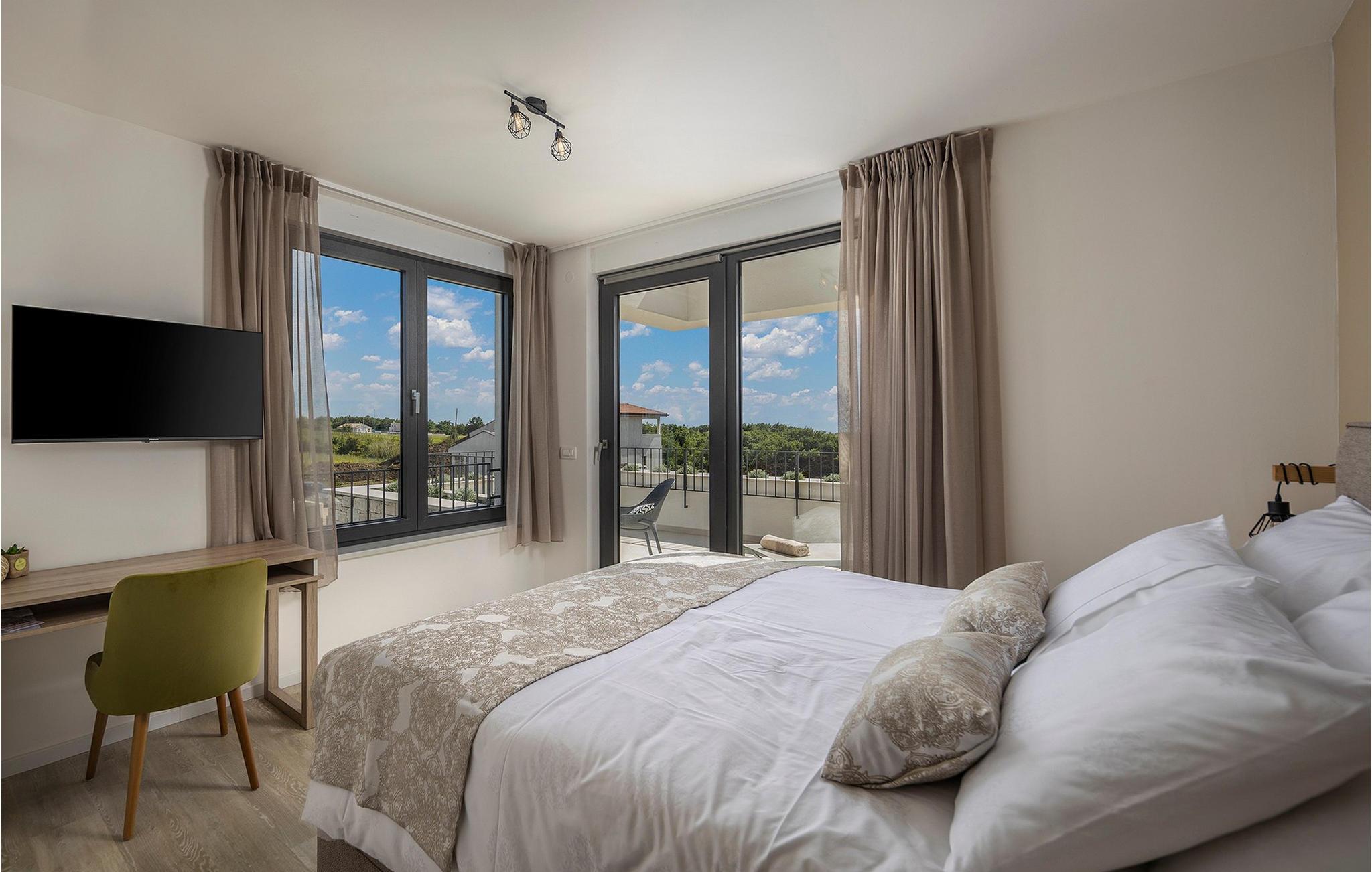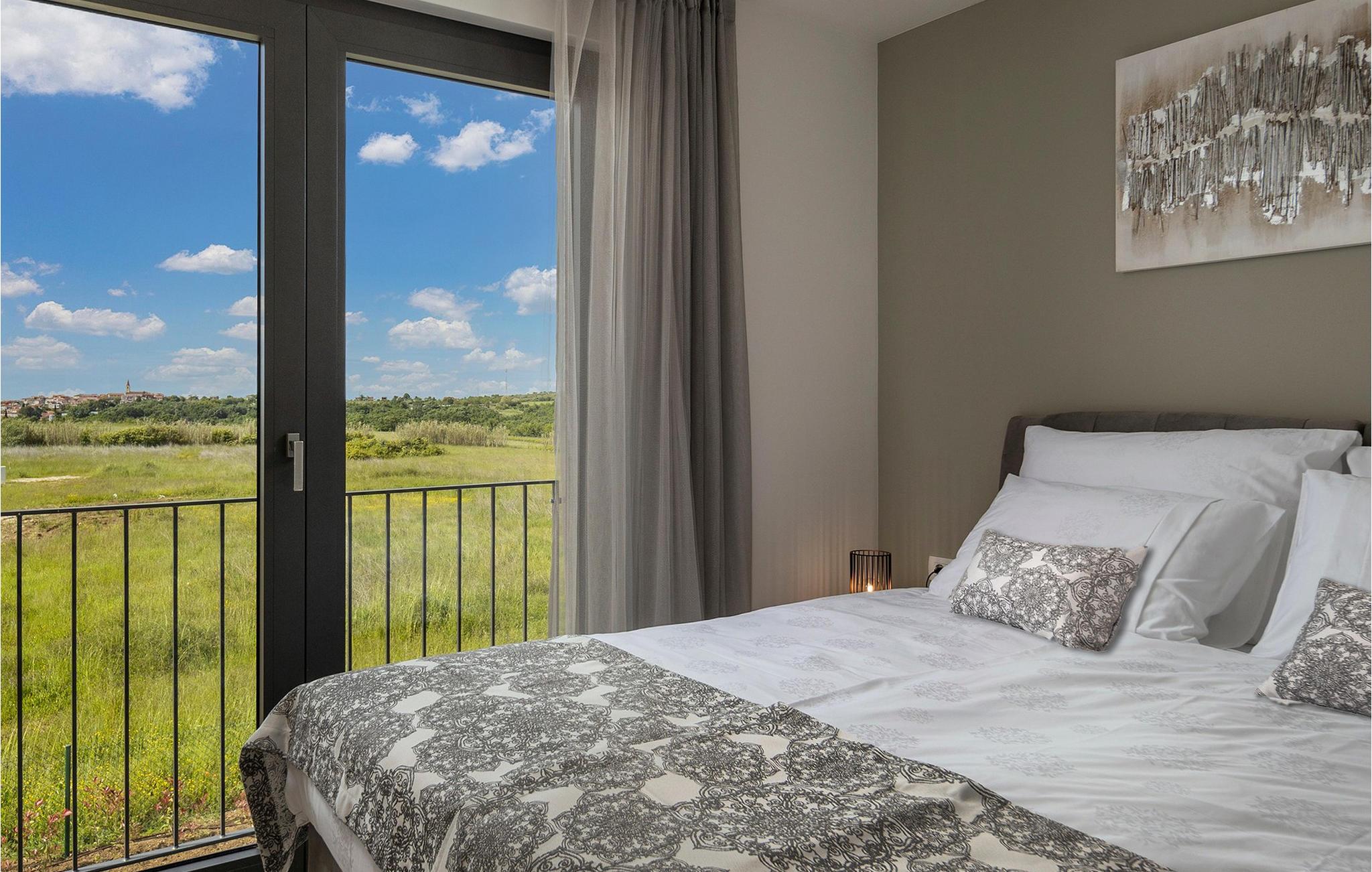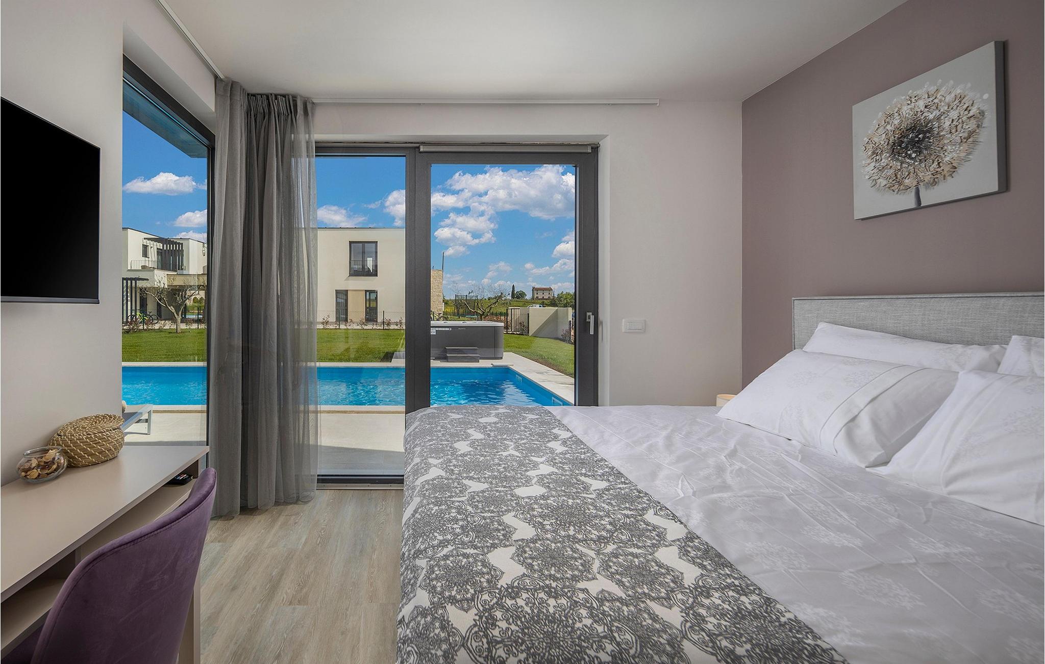 Der er mange villaer, der altid vil efterlade et godt minde om en fredelig og luksuriøs ferie. En af dem er Villa Sole, en istrisk skønhed i Brtonigla, ved siden af ligger hendes søstervilla Luna. Et roligt sted som Brtonigla glæder gæster fra hele verden, fordi det byder på romantiske solnedgange, inviterer til lange gåture, er omgivet af uberørt natur og byder på en håndfuld attraktioner og underholdning. Villa Sole har 230 m2 boligareal, er bygget i 2021 i moderne stil og har en stor indhegnet gård med en luksuriøs pool og jacuzzi, hvor du helt sikkert vil køle dig ned i sommervarmen. Villaen har en over- og underetage og tilbyder overnatning til max 10 og optimalt 8 personer. På underetagen er der opholdsstue med tv, sofa, sofabord og lænestol, køkken med bar med plads til 3 personer og spiseplads med spisebord til 8 personer. Også på nederste etage er et soveværelse med eget badeværelse med badekar. Villaen har også et separat toilet. Den øverste etage byder på 3 smukke soveværelser med dobbeltsenge og ensuite badeværelser med bruser. Det, der vil glæde dig, er, at hvert af soveværelserne har sin egen udgang til altanen eller terrassen. I villaens gård er der en swimmingpool på 40 m2, den er 1,35 m dyb og har en ekstra varmefunktion, men mod et tillæg. Den allerede nævnte jacuzzi er placeret nær poolen, og du kan solbade på liggestole og læse din yndlingsbog. Den udendørs terrasse har et sommerkøkken med bord til 8 personer, samt en udendørs sofa, ideel til at nippe til morgenkaffen eller bare slappe af. Der er to parkeringspladser inde i gården og en parkeringsplads udenfor gården. Underholdningsindhold for voksne og børn omfatter en trampolin i villaens gårdhave, badminton, dart samt to voksencykler og 1 børnecykel. Børn vil helt sikkert blive forbløffet over det berømte istriske vandland Istralandia, som byder på en masse underholdende indhold for alle aldre. Voksne nyder at gå eller cykle. Smag også de traditionelle vine fra lokale producenter, hvis vinmarker vokser på op til fire forskellige jordtyper. Derfor er Brtonigla-vine kendetegnet ved en særlig kvalitet og forskellig smag af de samme vintyper. Det er umuligt at gå galt, det er op til dig at vælge sort eller hvid, teran eller malvasia! Istrien er også kendt for trøfler, underjordiske vilde svampe, der vokser i Istriens skove, er meget dyre og giver et lækkert gastronomisk tilbud.Forkæl dig selv med charmen ved smukke Istrien og slap af i luksusen ved Villa Sole! Poolopvarmning er tilgængelig mod et ekstra gebyr, der skal betales lokalt. Kæledyr er tilladt på denne ejendom efter ejerens skøn og mod et gebyr. Bemærk venligst, at denne ejendom kun accepterer ungdomsgrupper eller polterabender mod betaling af et refunderbart depositum. En ungdomsgruppe i denne ejendom består af personer under 30 år. Er I en ungdomsgruppe eller polterabend, vil I blive bedt om at betale depositum ved ankomst. Ethvert beløb, der kræves for at reparere eventuelle skader på boligen forårsaget af dig under dit ophold, vil blive trukket fra depositumet og derefter returneret til dig.