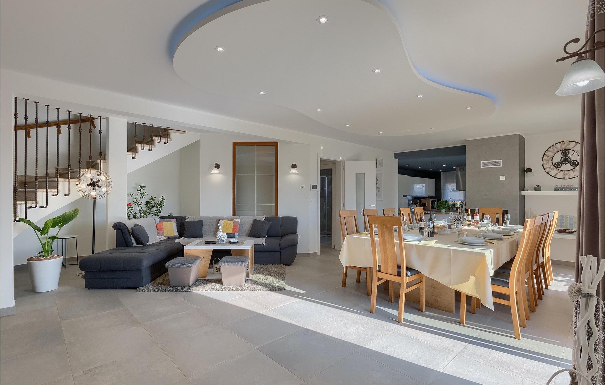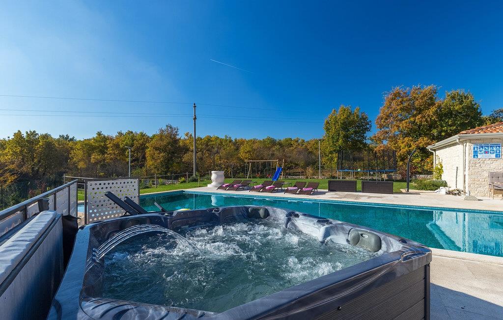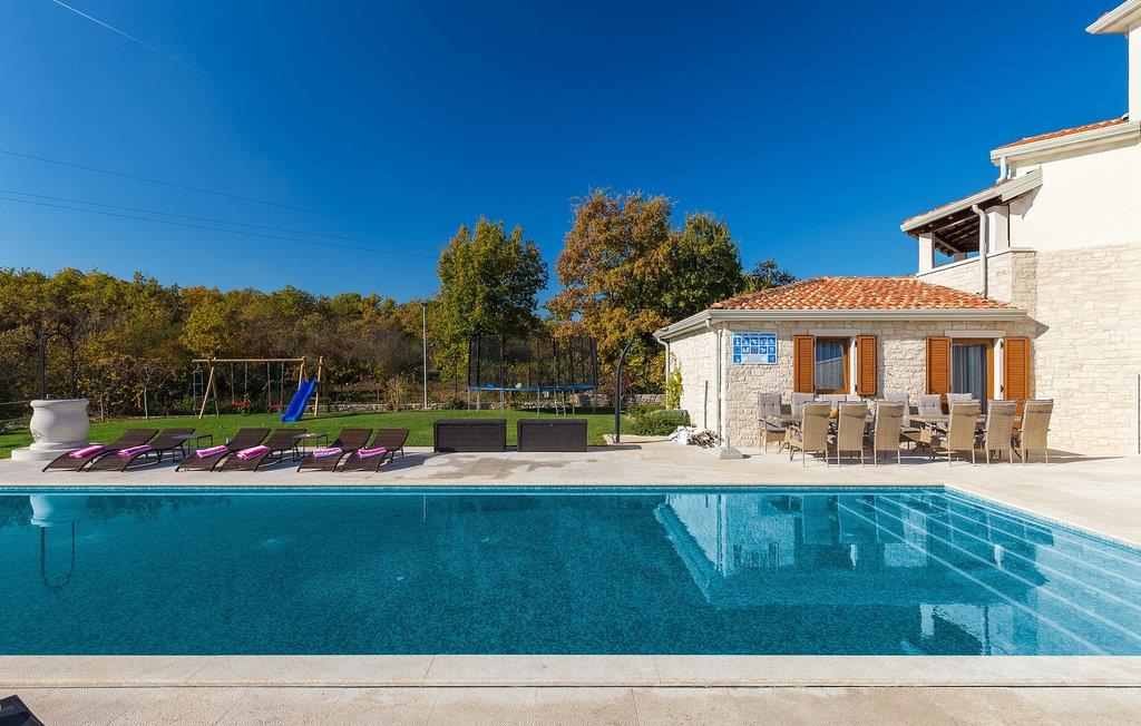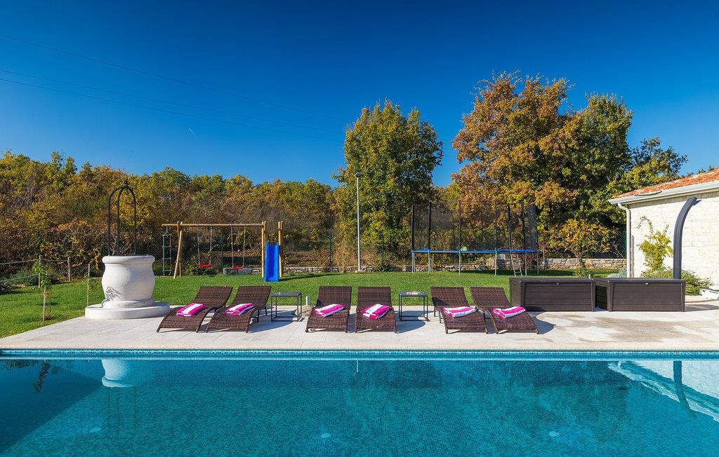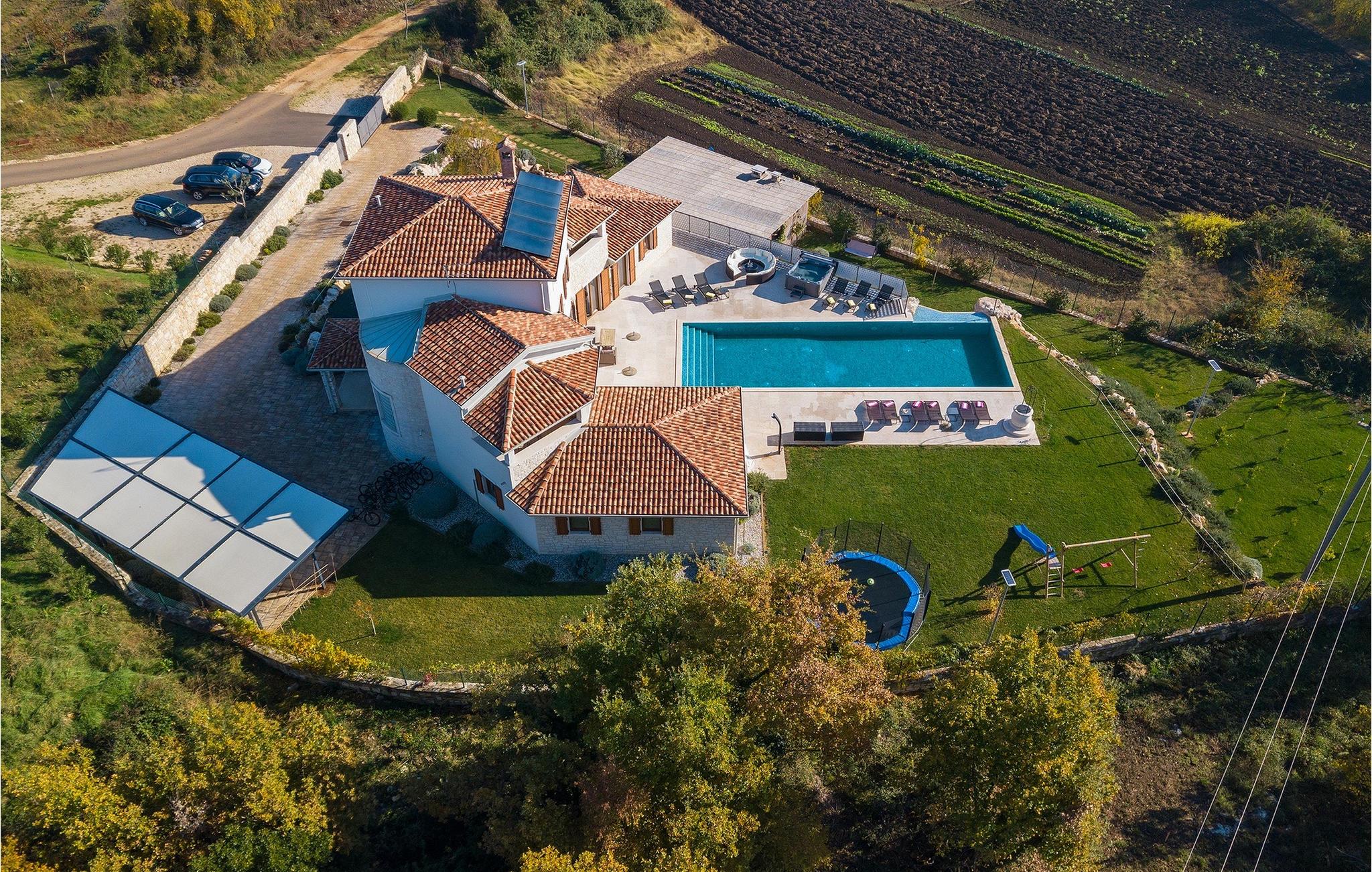 Den unikke Villa San Lorenzo ligger i den lille landsby Nova Vas nær kystbyen Novigrad. Denne villa er et perfekt valg for dem, der ønsker at have en afslappende ferie. Villaen har 6 kærligt indrettede soveværelser og kan rumme op til 14 personer. Du vil blive imponeret over villaens indretning. Stueetagen i åbent plan består af en lys opholdsstue med pejs, et fuldt udstyret køkken med spiseplads og et separat toilet. Der er også 3 smukt indrettede soveværelser med eget badeværelse i stueetagen. På første sal er der yderligere to hyggelige soveværelser med eget badeværelse. Anden sal er reserveret til master bedroom med eget badeværelse. Kælderen er den bedste del af huset. Der er en privat taverne og en spisestue med en kulgrill, perfekt til en familiesammenkomst. Hvis du vil slappe af, er der spa med opvarmet pool, sauna og privat fitnesscenter. Foran huset finder du en stor swimmingpool, et udendørs spabad og en solterrasse med liggestole, det perfekte sted at tilbringe varme sommerdage, mens du nyder en kold og forfriskende drink. Ved siden af ??villaen er der en legeplads og en trampolin. Villaen har 8 cykler, som du kan bruge til at opdage og udforske det omkringliggende område. Villa San Lorenzo er en elegant og rummelig villa, der tilbyder sine gæster alt, hvad de kan ønske sig. BEMÆRK: Massageservice tilgængelig efter anmodning (mod et ekstra gebyr). Værtinden står til rådighed for gæsterne i morgentimerne. VIGTIGT: Villa San Lorenzo er ikke et festhus, og yngre grupper af besøgende er ikke tilladt Villa San Lorenzo ligger i den istriske by Nova Vas, ikke langt fra kystbyen Novigrad. Novigrad er et populært turistmål, der byder på mange muligheder såsom toprestauranter og barer. Gå en tur gennem byens smalle gader og besøg de mange gallerier og butikker, der sælger traditionelle souvenirs. Ud over de kulturelle attraktioner har Novigrad adskillige sten- og sandstrande med mange strandbarer, hvor du kan nyde varme sommerdage. For de yngste er der ikke langt fra Villa San Lorenzo det største vandland i Europa - Istralandia, som du ikke bør gå glip af. Besøg Motovun Skov og se efter hvide trøfler. Bagefter kan du prøve traditionelle istriske retter såsom fuzi med trøfler, pljukanci med vildt eller istrisk suppe. Der ligger butikker, restauranter og caféer under 600 meter fra Villa San Lorenzo.