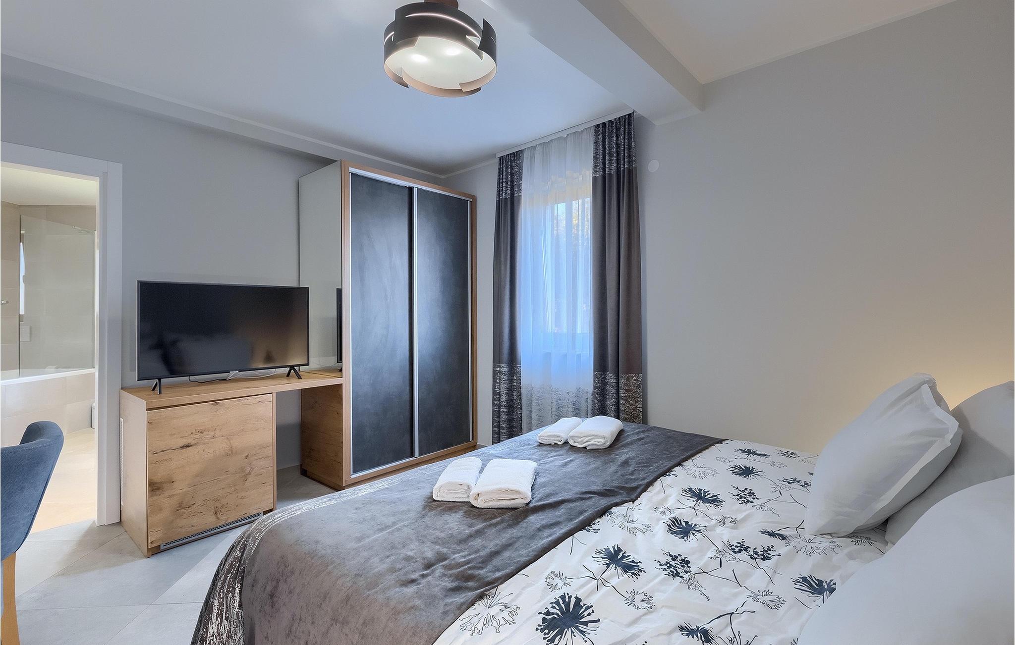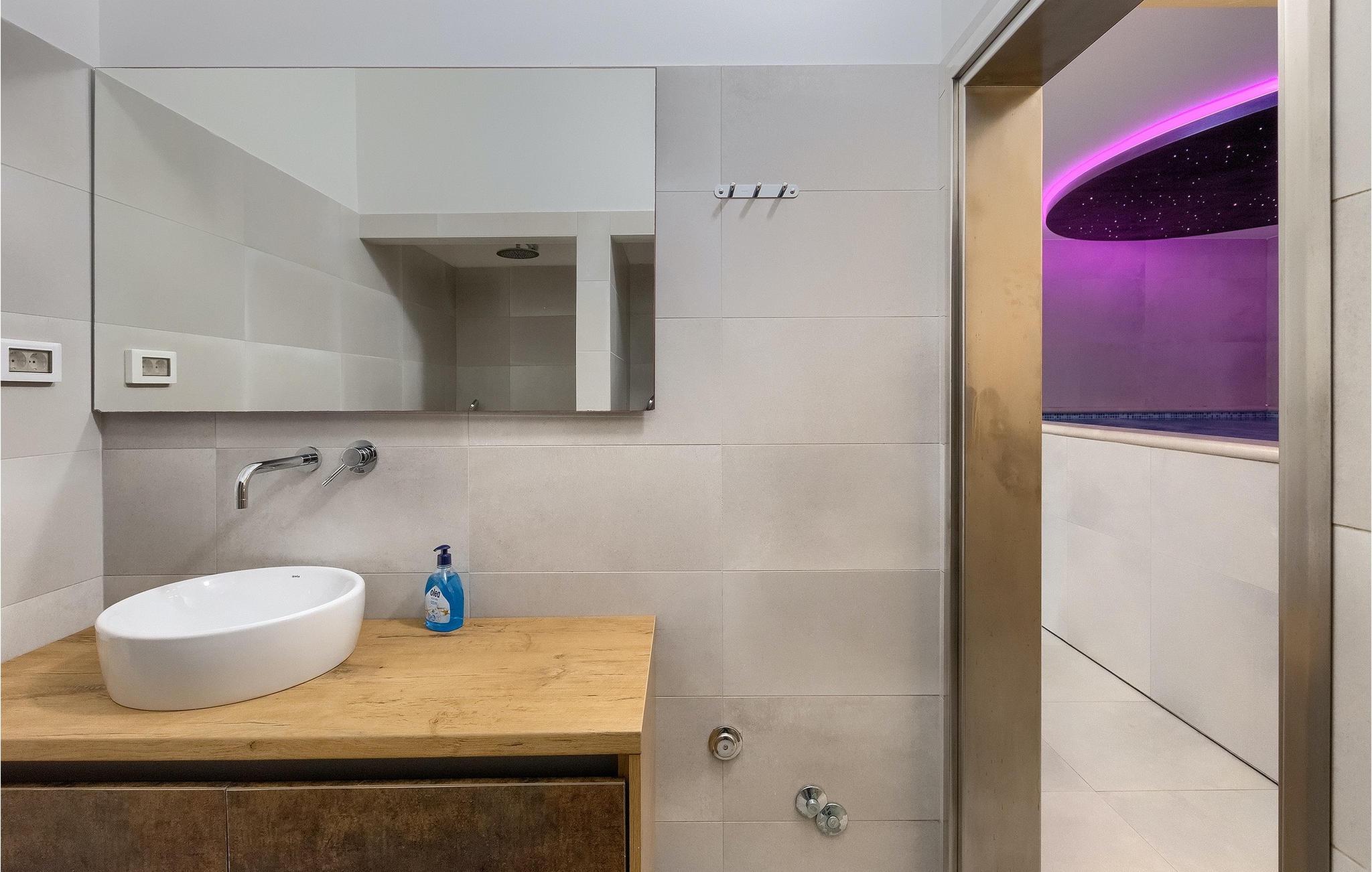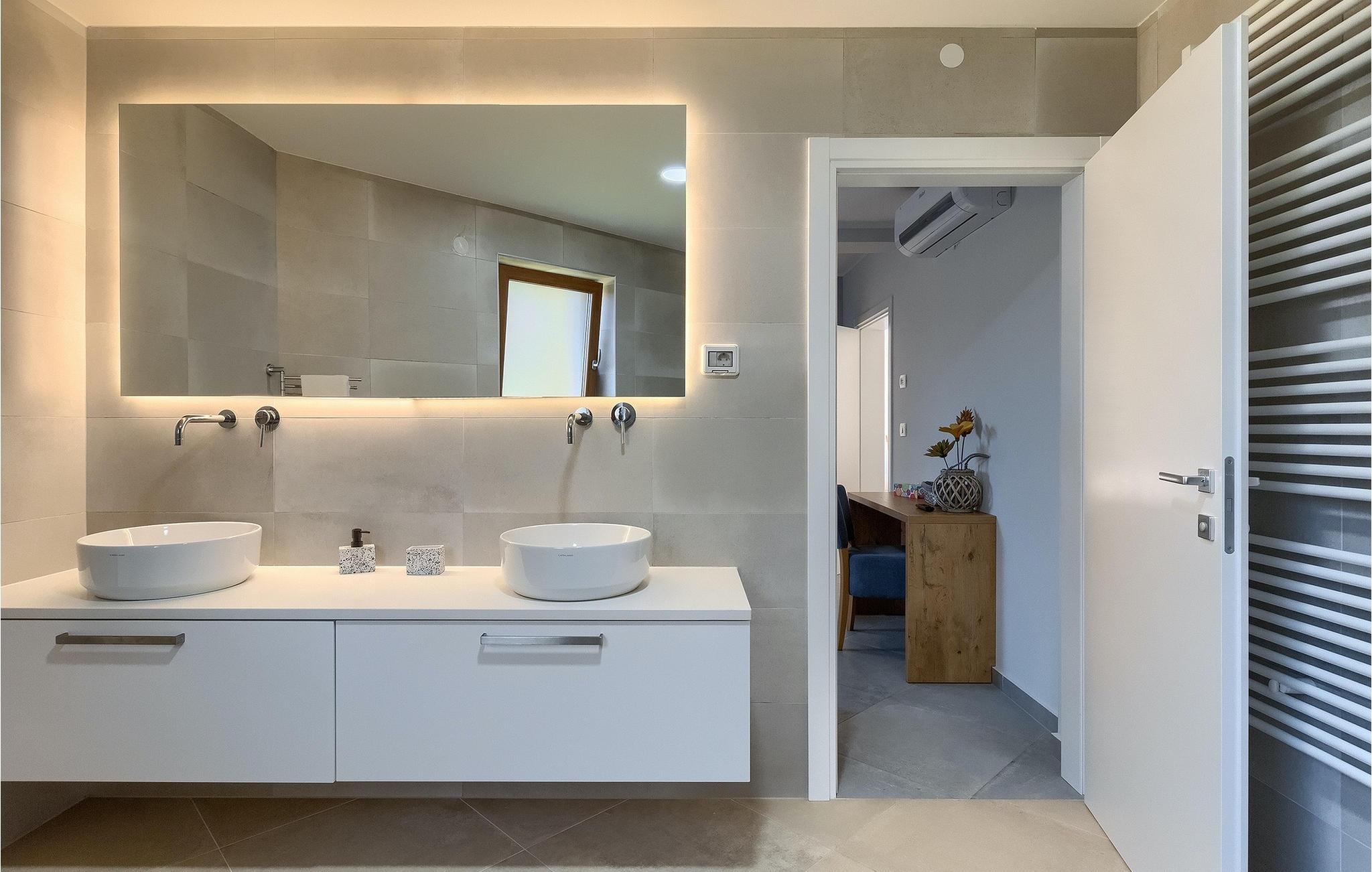 Den unikke Villa San Lorenzo ligger i den lille landsby Nova Vas nær kystbyen Novigrad. Denne villa er et perfekt valg for dem, der ønsker at have en afslappende ferie. Villaen har 6 kærligt indrettede soveværelser og kan rumme op til 14 personer. Du vil blive imponeret over villaens indretning. Stueetagen i åbent plan består af en lys opholdsstue med pejs, et fuldt udstyret køkken med spiseplads og et separat toilet. Der er også 3 smukt indrettede soveværelser med eget badeværelse i stueetagen. På første sal er der yderligere to hyggelige soveværelser med eget badeværelse. Anden sal er reserveret til master bedroom med eget badeværelse. Kælderen er den bedste del af huset. Der er en privat taverne og en spisestue med en kulgrill, perfekt til en familiesammenkomst. Hvis du vil slappe af, er der spa med opvarmet pool, sauna og privat fitnesscenter. Foran huset finder du en stor swimmingpool, et udendørs spabad og en solterrasse med liggestole, det perfekte sted at tilbringe varme sommerdage, mens du nyder en kold og forfriskende drink. Ved siden af ??villaen er der en legeplads og en trampolin. Villaen har 8 cykler, som du kan bruge til at opdage og udforske det omkringliggende område. Villa San Lorenzo er en elegant og rummelig villa, der tilbyder sine gæster alt, hvad de kan ønske sig. BEMÆRK: Massageservice tilgængelig efter anmodning (mod et ekstra gebyr). Værtinden står til rådighed for gæsterne i morgentimerne. VIGTIGT: Villa San Lorenzo er ikke et festhus, og yngre grupper af besøgende er ikke tilladt Villa San Lorenzo ligger i den istriske by Nova Vas, ikke langt fra kystbyen Novigrad. Novigrad er et populært turistmål, der byder på mange muligheder såsom toprestauranter og barer. Gå en tur gennem byens smalle gader og besøg de mange gallerier og butikker, der sælger traditionelle souvenirs. Ud over de kulturelle attraktioner har Novigrad adskillige sten- og sandstrande med mange strandbarer, hvor du kan nyde varme sommerdage. For de yngste er der ikke langt fra Villa San Lorenzo det største vandland i Europa - Istralandia, som du ikke bør gå glip af. Besøg Motovun Skov og se efter hvide trøfler. Bagefter kan du prøve traditionelle istriske retter såsom fuzi med trøfler, pljukanci med vildt eller istrisk suppe. Der ligger butikker, restauranter og caféer under 600 meter fra Villa San Lorenzo.