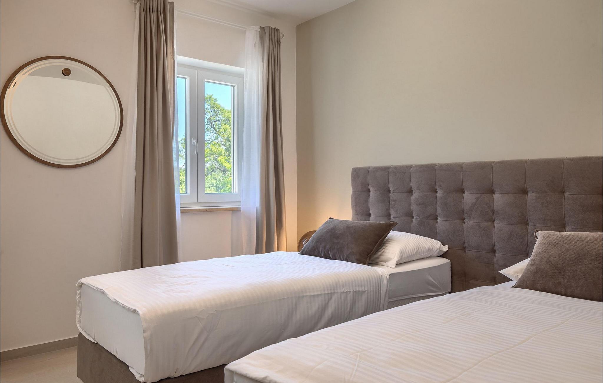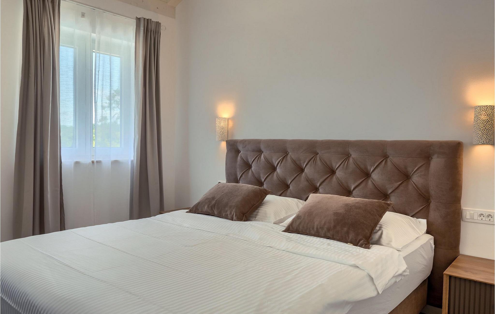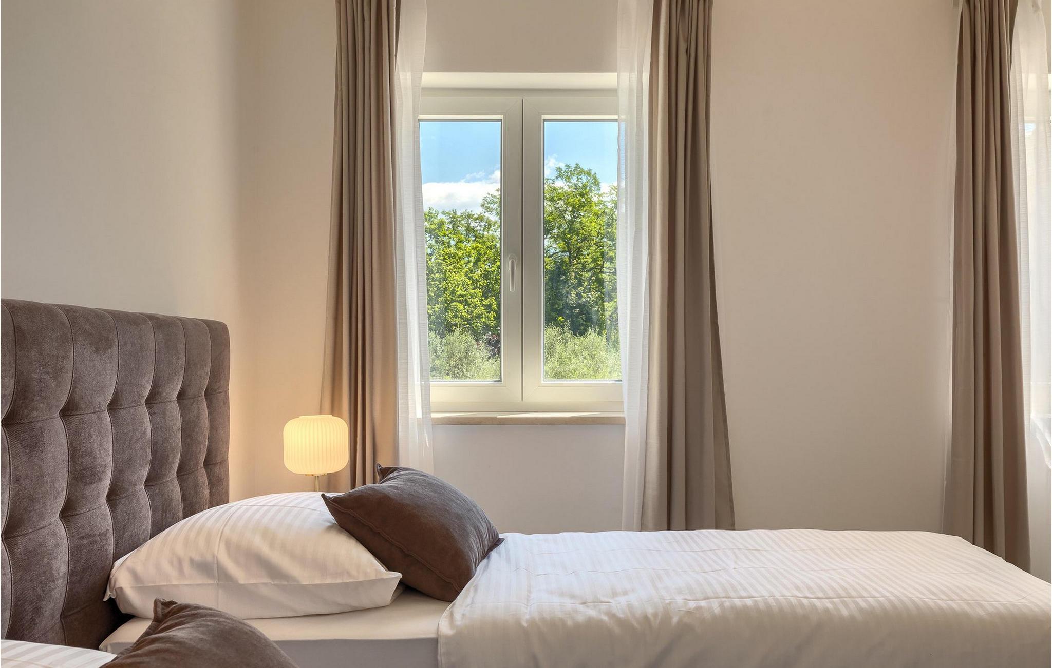 I den rummelige stueetage er der en stue, en spisestue, et fuldt udstyret køkken, et badeværelse og to soveværelser. På første sal er der to mere komfortable soveværelser med et badeværelse. Villa Leon er det rigtige valg til en idyllisk ferie midt i uspoleret natur!.Villa Leon ligger i den lille landsby Brtonigla. Stedet er kendt for sit fremragende gastronomiske tilbud men også for olivenolie. Hvis du beslutter dig for at købe olie, så besøg private oliemøller, hvor værterne med glæde vil vise dig, hvordan olien produceres og rådgive dig om, hvilken olie du skal vælge. For elskere af adrenalin og sjov er det ideelle sted Aquapark Istralandia. Et sted, der garanterer sjov for de "store" og "små". Kun 15 minutter i bil adskiller dig fra Novigrad eller Porec. Populære turistmål, som vil fortrylle dig i starten. Smukke Porec, som huser den verdensberømte Eufrasiusbasilika , er et godt valg til en dagstur. Gå en tur gennem byens gader, køb nogle af de traditionelle souvenirs, forfrisk dig selv i det klare hav og vælg sidst på dagen en af de bedste restauranter, som vil tilfredsstille hver gane ivrig efter middelhavsdelikatesser :)