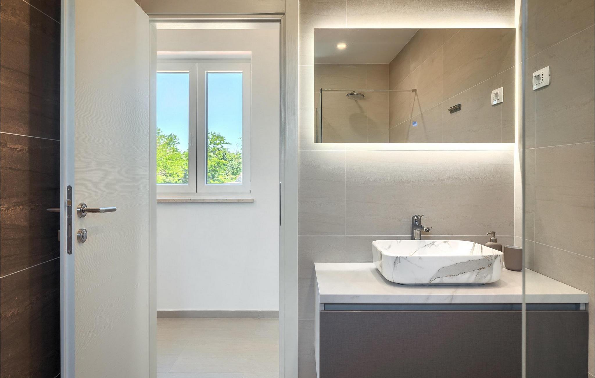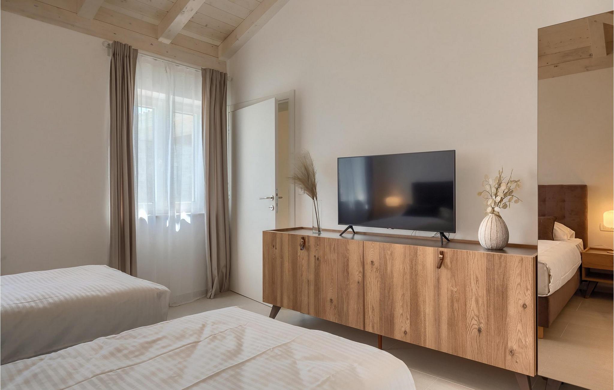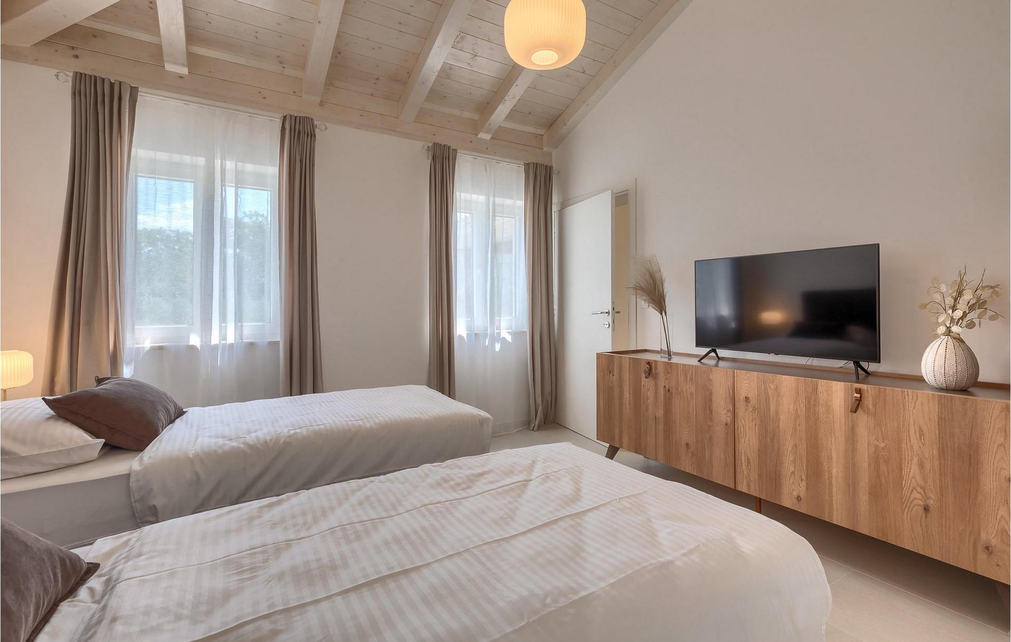 I den rummelige stueetage er der en stue, en spisestue, et fuldt udstyret køkken, et badeværelse og to soveværelser. På første sal er der to mere komfortable soveværelser med et badeværelse. Villa Leon er det rigtige valg til en idyllisk ferie midt i uspoleret natur!.Villa Leon ligger i den lille landsby Brtonigla. Stedet er kendt for sit fremragende gastronomiske tilbud men også for olivenolie. Hvis du beslutter dig for at købe olie, så besøg private oliemøller, hvor værterne med glæde vil vise dig, hvordan olien produceres og rådgive dig om, hvilken olie du skal vælge. For elskere af adrenalin og sjov er det ideelle sted Aquapark Istralandia. Et sted, der garanterer sjov for de "store" og "små". Kun 15 minutter i bil adskiller dig fra Novigrad eller Porec. Populære turistmål, som vil fortrylle dig i starten. Smukke Porec, som huser den verdensberømte Eufrasiusbasilika , er et godt valg til en dagstur. Gå en tur gennem byens gader, køb nogle af de traditionelle souvenirs, forfrisk dig selv i det klare hav og vælg sidst på dagen en af de bedste restauranter, som vil tilfredsstille hver gane ivrig efter middelhavsdelikatesser :)