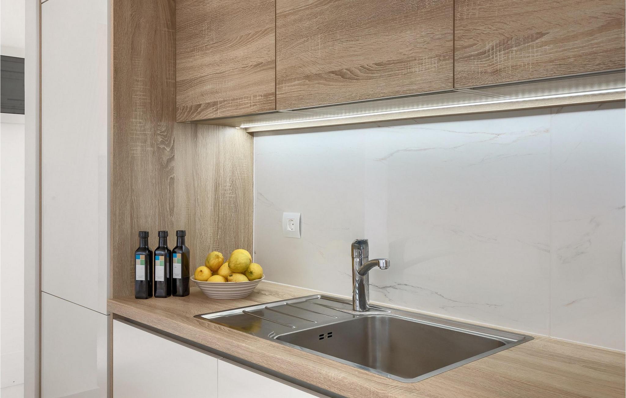 Ved siden af poolen på terrassen er der et stort spisebord og en kulgrill til din rådighed, hvor du kan forberede dine yndlingsretter, mens du nyder sommerstemningen med familie og venner. Villaens interiør er elegant og meget hyggeligt.