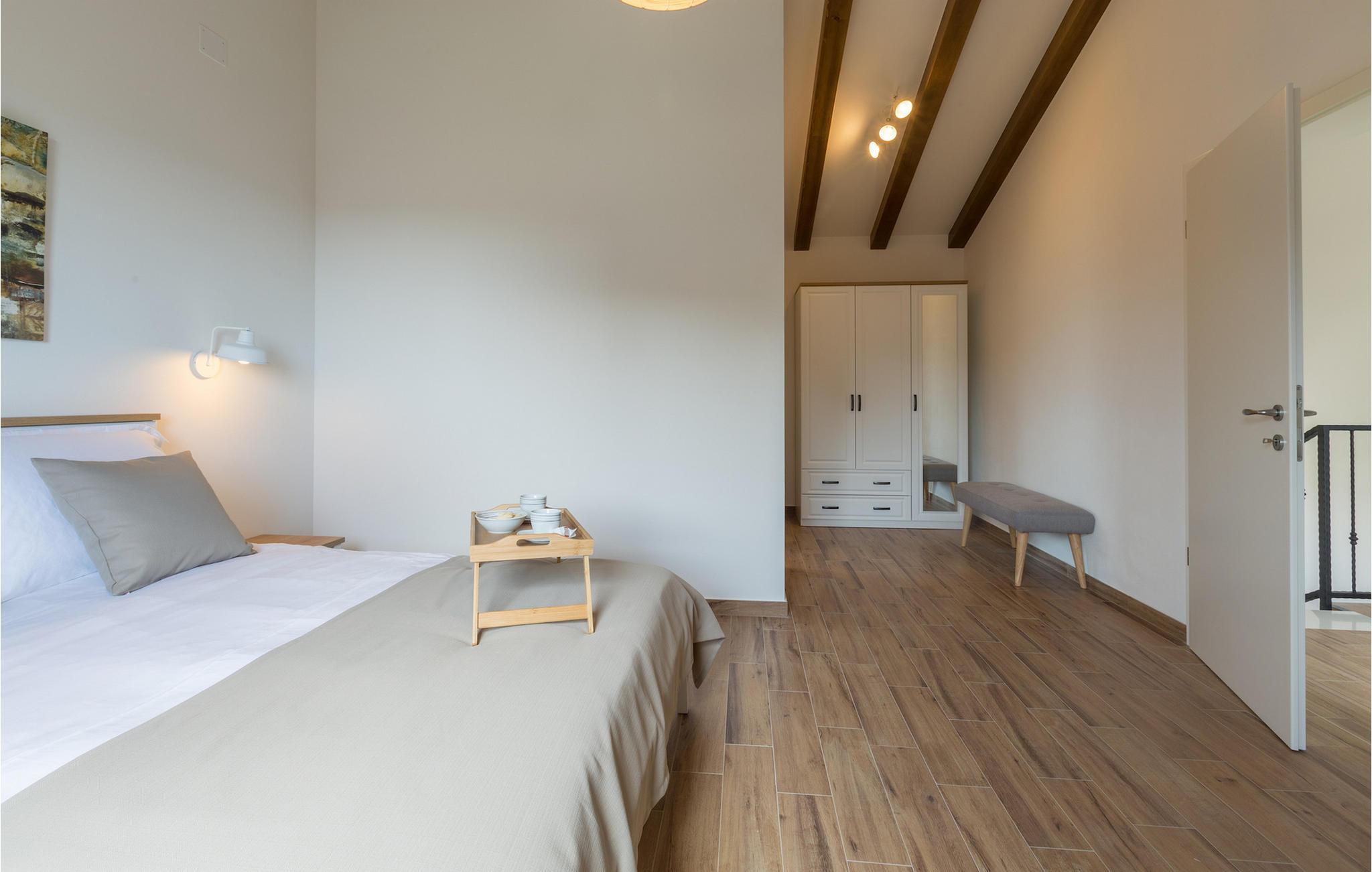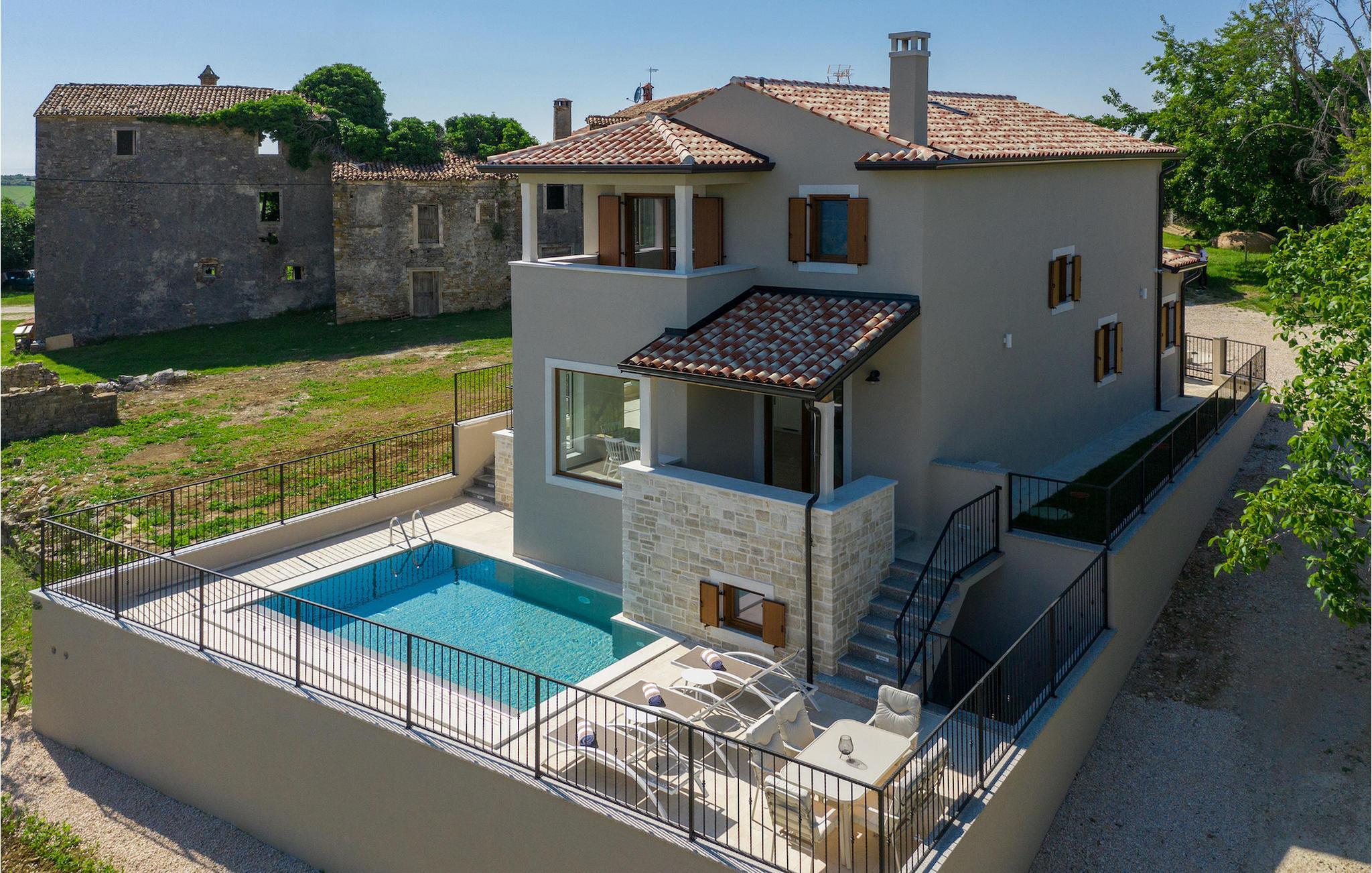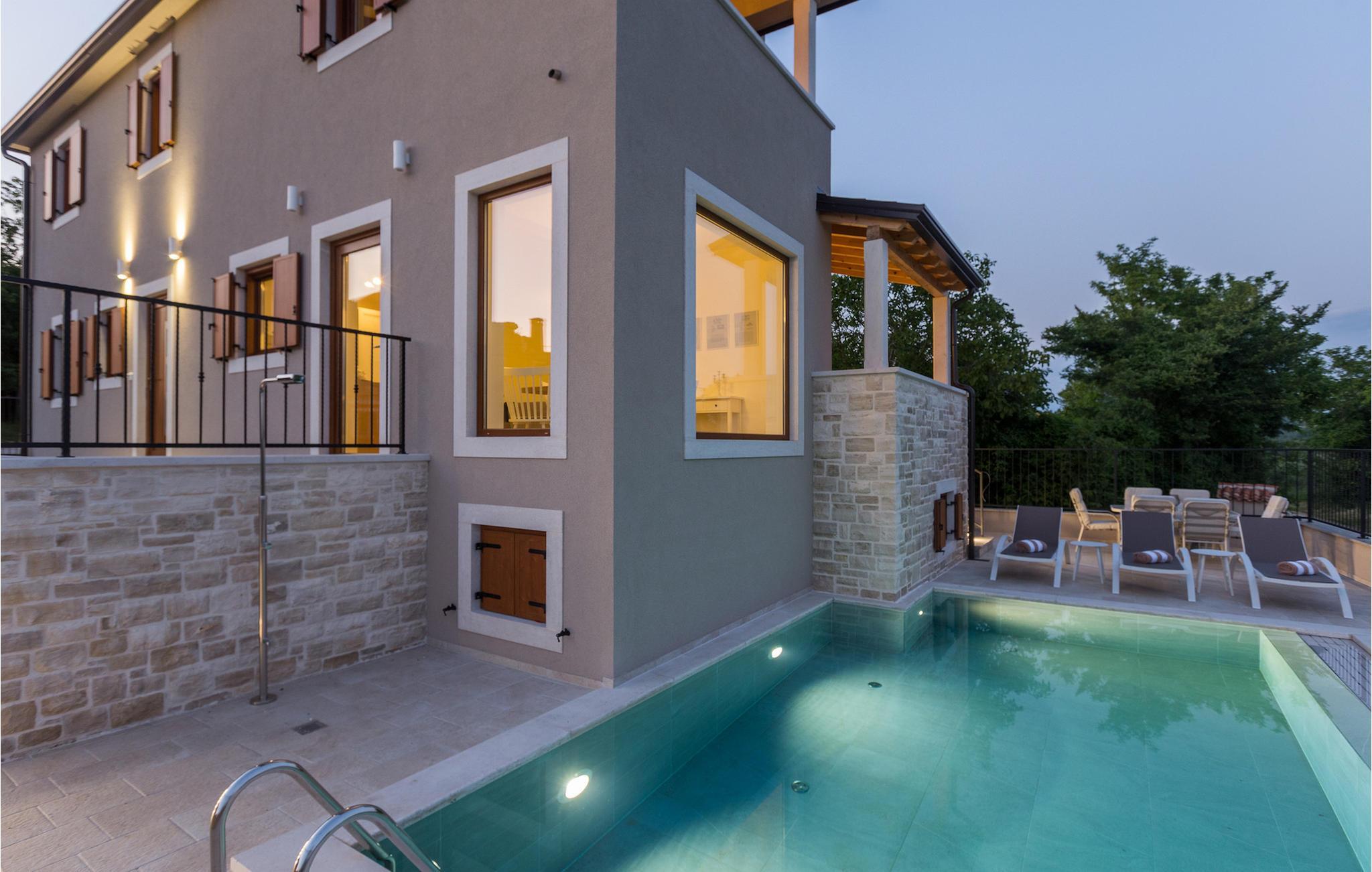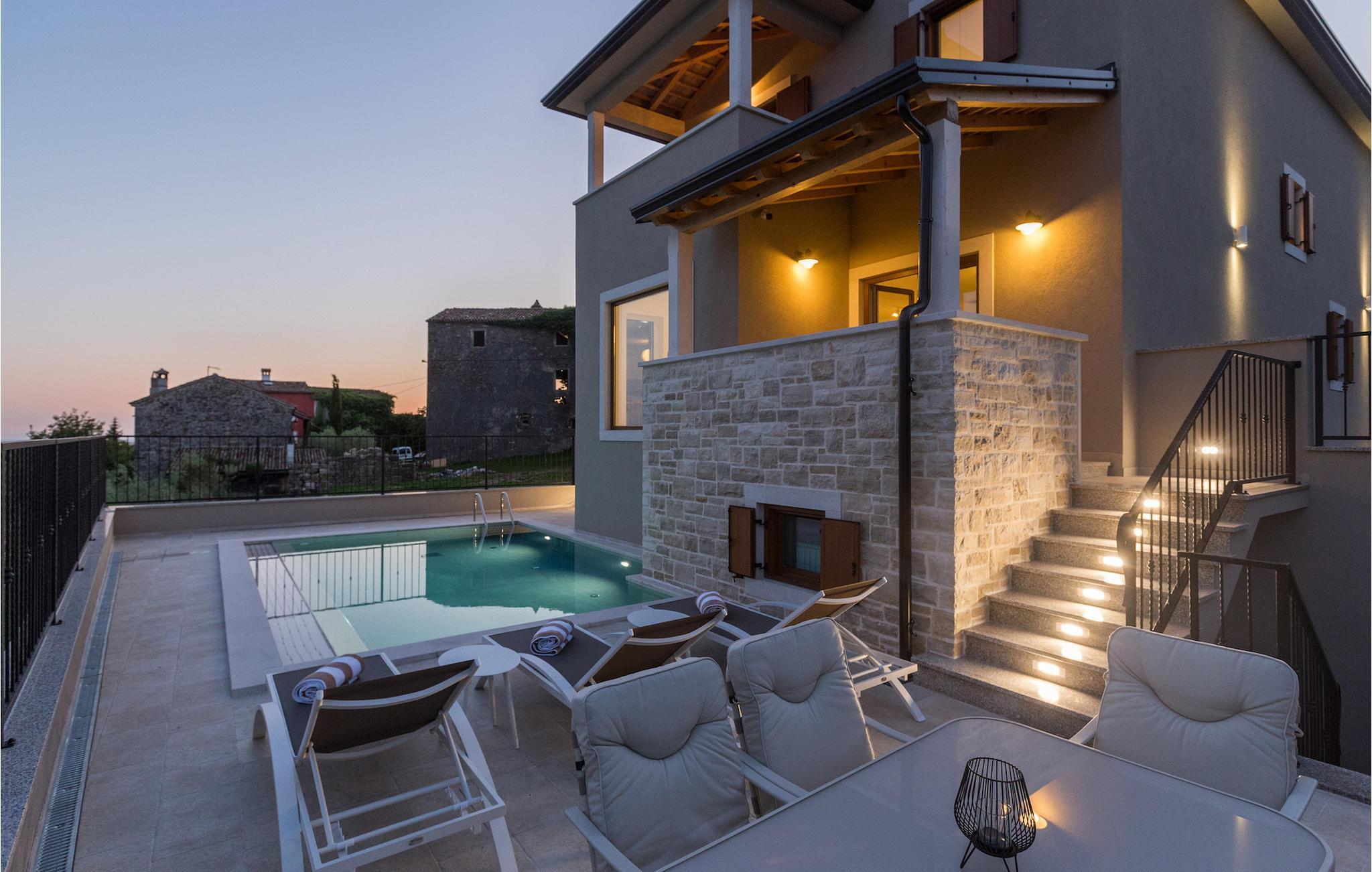 Den ekstraordinære Villa Skarline ligger i den lille landsby Donje Baredine, nær byen Buje. Villaen er omgivet af gamle istriske huse, der engang tilhørte grundejere, hvilket gjorde den perfekt for dem, der brænder for Istriens historie og arkitektur. Du kan bare stoppe op et øjeblik, lukke øjnene og forestille dig, hvordan livet var dengang. Med i alt 140 kvadratmeter boligareal giver det plads til op til 6 personer i 3 varmt indrettede soveværelser. Stueetagen består af en hyggelig stue med spiseplads, et veludstyret køkken, et gæstetoilet og et soveværelse med dobbeltseng med eget badeværelse. Et lille bibliotek, der fungerer som et afslappende hjørne, og to soveværelser med eget badeværelse er placeret på øverste etage. Fra et af soveværelserne har du udgang til en altan, hvorfra du kan nyde den storslåede udsigt over dalen og de omkringliggende bakker. Foran villaen er der et indbydende poolområde med liggestole, hvor du kan slappe af, mens du nyder en forfriskende drink. Villaen har en kulgrill, hvor du kan tilberede lækre måltider og servere dem for dine venner. Villaen er perfekt til en afslappende ferie med din familie eller venner, så gå ikke glip af denne mulighed og book Villa Skarline med nu.Villa Skarline ligger i den lille landsby Donje Baredine, nær den charmerende by Buje. Landsbyen har noget af det mest spektakulære landskab og byder på majestætisk udsigt over havet, de omkringliggende bakker og dalen ved floden Mirna. Villaen har fået sit navn fra den nærliggende Skarline Naturpark. Villa Skarline er ideel til en rolig og afslappende ferie, men også for dem, der ønsker at være aktive. Der er mange vandre- og cykelstier, der forbinder landsbyen med forskellige interessante steder. Vælger du Istrien og Villa Skarline som din næste feriedestination, vil du ikke fortryde det. Villaen er beliggende nær mange naturlige skønheder og steder, der er værd at se, såsom Groznjan, Motovun, Porec, Rovinj og mange andre, der vil fortrylle dig med deres historie og arkitektur. Istrien er kendt for sin gode gastronomi, så gå ikke glip af at besøge de mange berømte vinproducenter og olivenolieproducenter, der ligger i nærheden af villaen. Prøv de mange lækre traditionelle retter som håndlavet istrisk pasta med trøfler, istrisk oksekød kaldet boskarin og friske østers fra Limfjorden.