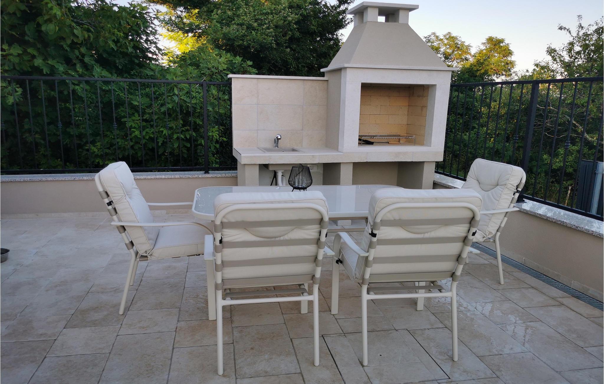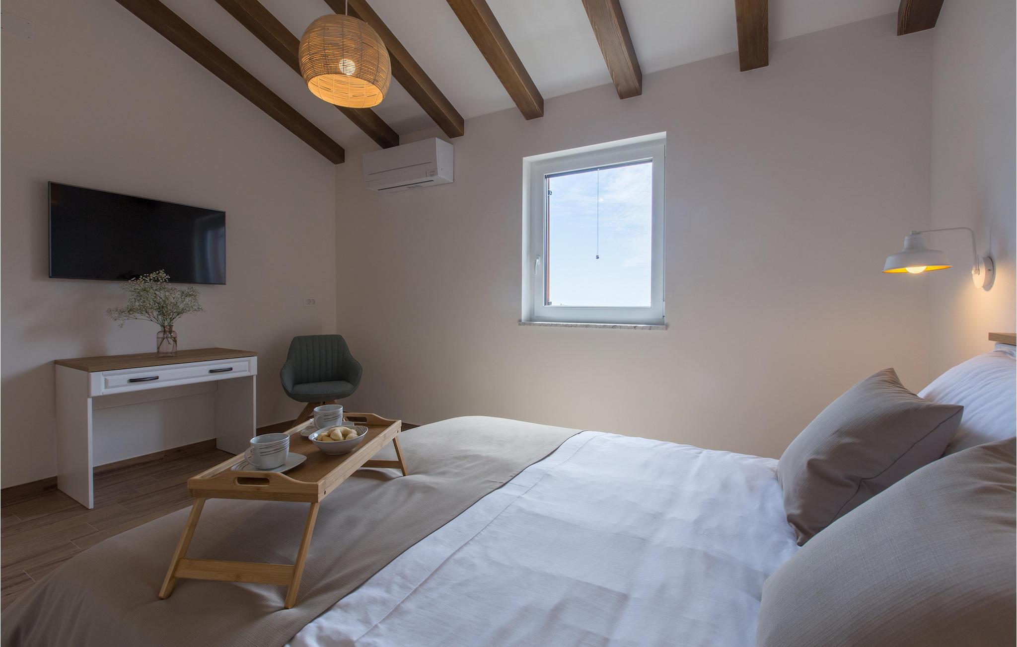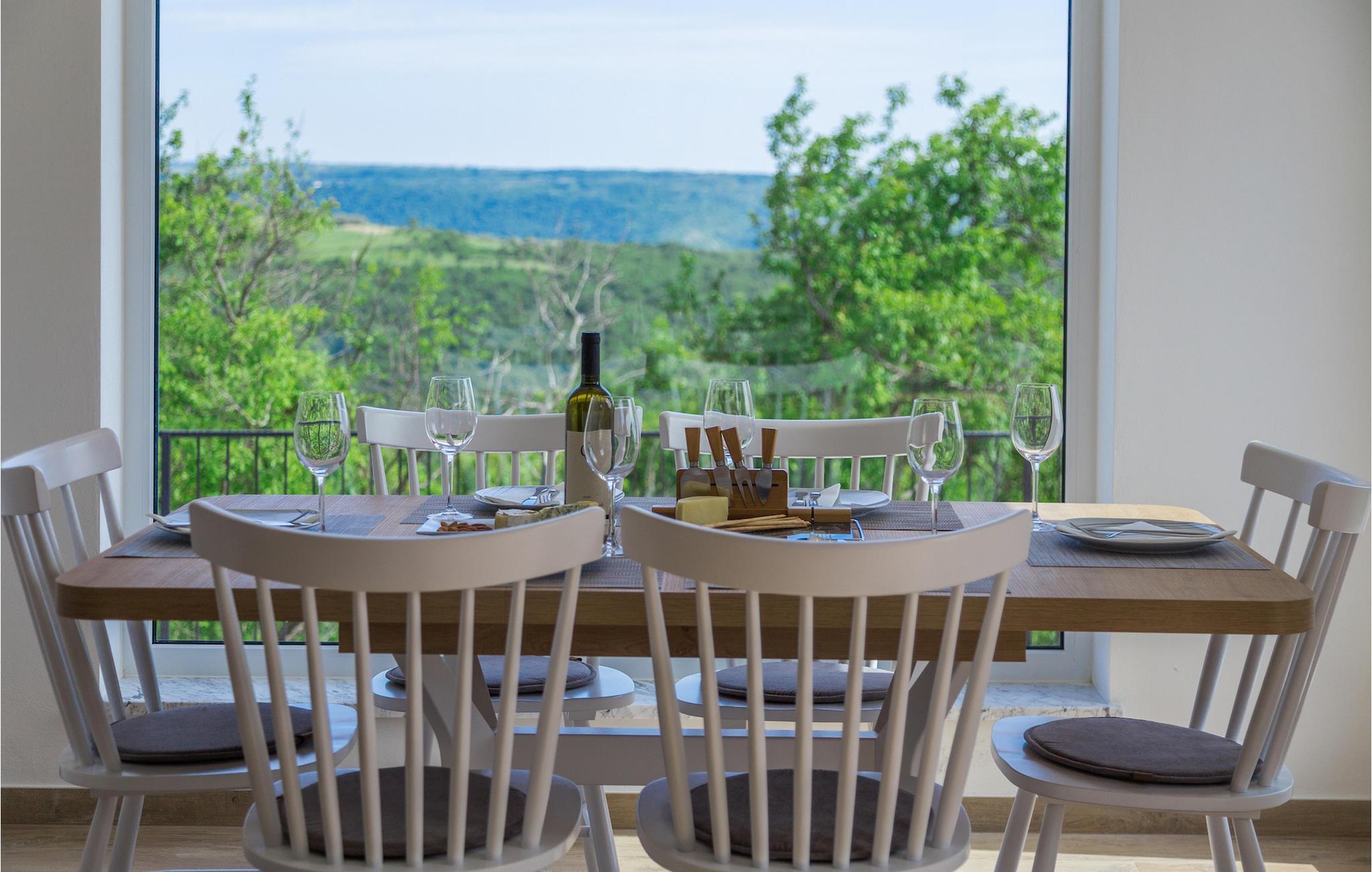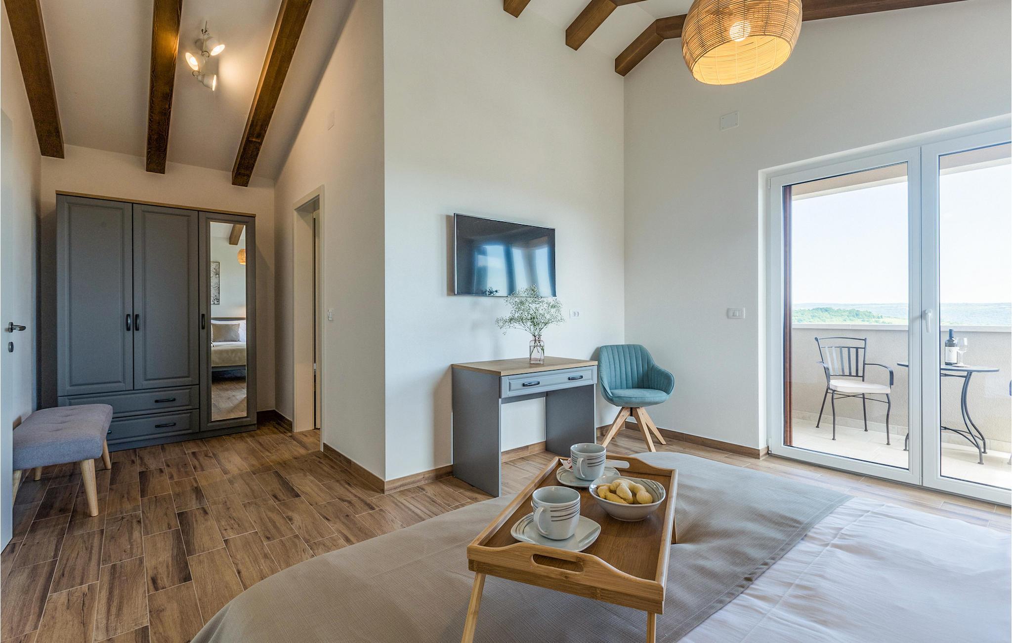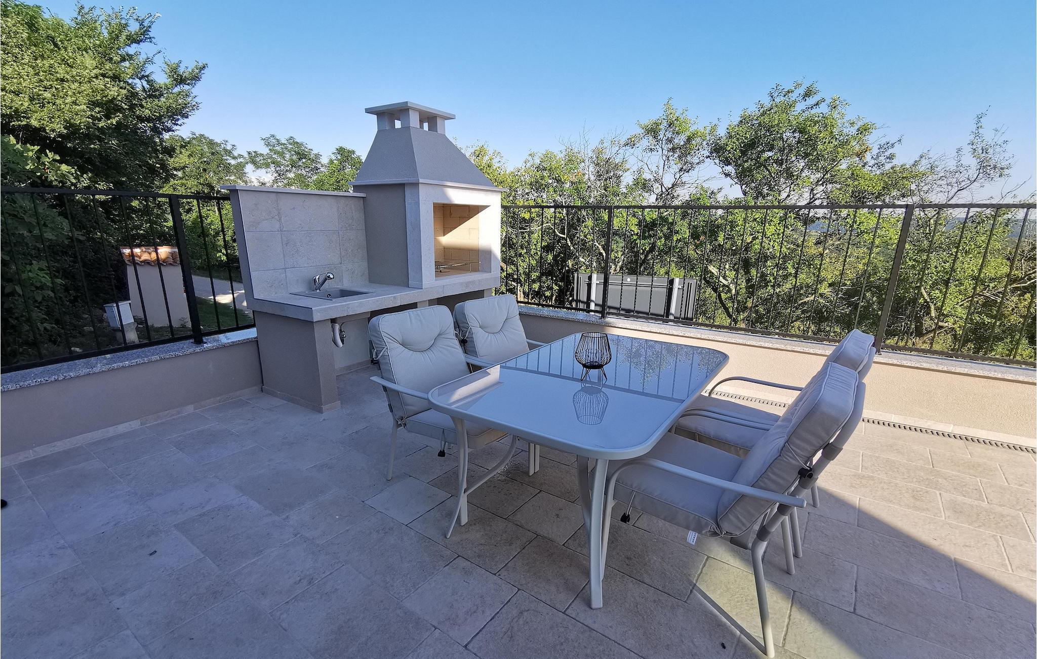 Den ekstraordinære Villa Skarline ligger i den lille landsby Donje Baredine, nær byen Buje. Villaen er omgivet af gamle istriske huse, der engang tilhørte grundejere, hvilket gjorde den perfekt for dem, der brænder for Istriens historie og arkitektur. Du kan bare stoppe op et øjeblik, lukke øjnene og forestille dig, hvordan livet var dengang. Med i alt 140 kvadratmeter boligareal giver det plads til op til 6 personer i 3 varmt indrettede soveværelser. Stueetagen består af en hyggelig stue med spiseplads, et veludstyret køkken, et gæstetoilet og et soveværelse med dobbeltseng med eget badeværelse. Et lille bibliotek, der fungerer som et afslappende hjørne, og to soveværelser med eget badeværelse er placeret på øverste etage. Fra et af soveværelserne har du udgang til en altan, hvorfra du kan nyde den storslåede udsigt over dalen og de omkringliggende bakker. Foran villaen er der et indbydende poolområde med liggestole, hvor du kan slappe af, mens du nyder en forfriskende drink. Villaen har en kulgrill, hvor du kan tilberede lækre måltider og servere dem for dine venner. Villaen er perfekt til en afslappende ferie med din familie eller venner, så gå ikke glip af denne mulighed og book Villa Skarline med nu.Villa Skarline ligger i den lille landsby Donje Baredine, nær den charmerende by Buje. Landsbyen har noget af det mest spektakulære landskab og byder på majestætisk udsigt over havet, de omkringliggende bakker og dalen ved floden Mirna. Villaen har fået sit navn fra den nærliggende Skarline Naturpark. Villa Skarline er ideel til en rolig og afslappende ferie, men også for dem, der ønsker at være aktive. Der er mange vandre- og cykelstier, der forbinder landsbyen med forskellige interessante steder. Vælger du Istrien og Villa Skarline som din næste feriedestination, vil du ikke fortryde det. Villaen er beliggende nær mange naturlige skønheder og steder, der er værd at se, såsom Groznjan, Motovun, Porec, Rovinj og mange andre, der vil fortrylle dig med deres historie og arkitektur. Istrien er kendt for sin gode gastronomi, så gå ikke glip af at besøge de mange berømte vinproducenter og olivenolieproducenter, der ligger i nærheden af villaen. Prøv de mange lækre traditionelle retter som håndlavet istrisk pasta med trøfler, istrisk oksekød kaldet boskarin og friske østers fra Limfjorden.