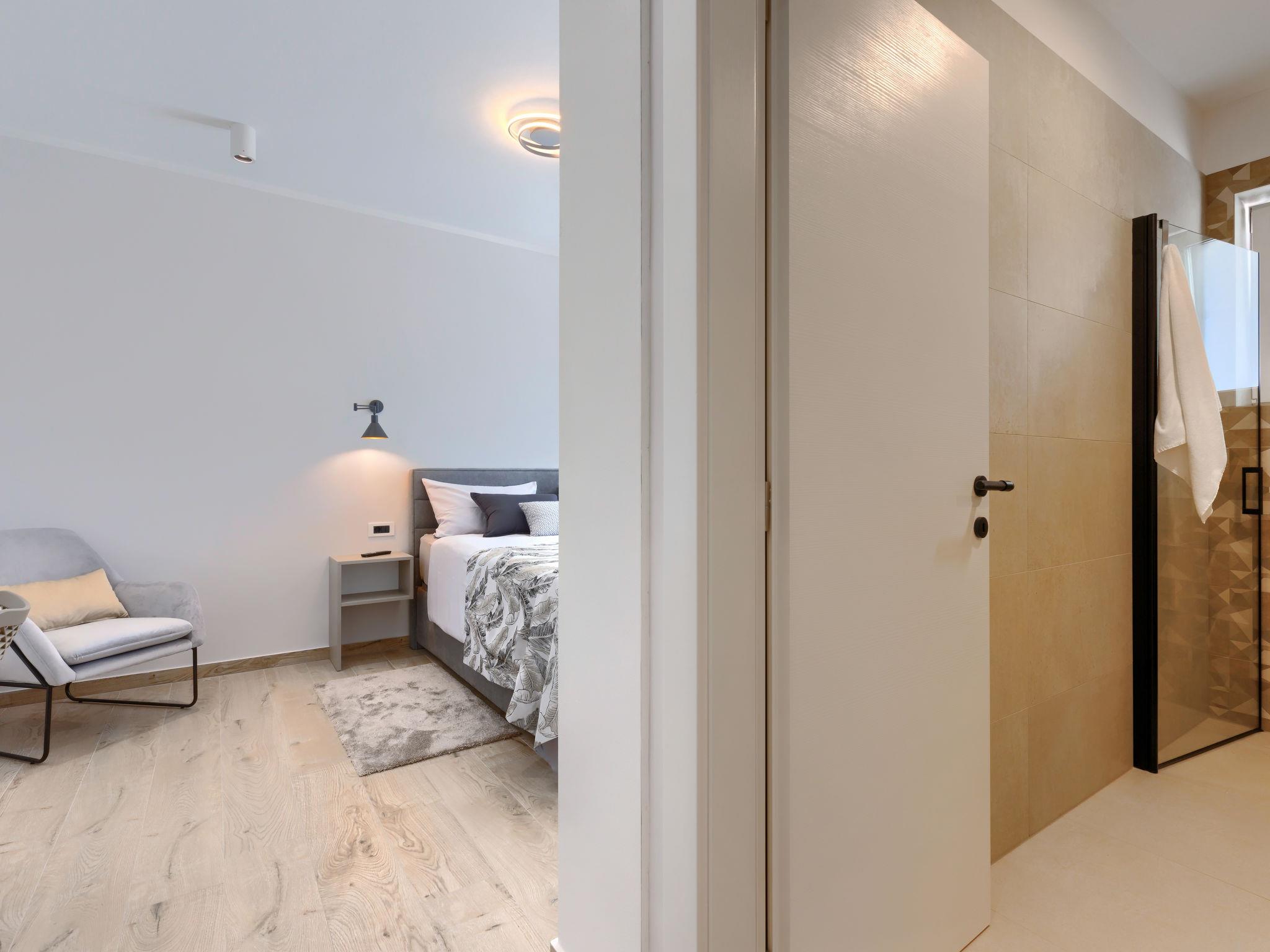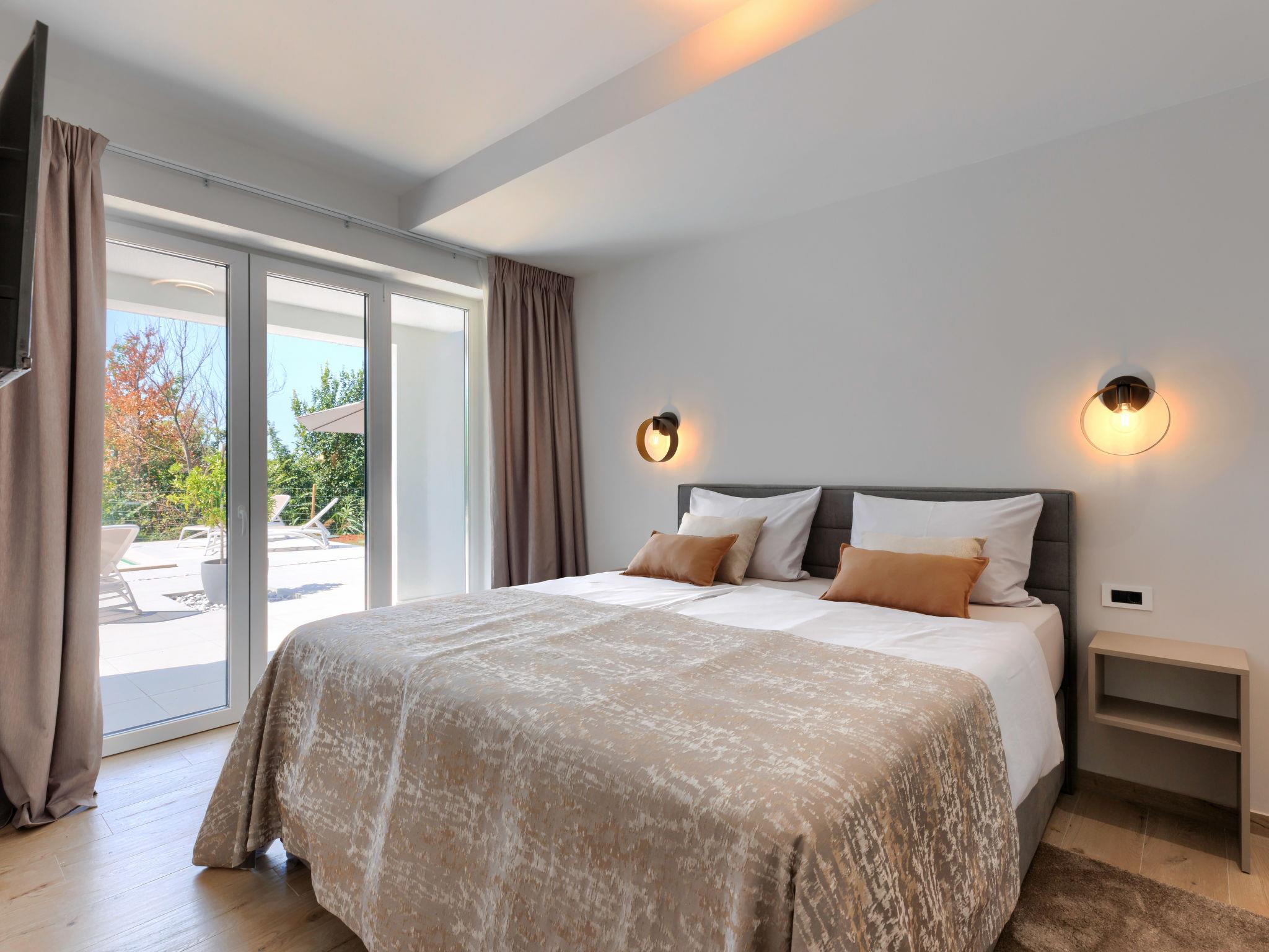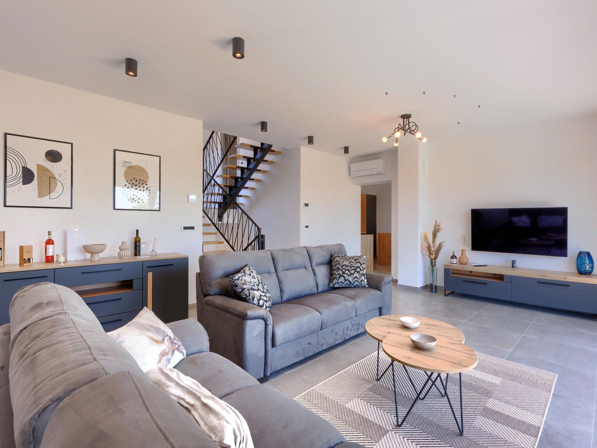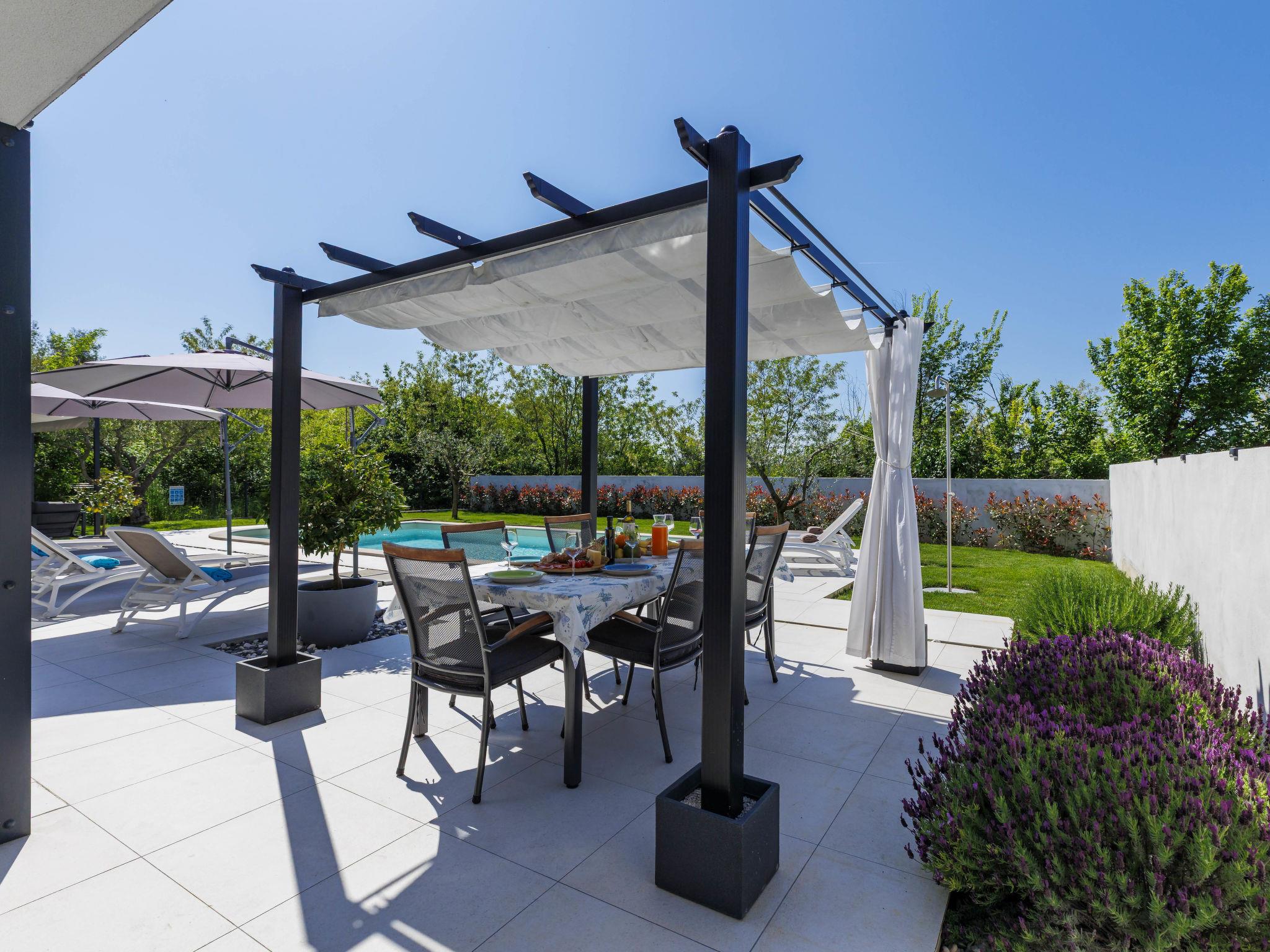 Beautiful single-family house "Villa Sonja". Outside the resort, 1 km from the centre of Buje, in a sunny position, 12 km from the sea. Private: property 500 m2, garden with lawn, swimming pool angular (8 x 4 m, depth 150 cm, seasonal availability: 01.May. - 31.Oct.) with internal staircase and salt-electrolysis pool-cleaning system. Outdoor shower, table tennis, barbecue, children's playground (slide, swing), pool maintenance by the owner/gardener. In the house: internet access, trampoline, washing machine, tumble dryer. Parking (for 2 cars) at the house on the premises. Shop 1 km, supermarket 1 km, restaurant 2 km, bus stop 800 m, pebble beach 12 km, rocky beach 12 km. Golf course (18 hole) 18 km, walking paths from the house 200 m, cycle lane 250 m. The owner does not accept any youth groups. Organizing a party is not allowed.