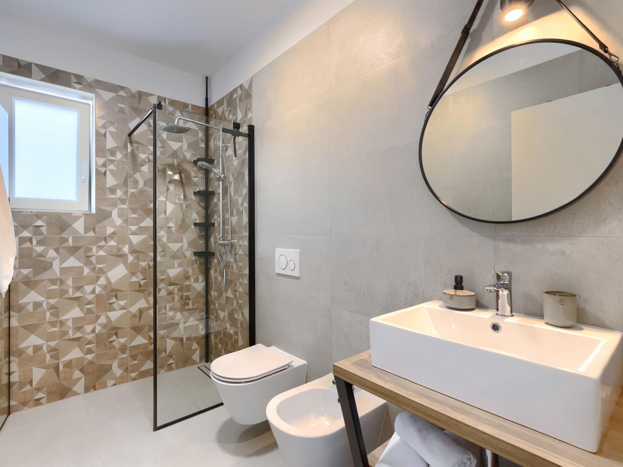 4-room house 160 m2 on 3 levels. Beautiful and tasteful furnishings: living/dining room with satellite TV (flat screen), air conditioning. Exit to the terrace. Open kitchen (oven, dishwasher, 4 induction hot plates, toaster, kettle, freezer, electric coffee machine). Exit to the terrace. Shower/WC. On the lower ground floor: 2 rooms, each room with 1 french bed (180 cm, length 200 cm), shower/bidet/WC and satellite TV (flat screen), air conditioning. Exit to the swimming pool. Upper floor: 1 room with 1 french bed (180 cm, length 200 cm), satellite TV (flat screen), air conditioning. Exit to the terrace. Heating (extra). Terrace 20 m2, terrace 32 m2. Terrace furniture, deck chairs. Panoramic view of the sea and the countryside. Facilities: safe, iron, mosquito net, children's high chair, baby cot, hair dryer. Internet (WiFi, free).