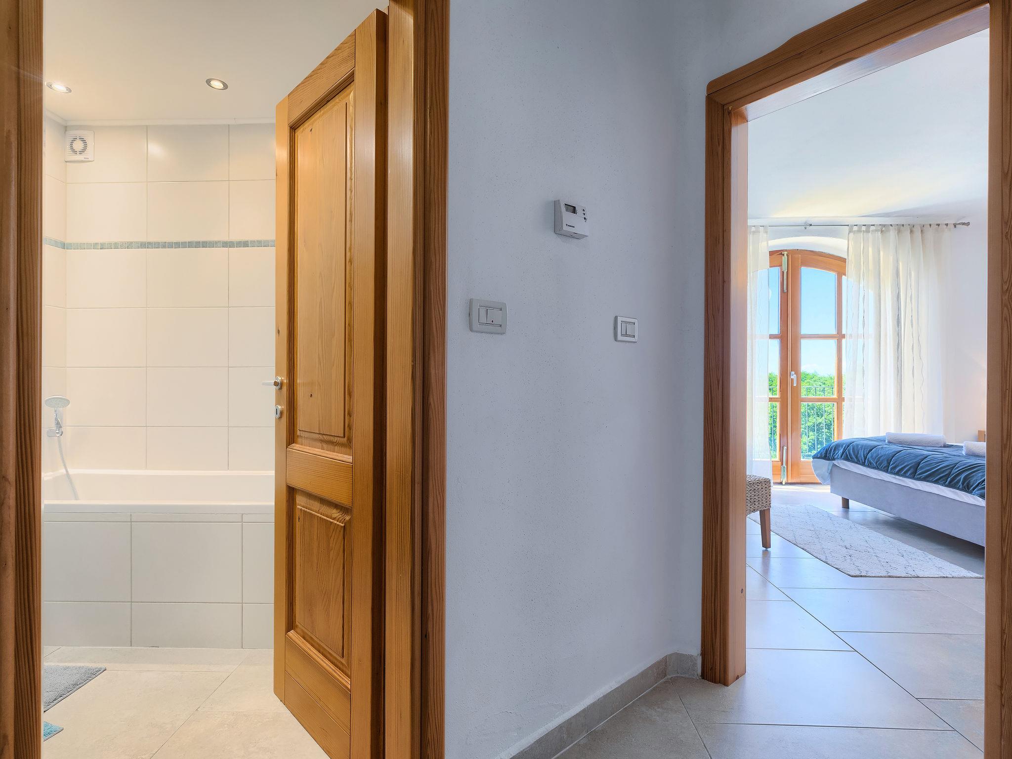 Beautiful terraced house "Bibali", 2 storeys. In the hamlet Bibali 2 km from the centre of Buje, in a quiet, sunny position on a slope, 12 km from the sea. For shared use: property 2'000 m2 (fenced), garden, swimming pool angular (11 x 8 m, depth 100 - 150 cm, seasonal availability: 15.Apr. - 15.Oct.) with internal staircase. Outdoor shower. In the house: internet access, washing machine, tumble dryer. Parking at the house on the premises. Shop 2 km, restaurant 2 km, bus stop 2 km, railway station 28 km, pebble beach 12 km. Golf course (18 hole) 17 km, tennis 1 km, riding stable 5 km, walking paths from the house 1 km, cycle lane 1 km. Neighbourhood highly sensitive to noise. Quietness and good behaviour expected.