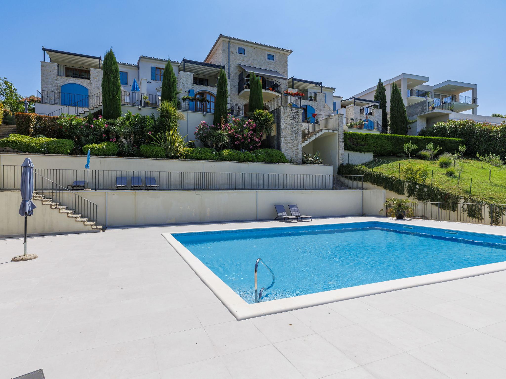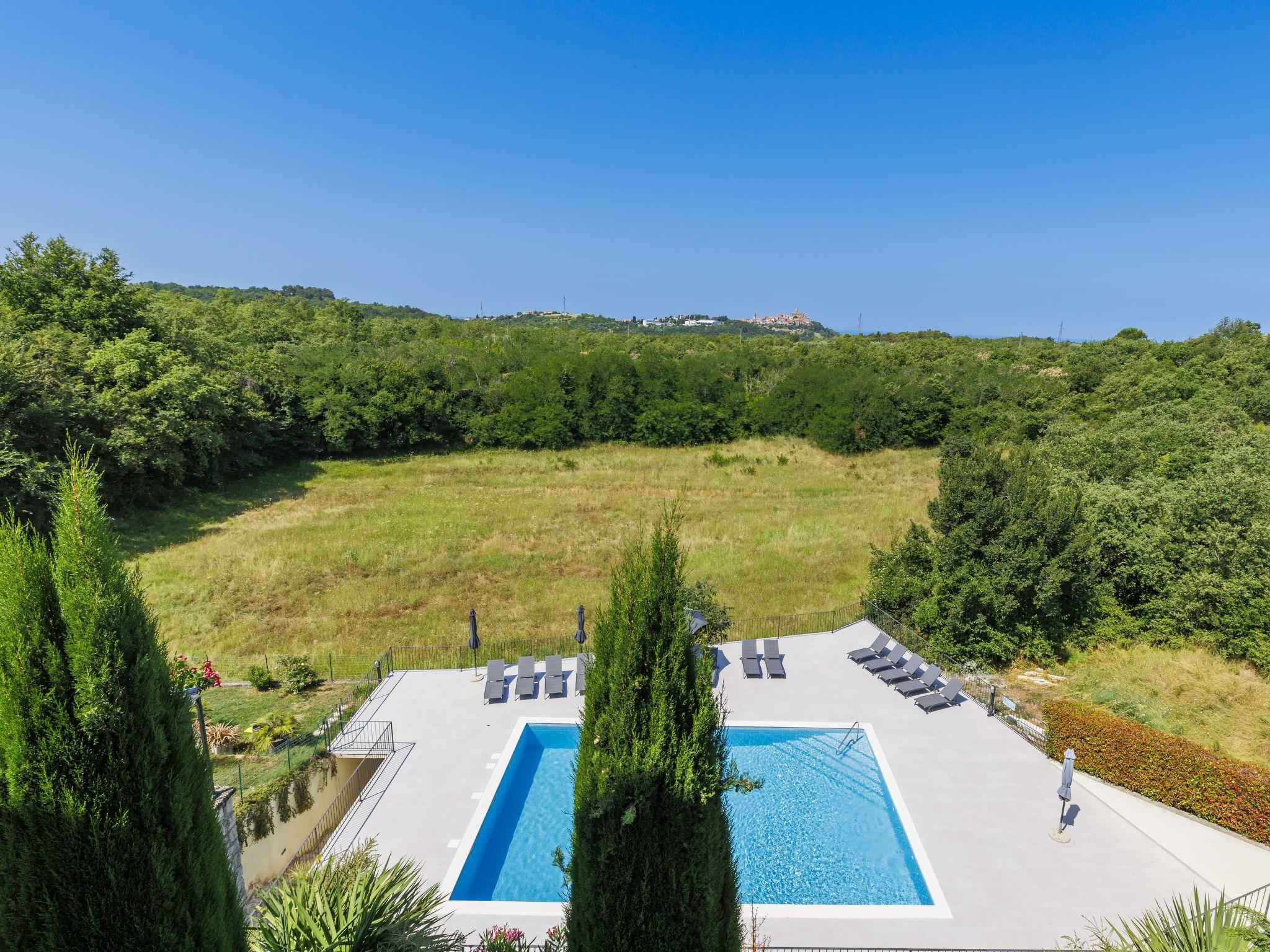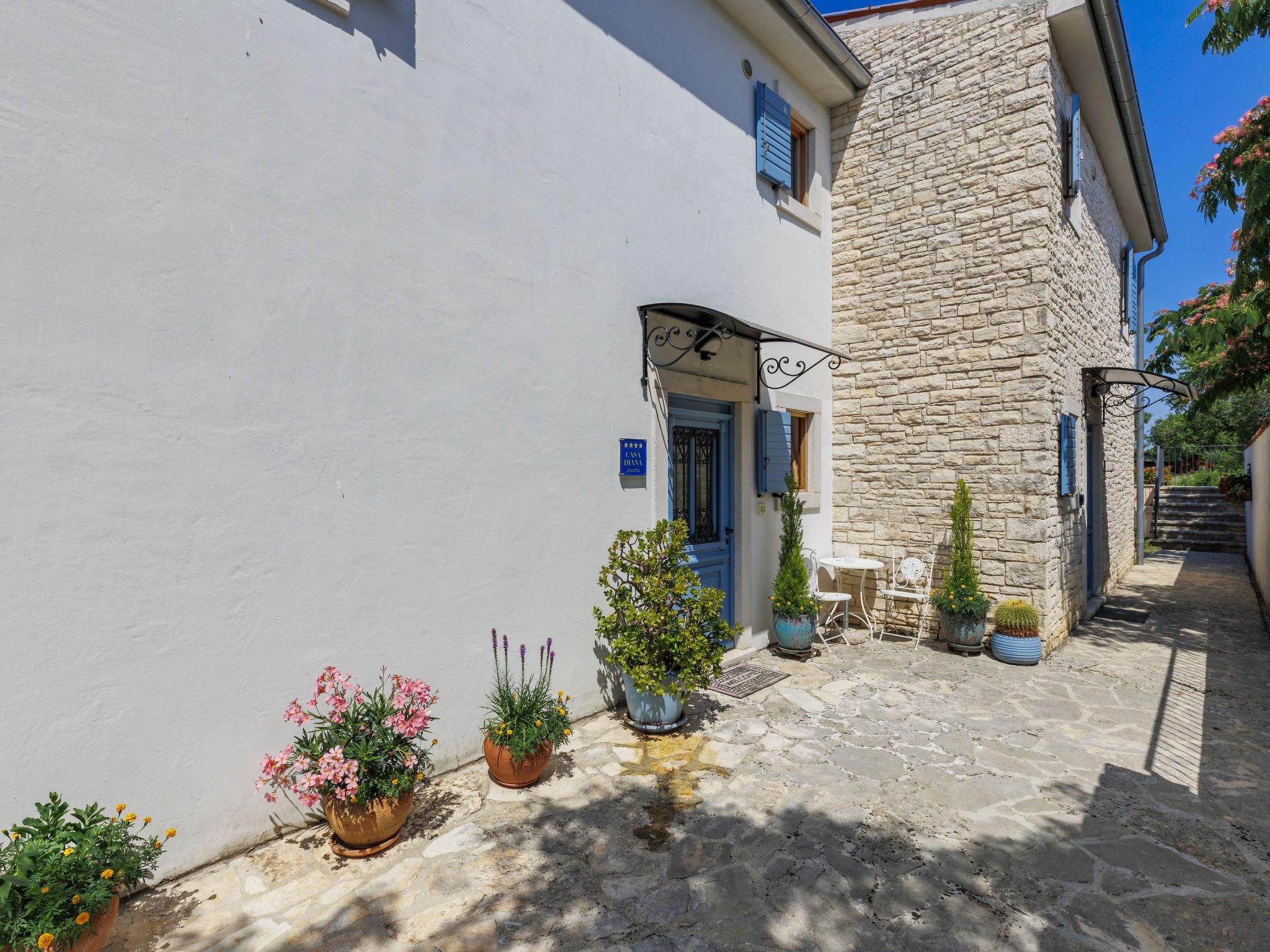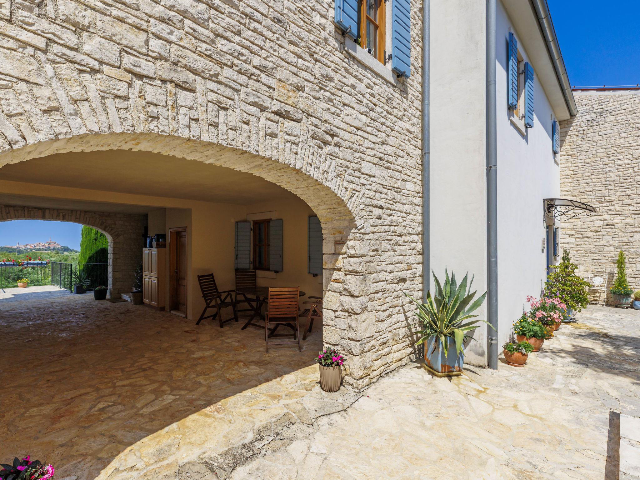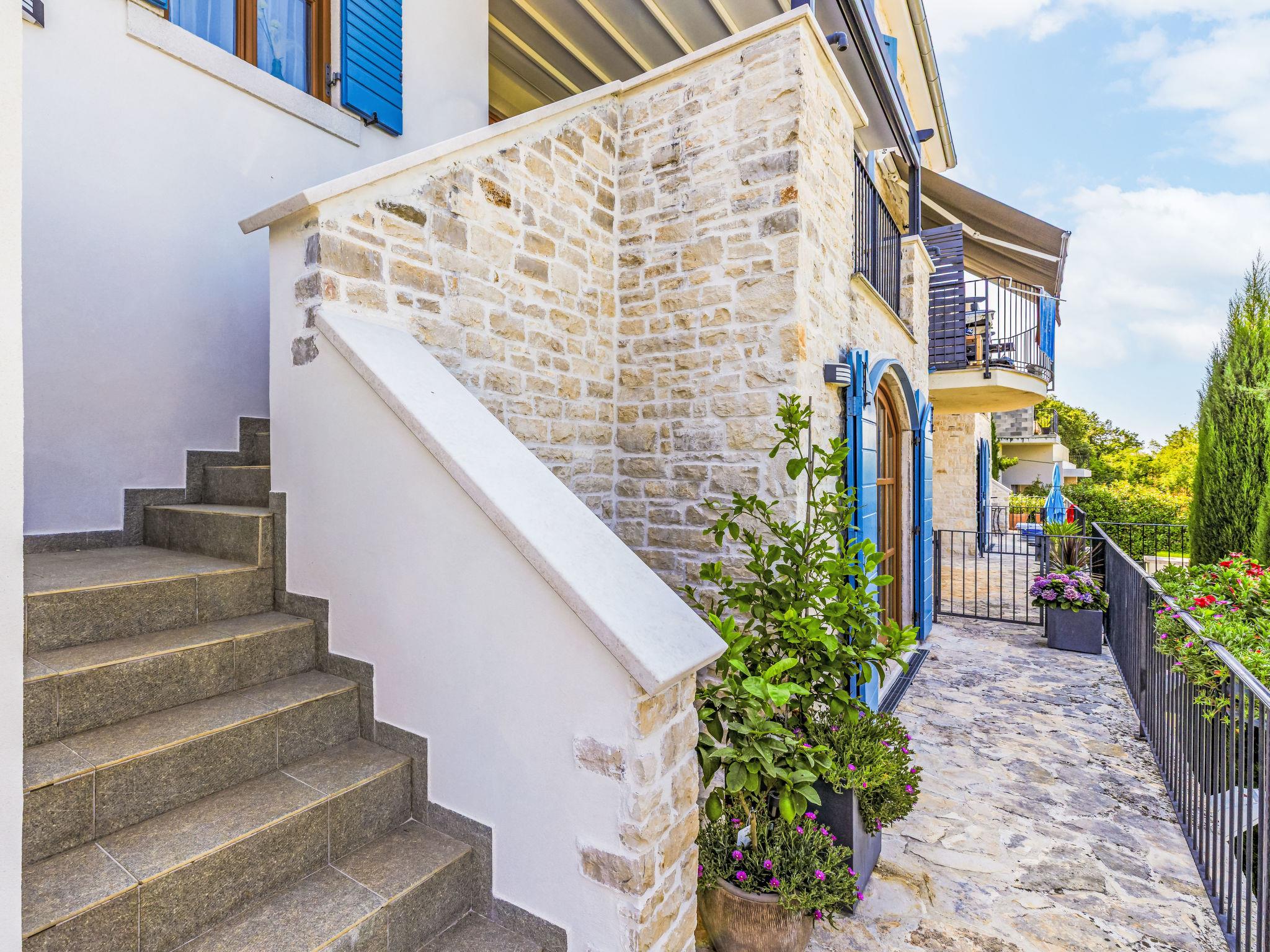 Beautiful terraced house "Bibali", 2 storeys. In the hamlet Bibali 2 km from the centre of Buje, in a quiet, sunny position on a slope, 12 km from the sea. For shared use: property 2'000 m2 (fenced), garden, swimming pool angular (11 x 8 m, depth 100 - 150 cm, seasonal availability: 15.Apr. - 15.Oct.) with internal staircase. Outdoor shower. In the house: internet access, washing machine, tumble dryer. Parking at the house on the premises. Shop 2 km, restaurant 2 km, bus stop 2 km, railway station 28 km, pebble beach 12 km. Golf course (18 hole) 17 km, tennis 1 km, riding stable 5 km, walking paths from the house 1 km, cycle lane 1 km. Neighbourhood highly sensitive to noise. Quietness and good behaviour expected.