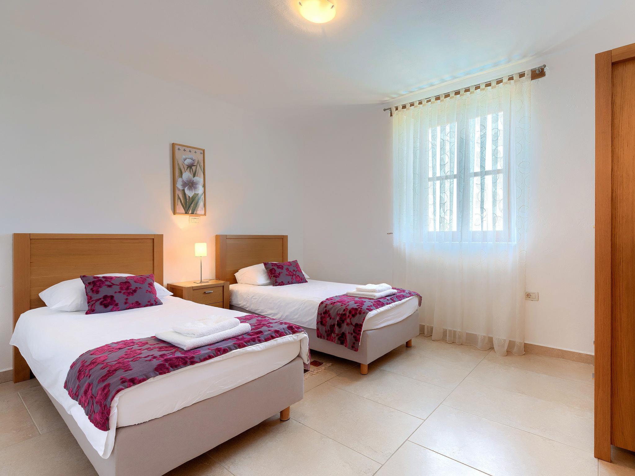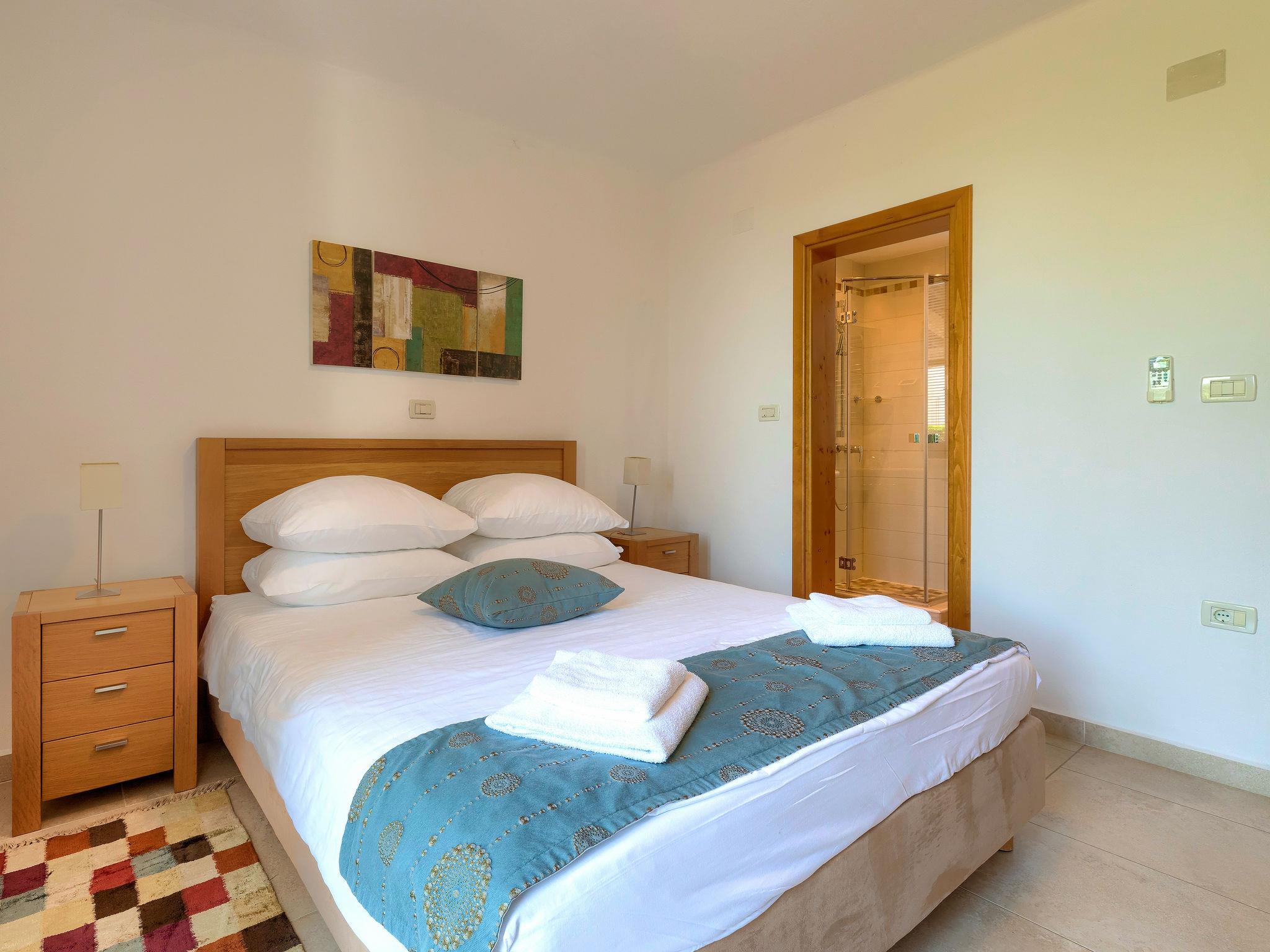 5-room villa 148 m2 on 2 levels. Beautiful and cosy furnishings: living/dining room with satellite TV (flat screen), DVD and air conditioning. Exit to the terrace. 1 room with 1 french bed (160 cm, length 200 cm), shower/WC and air conditioning. Exit to the terrace. Open kitchen (oven, dishwasher, 4 ceramic glass hob hotplates, microwave, freezer, electric coffee machine). Sep. WC. Upper floor: 1 room with 1 french bed (160 cm, length 200 cm), shower/WC and air conditioning. 1 room with 2 beds (80 cm, length 200 cm), air conditioning. 1 room with 2 beds (80 cm, length 200 cm), air conditioning. Exit to the terrace. Bath/shower/bidet/WC. Floor heating. Terrace 15 m2, roofed, 2 terraces 8 m2, roofed. Terrace furniture, barbecue (portable), deck chairs. Very beautiful view of the swimming pool and the countryside. Facilities: safe, hair dryer. Internet (WiFi, free).