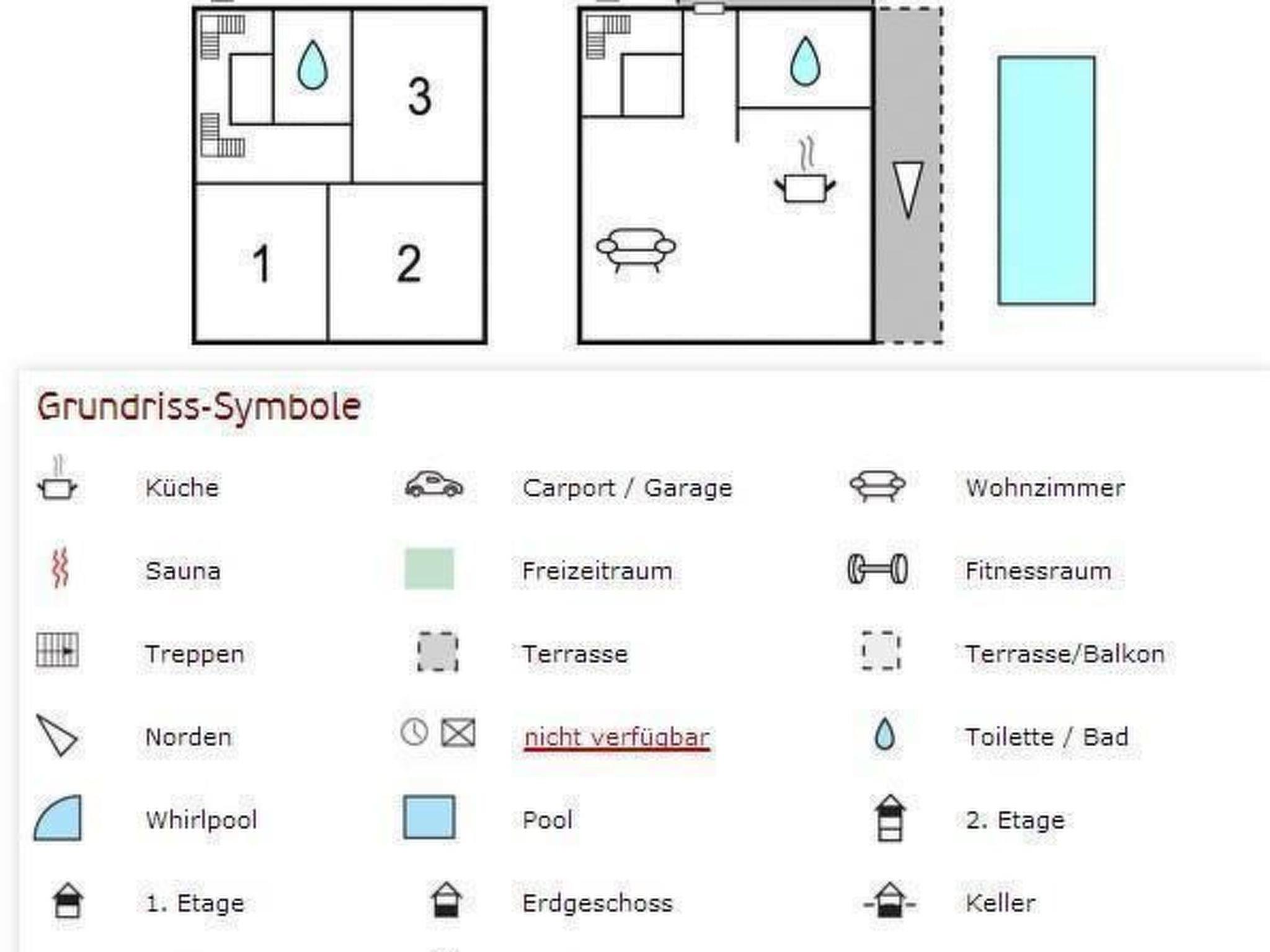 The holiday home offers 120 m² of space for six people. On the 70 m² ground floor you will find the living room with satellite TV and sofa bed as well as a dining table with chairs. In the open-plan kitchen you will find a cooker, fridge, dishwasher, coffee machine and kettle. A bathroom with shower, toilet, towels and hairdryer is also located on the ground floor, as is a storage room. On the 50 m² 1st floor there are two bedrooms, each with a double bed measuring 180 x 200 cm and one bedroom with two single beds (100 x 200 cm). There is a further bathroom with shower, toilet and towels.
