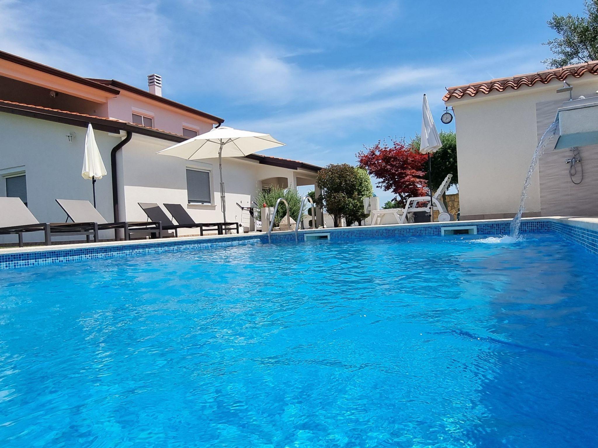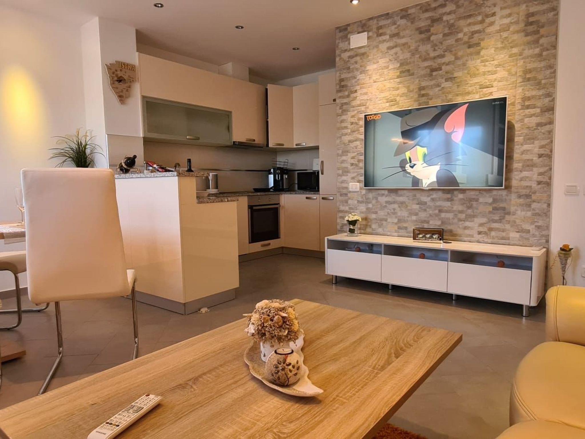Villa Kasandra - your perfect holiday home in IstriaDiscover the dreamlike landscape of Istria and enjoy an unforgettable stay in one of our three comfortably furnished holiday flats at Villa Kasandra.Location:- Quietly located flat in Kastel, a picturesque village in Istria- 6 kilometres from Buje, a lively town with a wide range of attractions- 12 kilometres from Umag, a popular seaside resort with beautiful beachesNear the village centre:- Grocery shops for basic daily supplies- Restaurants with traditional Istrian cuisine- Ideal starting point for:- Excursions in the surrounding area- cycling tours- Beach days on the AdriaticThe three flats each have:- Two bedrooms with bedside tables, lamps and wardrobes- Modern bathroom with shower, WC, washbasin with vanity unit and mirror cabinet- Fully equipped kitchen with:- Granite worktop in two flats- Glass ceramic hob- Oven- dishwasher- fridge- Freezer compartment- Microwave oven- Electric kettle- Coffee machine- toaster- cutlery- crockery- pans- pots and pans- glasses- Dining area with six chairs (App Ivan)- Dining area with four chairs (App Denis)- High table with four bar stools (App Sanja)- Direct access to the terrace (App Ivan, Sanja)- Balcony with sea view (App Denis)- Air conditioning and underfloor heating- WLAN access- TowelsAdditional equipment:- Baby cot free of charge on request- Shared pool, ideal for cooling off on hot days, relaxing on sun loungers and having fun in the water- Three separate barbecue areas, ideal for cosy barbecue evenings and preparing delicious meals- Six sun loungers for relaxing and sunbathing- Bed linen and towels are provided.- Smoking is not permitted in the flats.Note:- The pool is open from May to October- Please note: The landlord lives on the property and will be happy to answer any questions you may have.- Numerous hiking and cycling trails nearby for exploring the beautiful Istrian countryside and active holidays in nature- Various restaurants and shopping facilities in the surrounding villages for savouring the local cuisine and buying souvenirs and groceries- Places of interest:- Buje: approx. 7 km: Old town with Venetian architecture, city walls and bell tower- Umag: approx. 13 km: Bathing beaches, sports facilities, ACI marina- Grožnjan: approx. 22 km: Artists' village with medieval flair- Motovun: approx. 27 km: Mountain village with breathtaking views- Pula: approx. 60 km: Roman amphitheatre, Temple of Augustus, triumphal arch- Brijuni National Park: approx. 70 km and Plitvice Lakes: approx. 140 km: unique natural landscapes