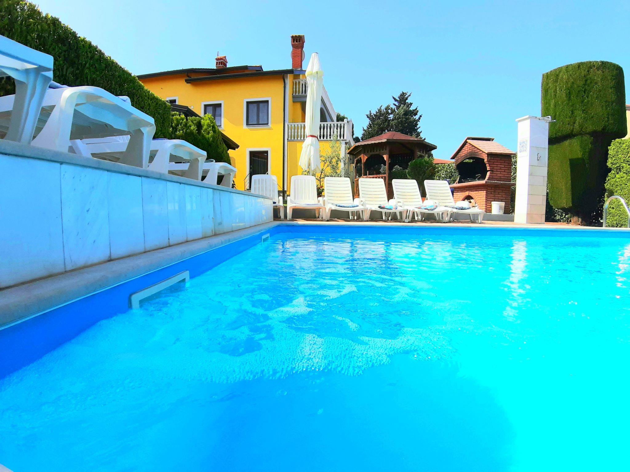. The accommodation is located approx. 2 km after the Croatian border in Kastel. Travelling from the west, drive through Slovenia. Drive past Koper, turn right onto the A1 in Koper (sign Pula Porec-HR) and follow the E751 Smarska Road towards the Croatian border crossing at Castel. Castel is the first village after the border. Turn left 400 metres after the border (sign Kastel). In Kastel, follow the signs to Umag. After 350 metres, turn right at the chapel. Here you will see the sign Vizinada