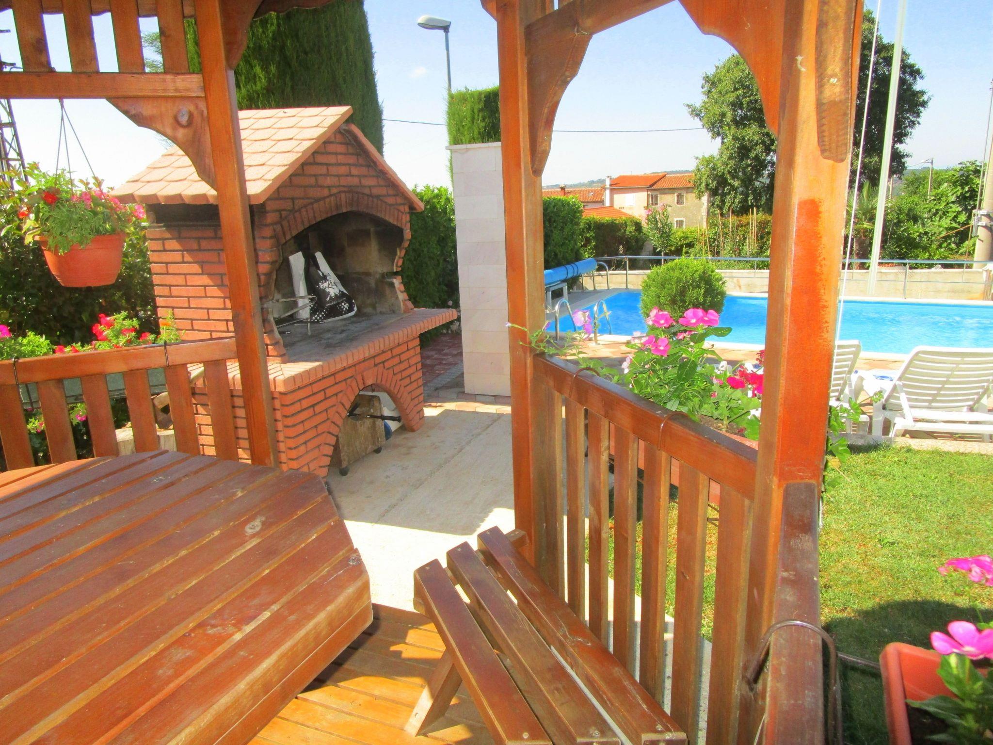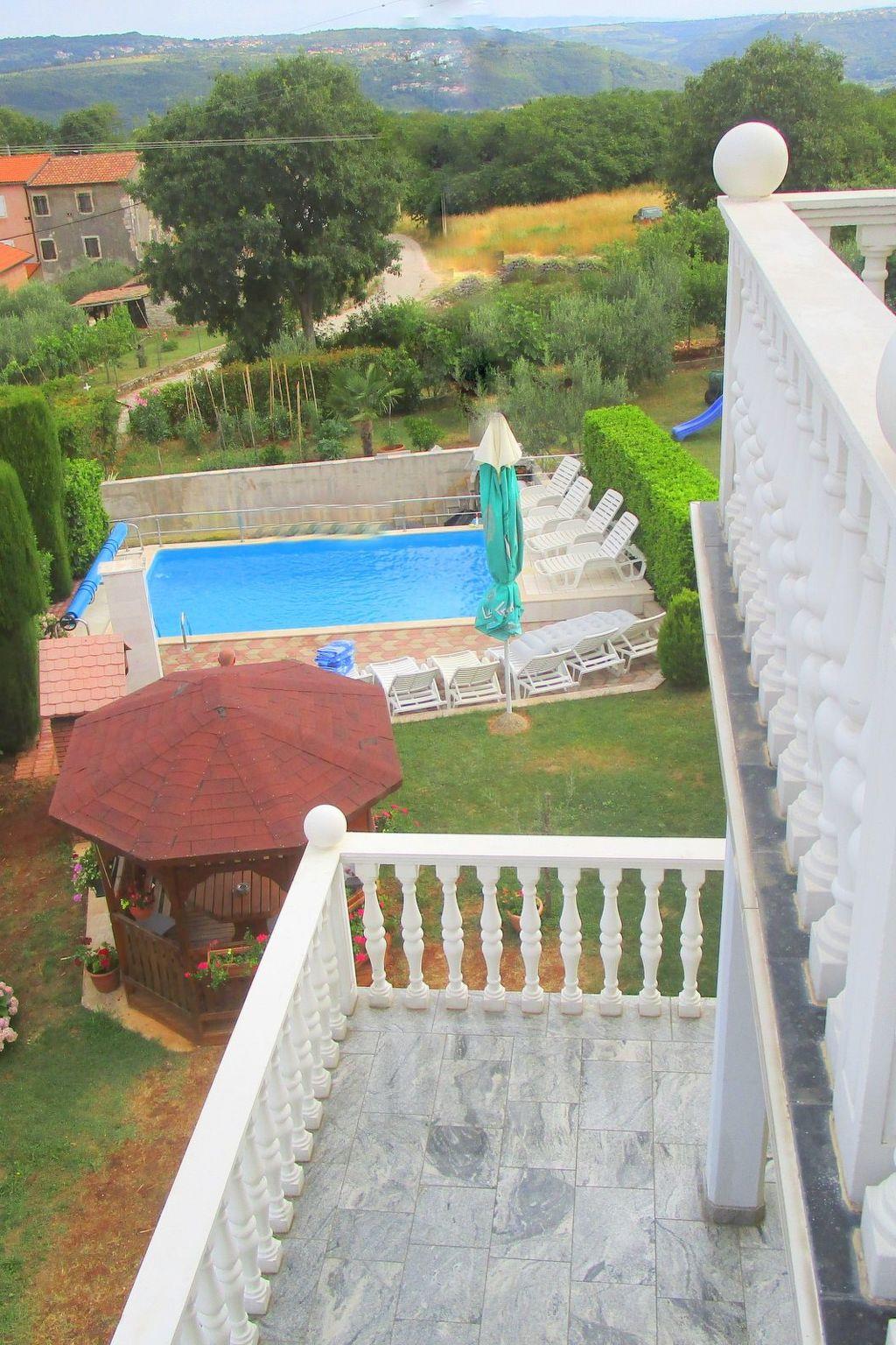 This is a beautiful holiday home for up to 10 people with a heated pool on a fenced plot of 1200m2 that is stylishly furnished with modern equipment for a pleasant holiday. Built in a quiet residential area with single and multi-family houses, you are located in the northern interior of Istria, not far from the border with Slovenia, and can easily go on excursions to nature, beautiful villages, the sea and neighbouring countries. Next to the main house, on a plot of 1200 m2, you will find a large terrace for pleasant gatherings, a pool with sun loungers, a gazebo with a barbecue and a room with table tennis. The two-storey holiday home is divided into 6 bedrooms, three with double beds,
