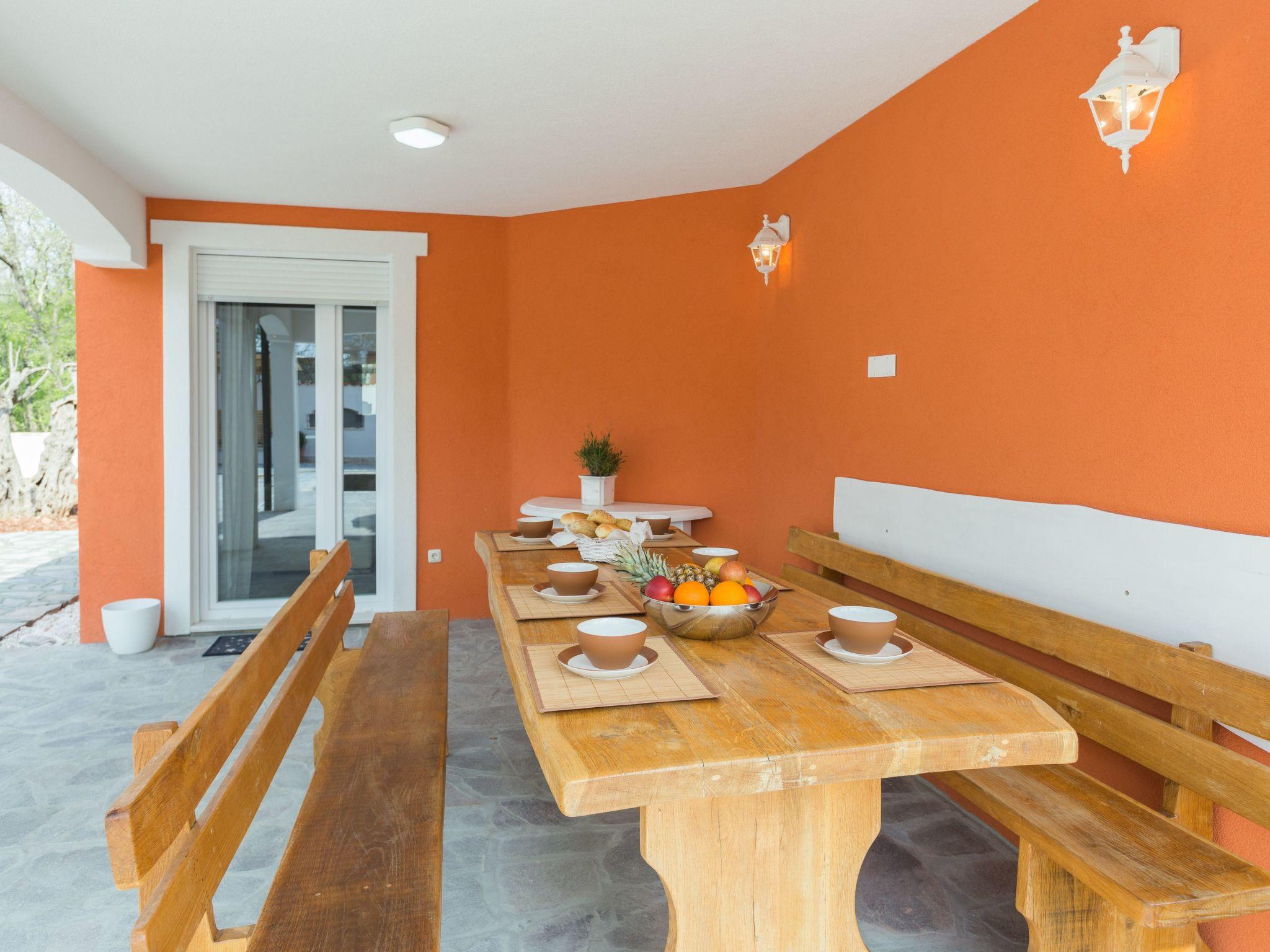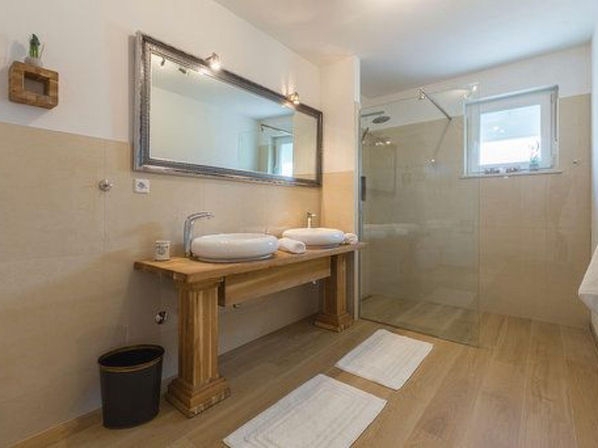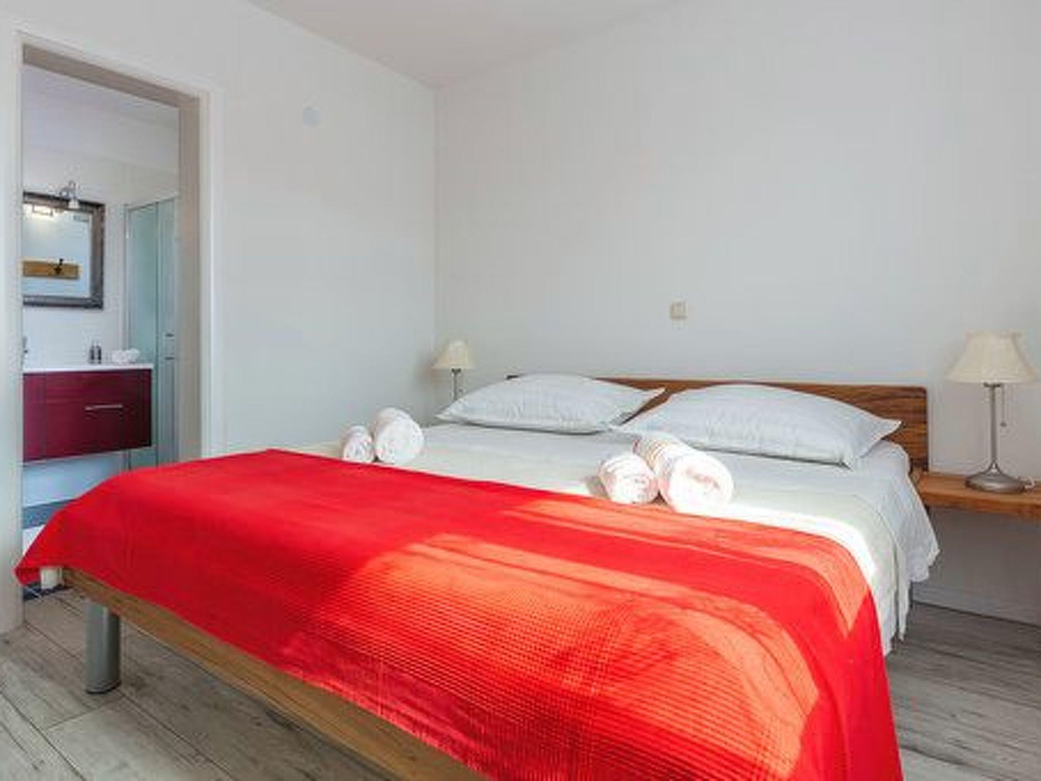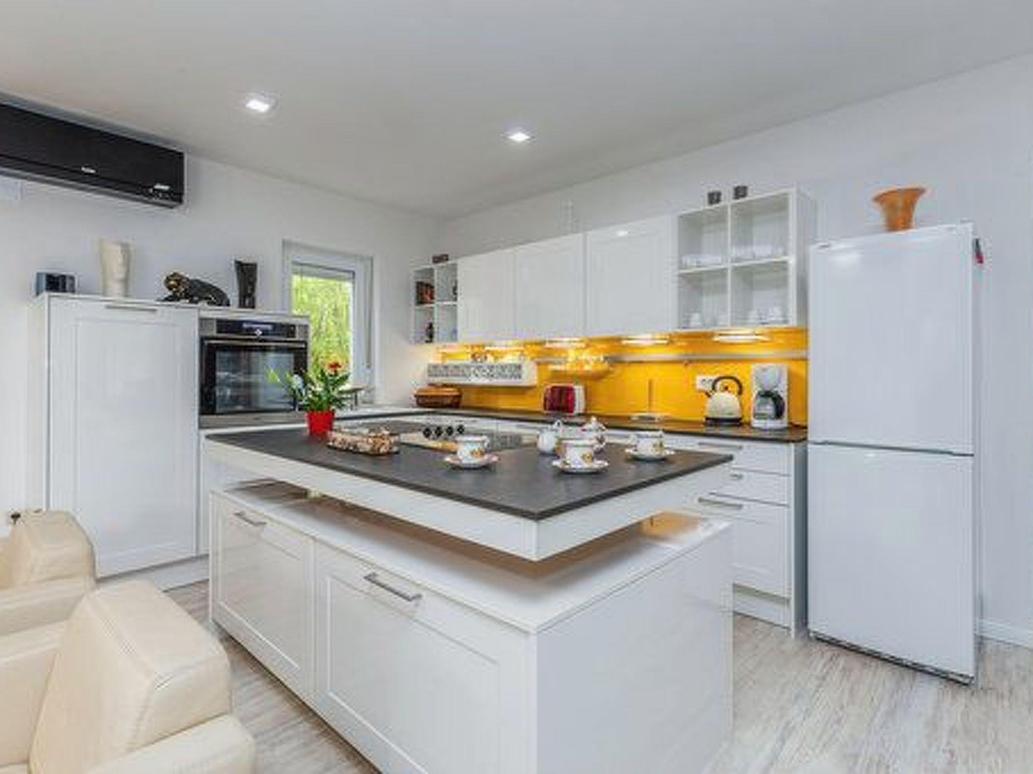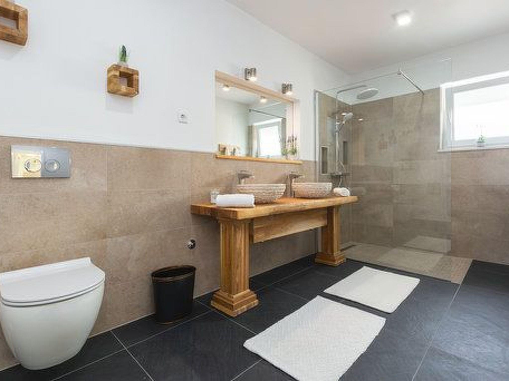 Inside, Villa Deni impresses with a spacious layout over two floors, comprising four double bedrooms with comfortable 180 x 200 cm beds. Three fully equipped bathrooms with showers, two of which have double washbasins, ensure comfort and privacy for all guests. On the ground floor, a fully equipped kitchen invites you to develop your culinary skills, complemented by a dining area with a table for six and a cosy seating area with flat-screen satellite TV. For convenience, the kitchen is equipped with modern appliances such as a dishwasher, oven, hob, coffee machine, kettle, microwave and a fridge with freezer compartment.