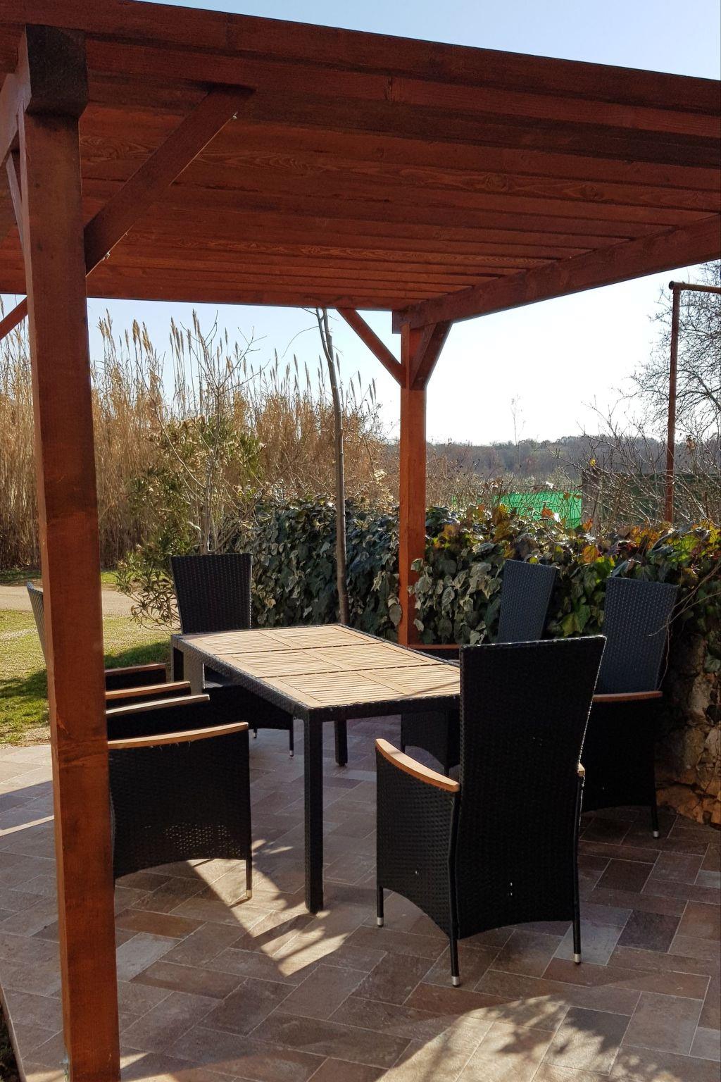 This two bedroom apartment is newly renovated and fully equipped. It's has a modern open-space design with a high ceiling. Parking is free and in front of the apartment. The apartment has 80 m2 which makes him one of the biggest in the area and delivers great comfort. Relax in the garden under the pergola, grill whenever you please, and have a memorable stay. The apartment is located in a typical Istrian village only 4 minutes drive from the beach and 5 min from the famous Aquapark Istralandia.