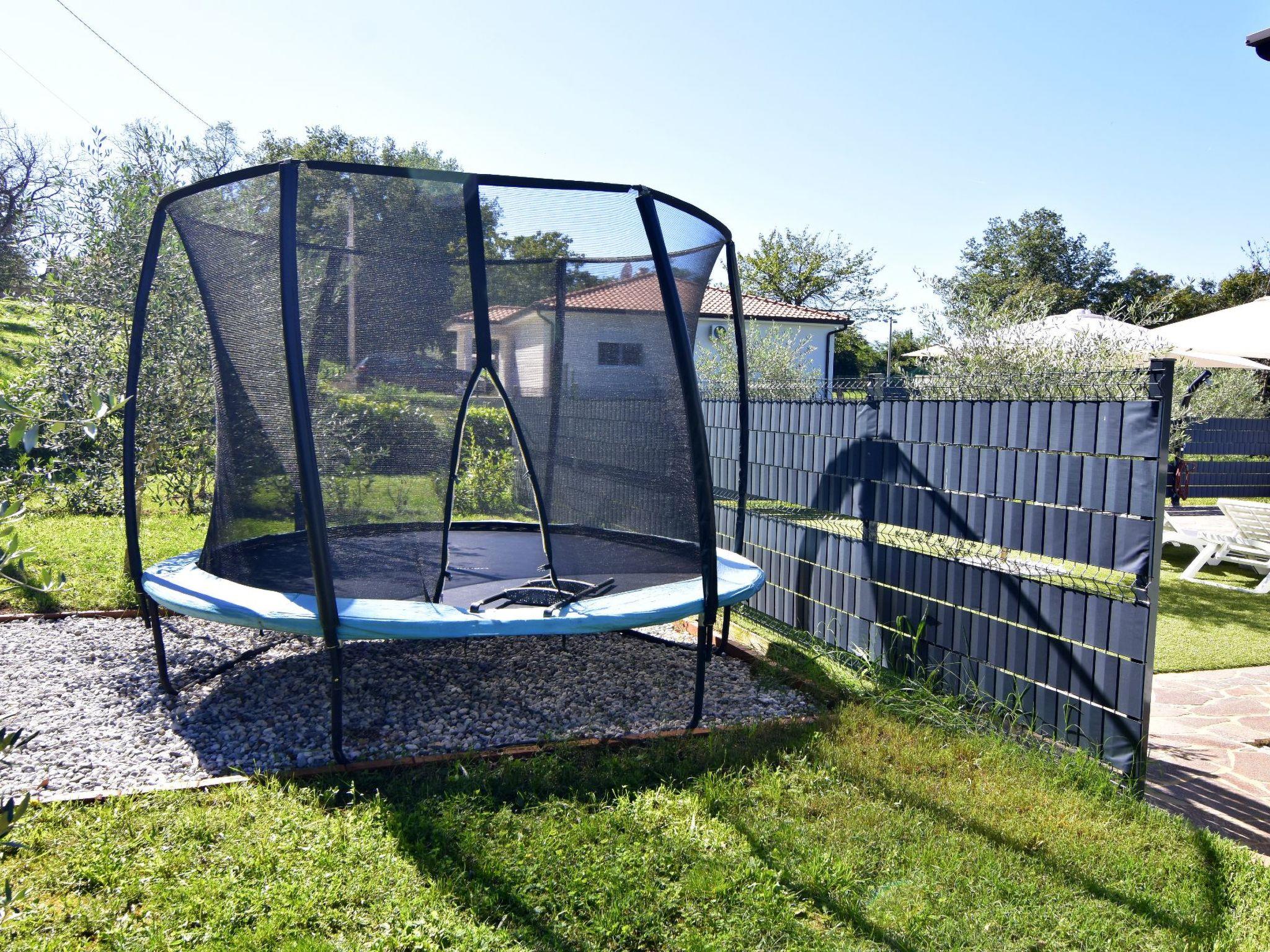 Outside the house, surrounded by greenery, you will find a spacious private garden with a wonderful pool area, equipped with sun loungers, parasols, an outdoor shower, a barbecue and a trampoline for children. Free private parking is available directly in front of the house, so you don't have to worry about the safety of your vehicle.