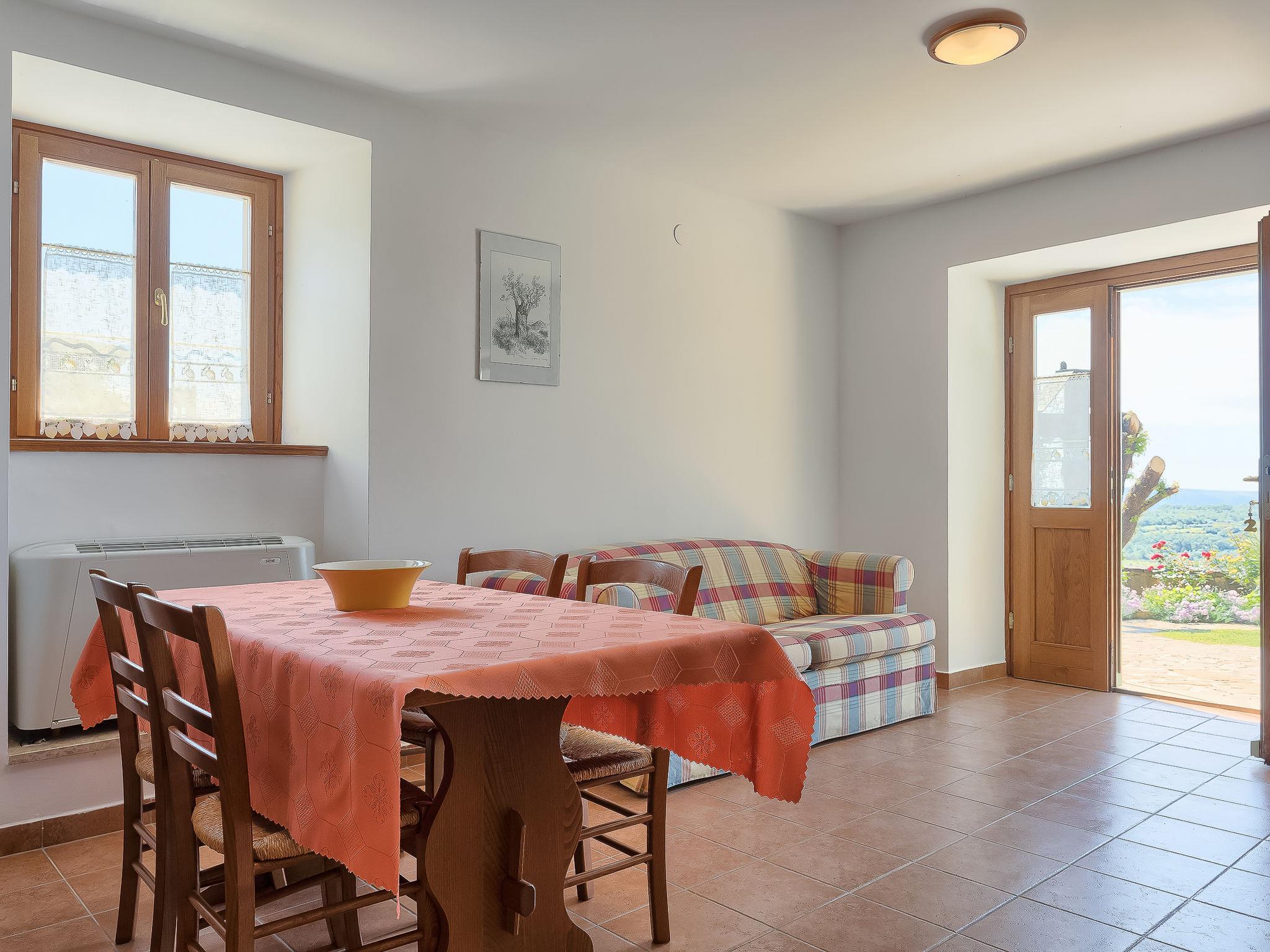 14-room farmhouse 240 m2 on 3 levels. Cosy furnishings: living/dining room with kitchen corner, satellite TV and air conditioning. Exit to the garden, to the terrace, to the swimming pool. Living/dining room with kitchen corner, satellite TV and air conditioning. Exit to the garden, to the terrace, to the swimming pool. Living/dining room with kitchen corner, satellite TV and air conditioning. Exit to the garden, to the terrace. Living/dining room with satellite TV and air conditioning. Exit to the garden, to the terrace. Open kitchen (oven, 4 ceramic glass hob hotplates, electric coffee machine). 4 showers/WC. Upper floor: 4 rooms, each room with 1 french bed (160 cm, length 200 cm), air conditioning. 2 rooms, each room with 1 bed (140 cm, length 200 cm), air conditioning. 2 rooms, each room with 1 bed (90 cm, length 200 cm), air conditioning. 4 showers/bidet/WC. Top floor: 1 room with 1 double bed (2 x 90 cm, length 200 cm), air conditioning. 1 room with 1 french bed (160 cm, length 200 cm), air conditioning. Heating (extra). Terrace furniture, deck chairs. Marvellous panoramic view of the countryside. Facilities: Internet (WiFi, free). Parking (fenced). Suitable for families. Maximum 1 pet/ dog allowed. The property is composed of 4 units, each with private entrance, it's own living/dining room, kitchenette on the ground floor and bedrooms on the upper floor.
