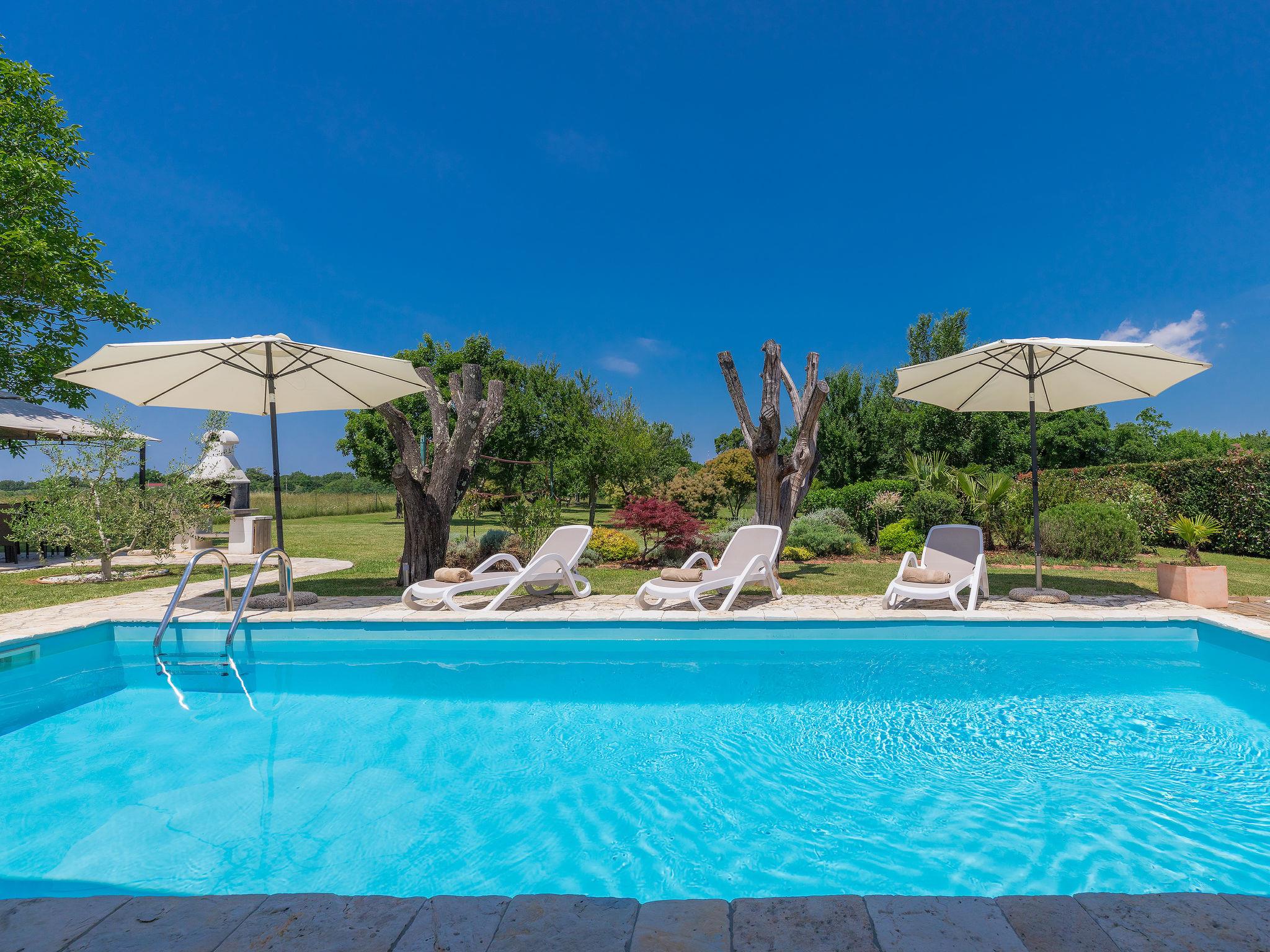 Plovanija 4 km from Buje: Single-family house "Villa Renzo". In the hamlet Simonetija 1 km from the centre of Plovanija, 10 km from the centre of Umag, in a quiet position, 5 km from the sea, in the countryside. Private: property 3'000 m2 (fenced), garden with lawn 1'000 m2 trees, swimming pool angular (3 x 8 m, depth 140 cm, seasonal availability: 11.May. - 21.Sep.). Outdoor shower, hot tub, barbecue, children's playground (swing). In the house: internet access, sauna, billiard table, washing machine. Roofed, parking at the house on the premises. Shop, restaurant 500 m, bus stop 3.9 km, pebble beach 5 km. Golf course (18 hole) 15 km, tennis 7 km, walking paths from the house, cycle lane 10 m. The owner does not accept any youth groups.