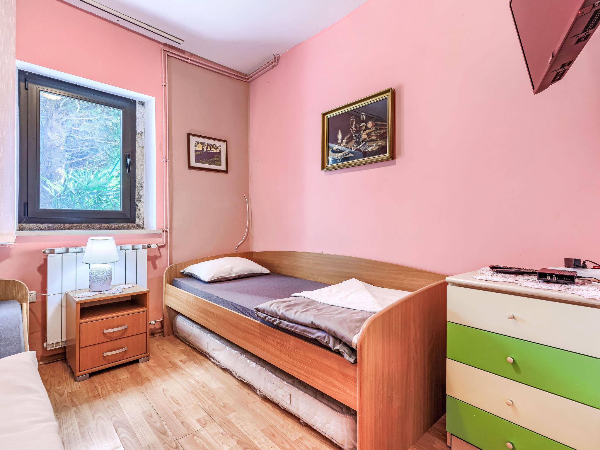 2-room apartment 55 m2, on the ground floor. Rustic furnishings: living/dining room with open-hearth fireplace (only for decoration), satellite TV and air conditioning. Exit to the garden. 1 room with 2 beds (90 cm, length 200 cm), satellite TV. Small, open kitchen (2 hot plates). Bath/bidet/WC. No heating option. Facilities: washing machine, hair dryer. Internet (WiFi, free). Maximum 1 pet/ dog allowed.