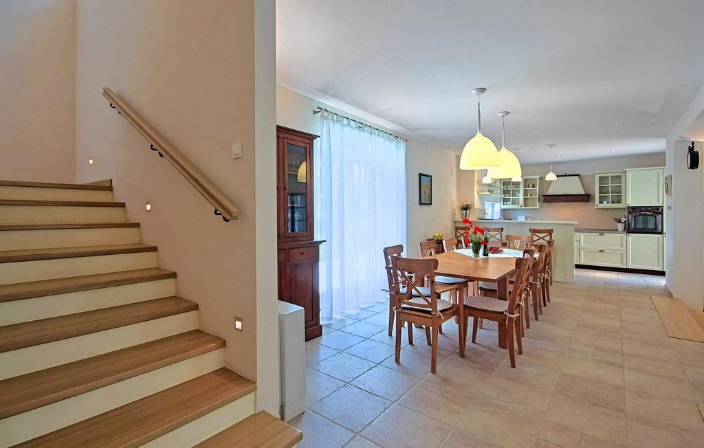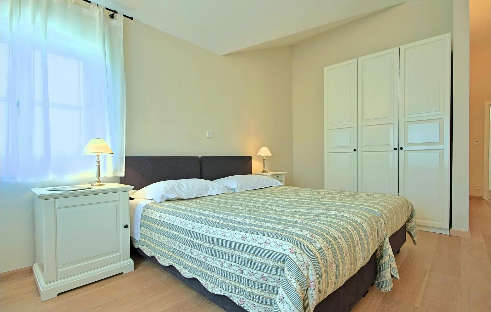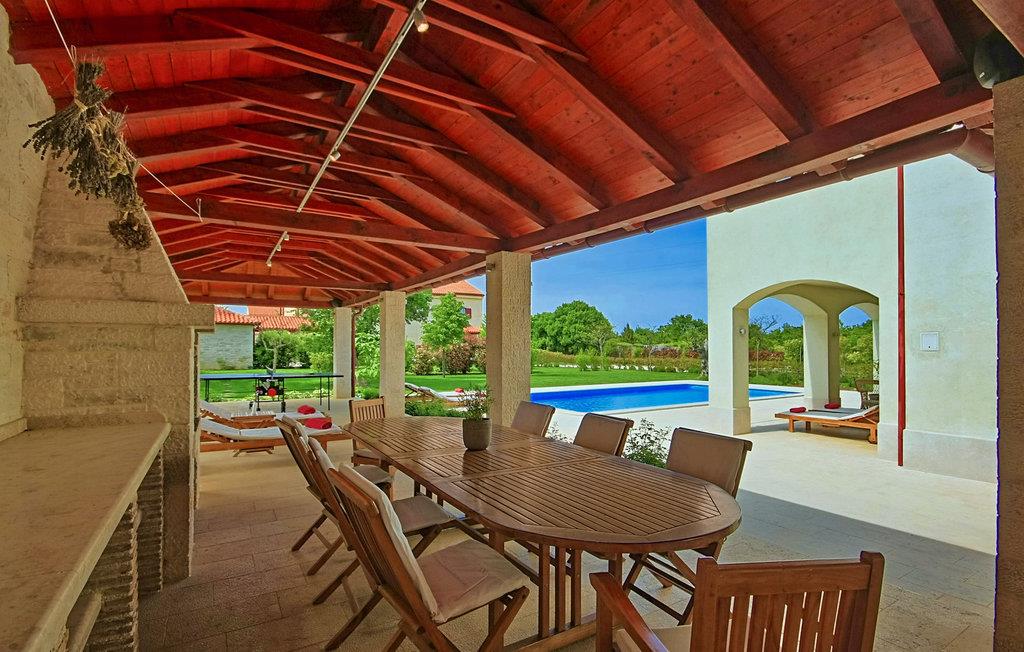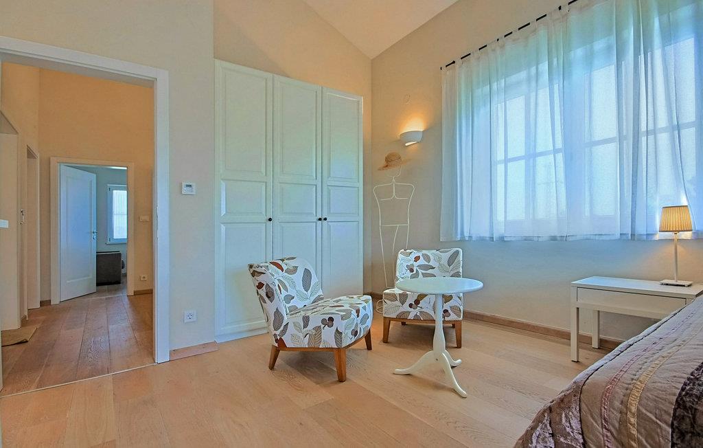 Den maleriske Villa Alma ligger i den lille by Svetvincenat i det sydlige Istrien, som vil glæde dig med sit rige turist- og gastronomiske tilbud samt talrige kulturelle og historiske seværdigheder og steder. Villa Alma er omgivet af smukke græsplæner og duftende middelhavsgrønt, 20 minutters kørsel fra de smukke strande i Istrien og er et glimrende valg til en ferie. Med et areal på 350 m2 består Villa Alma af 4 soveværelser, hvoraf tre er på første sal og har egen terrasse med bord og to stole. Kontorværelset ligger også på første sal og er udstyret med en seng, mens det sidste værelse ligger i villaens stueetage og har direkte udgang til poolen. Tre soveværelser er indrettet med dobbeltsenge, det ene har to enkeltsenge, der kan skubbes sammen om nødvendigt. Hvert værelse har eget badeværelse med gulvvarme og radiator. Det ekstra badeværelse er placeret i annekset nær saunaen og poolen. Der er også et separat toilet, et fuldt udstyret, moderne køkken med spiseplads og en stue udstyret med et tv, en PlayStation-konsol og en pejs. Sammen med tre andre villaer ligger Villa Alma på en 25.000 m2 stor grund, hvor gæsterne er garanteret privatliv, da terrasserne er adskilt af hække og træer for at skabe et mere intimt rum. Alle villaer deler 2 tennisbaner, halv basketballbane (1 bøjle), 2 legepladser og bowlingområde. Den 3000 m² store have har en smuk swimmingpool (50 m²) med mulighed for opvarmning og massage, omgivet af liggestole, samt en spiseplads og en udendørs grill. Villaens rige underholdningstilbud omfatter bordfodbold, billard, vinkælder, 5 cykler, jacuzzi og sauna. Der er også et stereoanlæg med eksterne højttalere i objektet ved siden af grillpladsen. Villa Alma har 3 private parkeringspladser og der er mulighed for at parkere yderligere to køretøjer. Der opkræves et gebyr på 10 € i timen for at bruge tennisbanen om natten, der skal betales lokalt. Daglig brug er gratis. Poolen er lukket fra november til april. Kæledyr er tilladt på denne ejendom efter ejerens skøn eller mod et gebyr. Bemærk venligst, at denne ejendom kun accepterer ungdomsgrupper eller polterabender mod betaling af et refunderbart depositum. Er I en ungdomsgruppe eller polterabend, vil I blive bedt om at betale depositum ved ankomst. Ethvert beløb, der kræves for at reparere eventuelle skader på boligen forårsaget af dig under dit ophold, vil blive trukket fra depositumet og derefter returneret til dig.