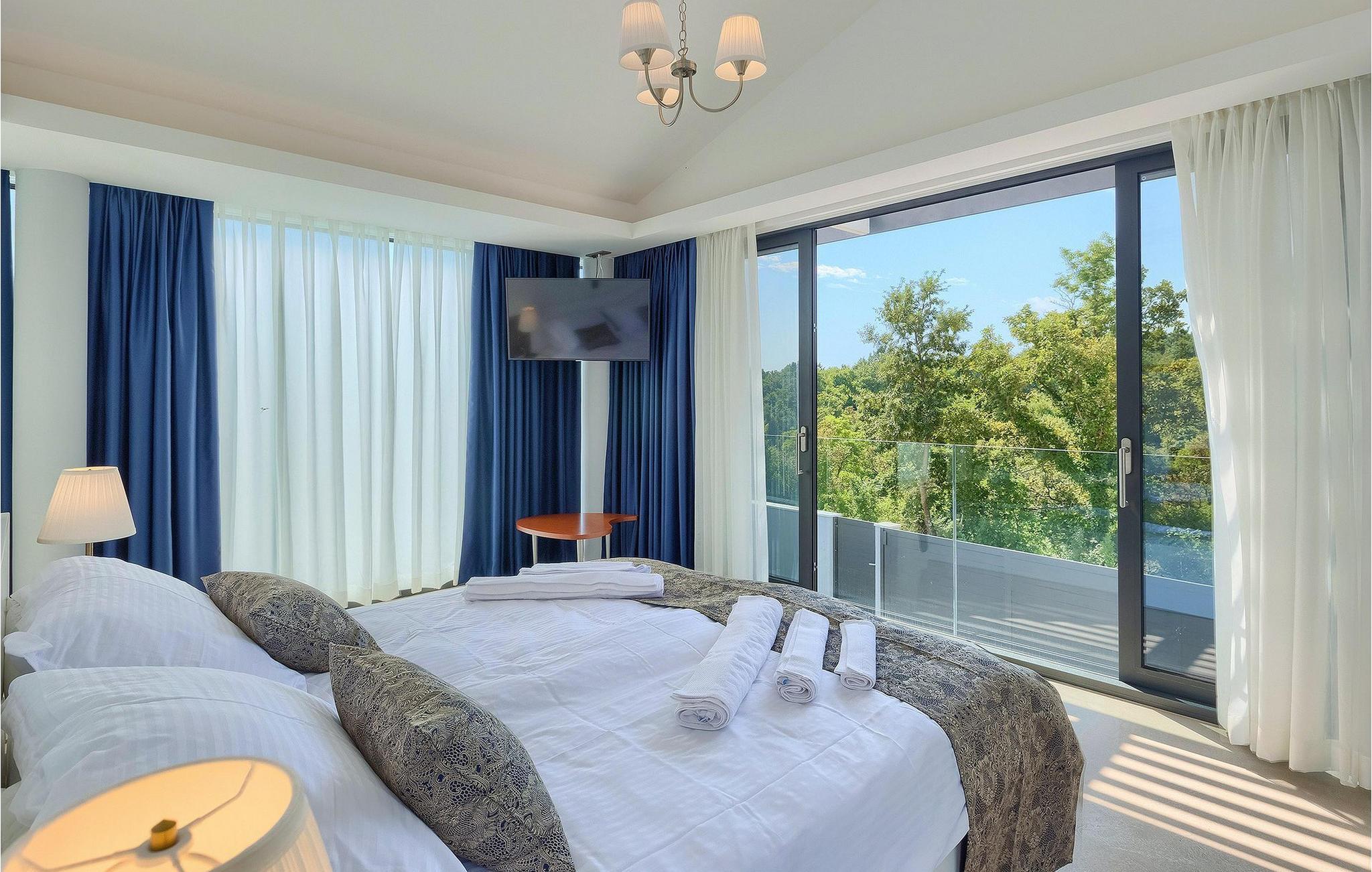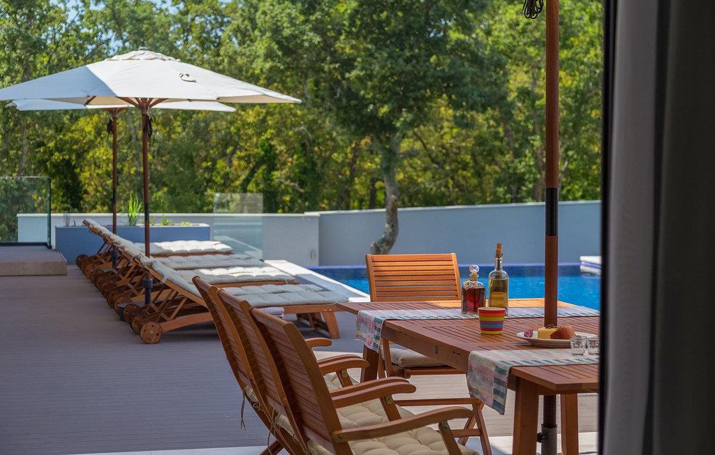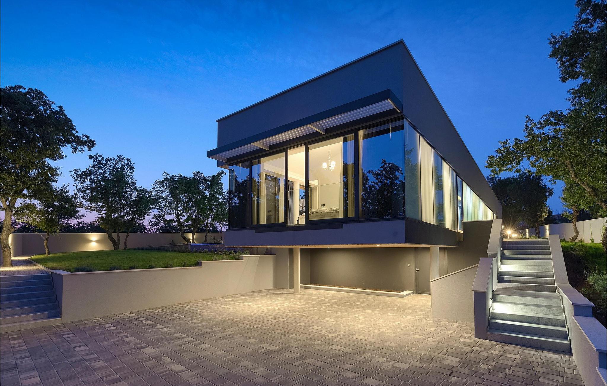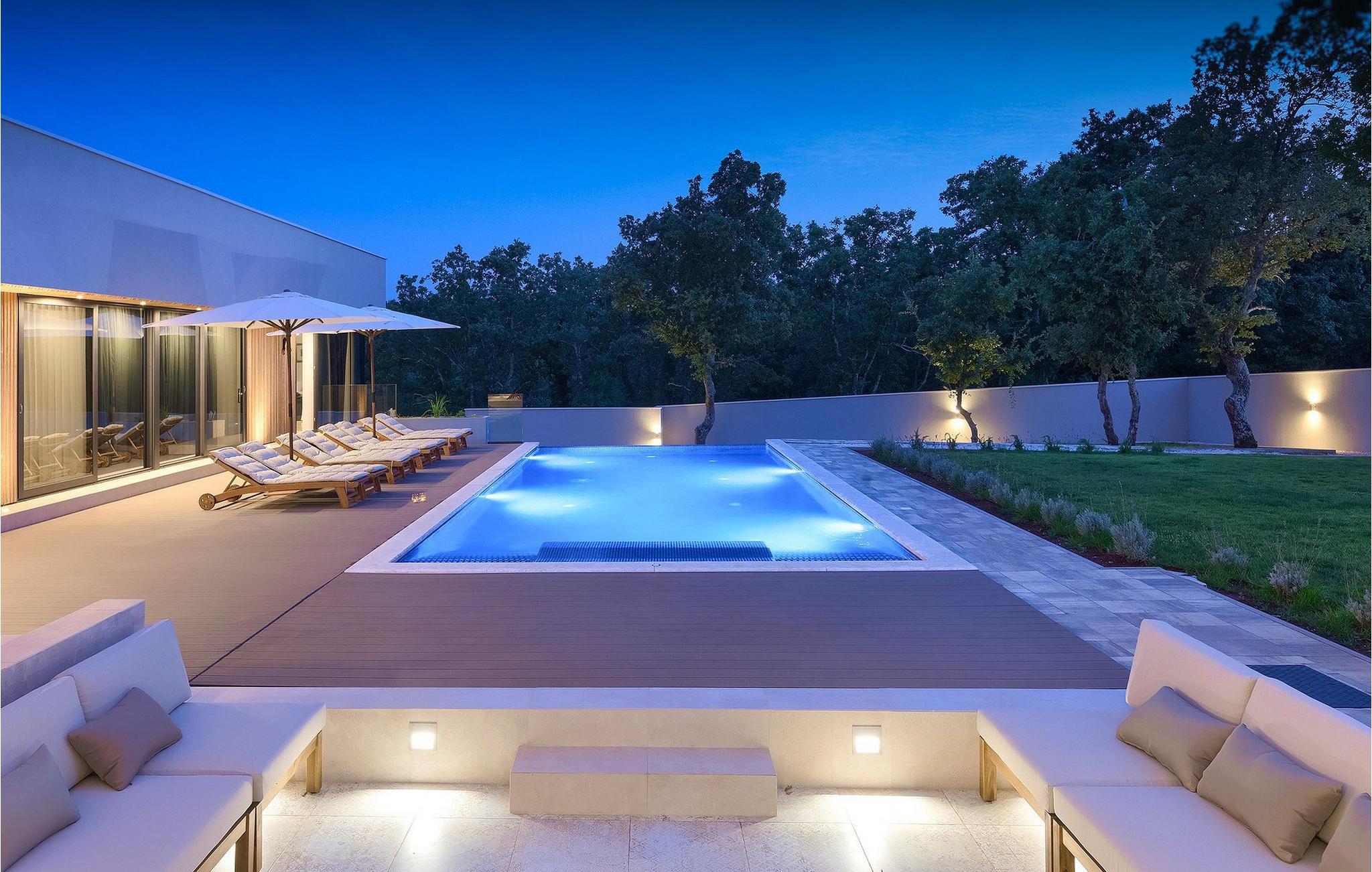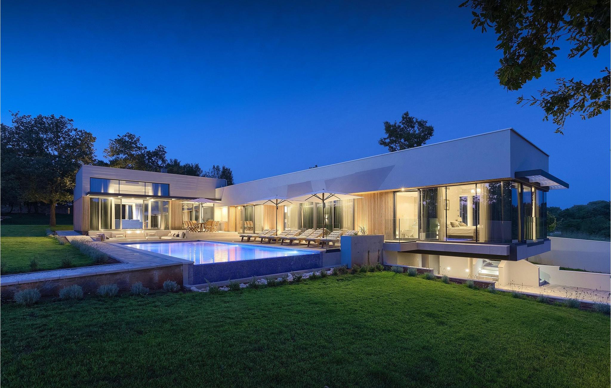 Den fascinerende Villa Agnes ligger i det rolige Istriens landskab i en lille landsby ved navn Butkovici. Dette smukke stykke moderne arkitektonisk design er omgivet af en skov og byder på en 60 kvadratmeter privat pool samt en 2500 kvadratmeter grøn have med grill og et hængenet.