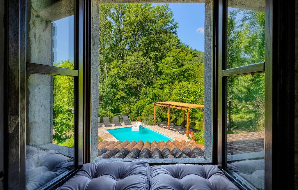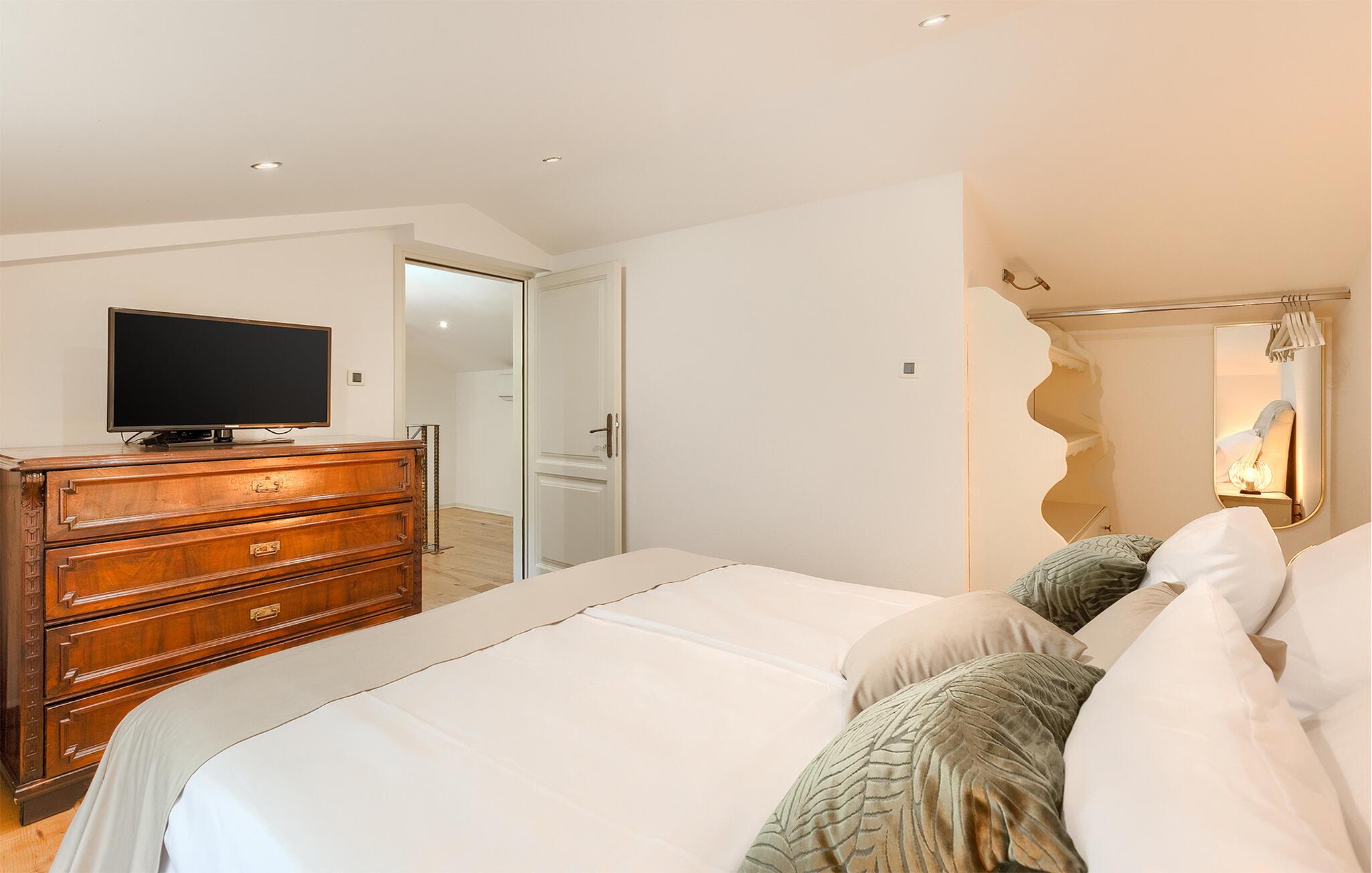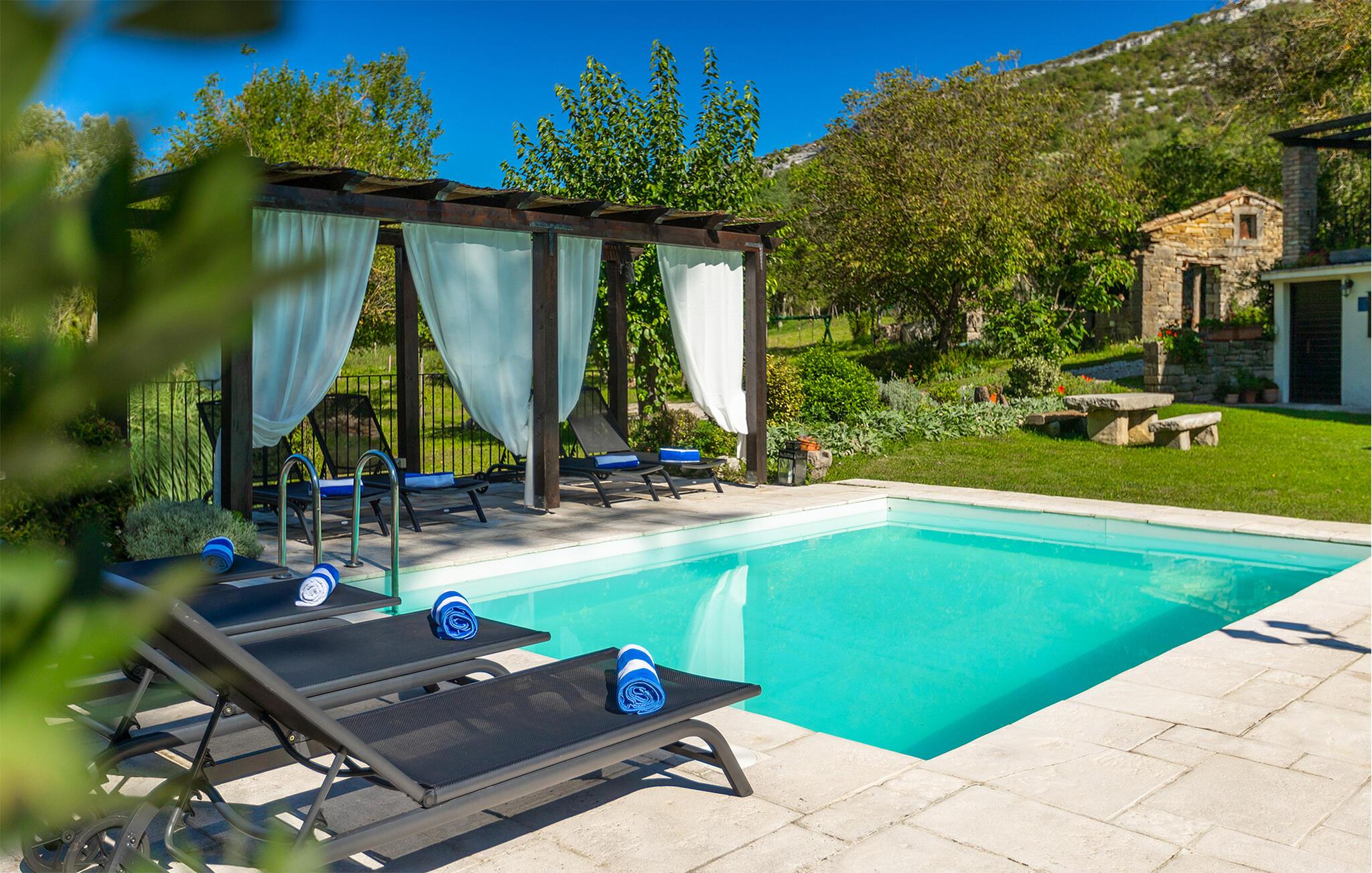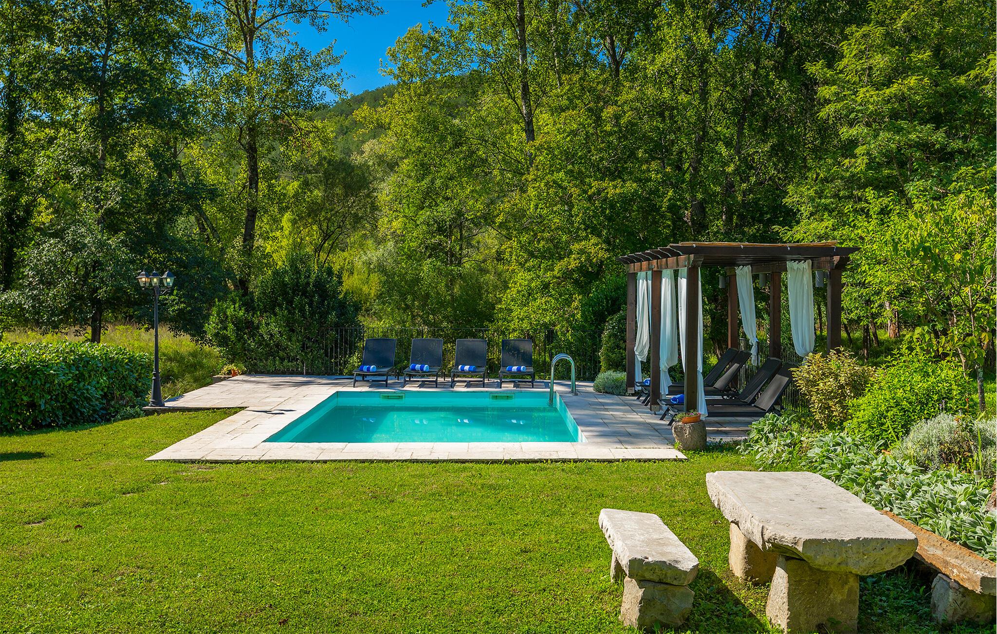Smukke Villa Mulino ligger midt i det istriske landskab, ideelt til en afslappende ferie. Denne restaurerede villa plejede at være en gammel mølle, og stenhusets autentiske udseende passer perfekt ind i landskabet. Foran villaen kan du køle af i poolen eller nyde din yndlingsdrink på liggestolene. I den rolige atmosfære i de istriske omgivelser vil du blive særligt afslappet af lyden af åen, der løber gennem ejendommen. På den overdækkede terrasse foran villaen kan du nyde retter tilberedt på en muret grill i haven. Inde i villaen er udseendet af klassiske istriske huse med stenvægge og trælofter bevaret. Stuen med pejs er indrettet i denne stil, og fra dette værelse er der også udgang til terrassen. Fra stuen udvider en spisestue, hvorigennem man kommer ind i et charmerende køkken. Du vil blive imponeret af køkkenet, som er indrettet med pastelgrønne toner i kombination med træ og sten. På første sal er der to hyggelige soveværelser med dobbeltsenge, mens de resterende soveværelser med dobbeltsenge er på anden sal. Der er også et badeværelse på hver etage. Du vil ikke kun bruge din fritid på terrassen foran villaen, men også på terrassen på første sal, som byder på udsigt til den betagende natur. Planlægger du en familieferie, vil du især nyde gyngerne til børnene i haven. Villaen er beliggende lige uden for den antikke by Buzet. Buzet ligger i den nordlige del af Istrien nær grænsen til Slovenien. Dens historiske kerne, der stammer fra middelalderen, ligger på en bakketop over en frugtbar dal af den længste flod i Istrien - Mirna. I dag er Buzet almindeligt kendt som 'trøflernes by', da skovene langs Mirna-floden er særligt rige på dem. Ifølge nogle synspunkter er den hvide trøffel i Istrien lige så god som den mest berømte hvide trøffel fra den italienske region Alba. Til ære for denne trøffel arrangeres hvert år Trøffeldage i september og oktober. Den anden weekend i september finder også en stor folkefest i Buzet sted med en særlig attraktion – en kæmpe omelet (almindeligvis kendt som 'fritada' eller 'fritaja') med over 2.000 æg og 10 kg trøfler er tilberedt i en kæmpestor pande. Denne begivenhed markerer officielt begyndelsen på Trøffeldage i Istrien. I Buzets omgivelser er der nogle meget velbevarede middelalderbyer.
