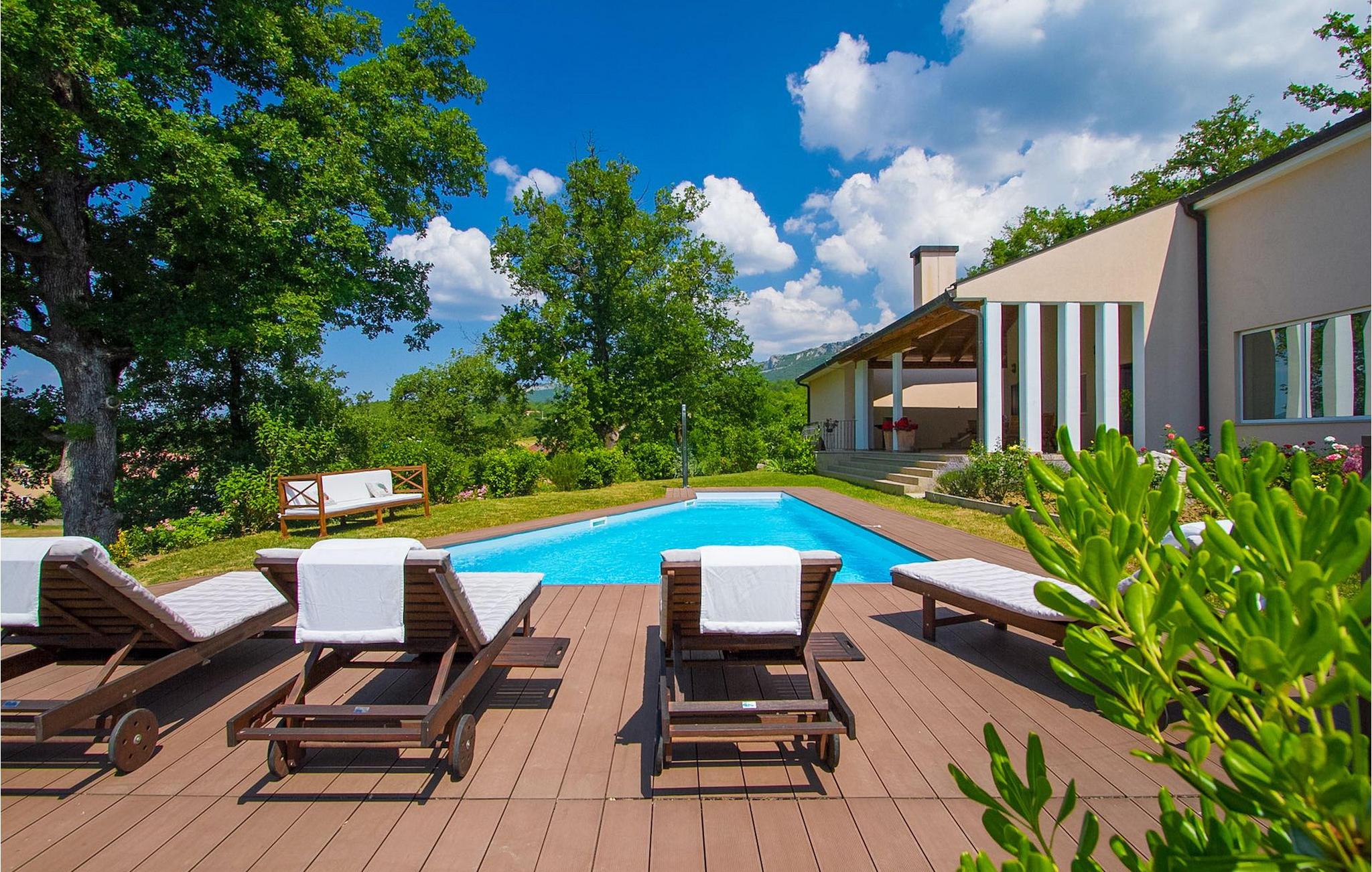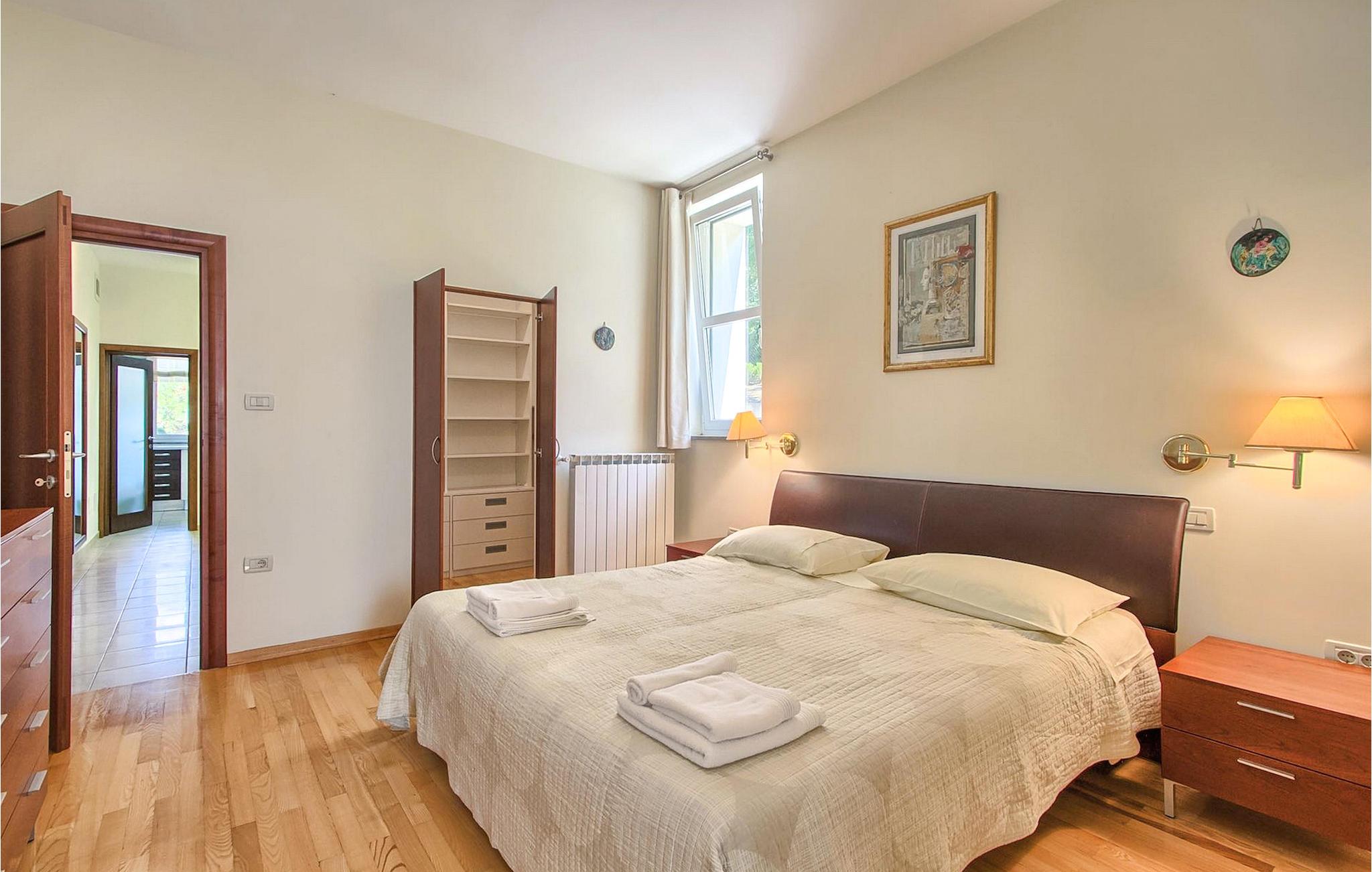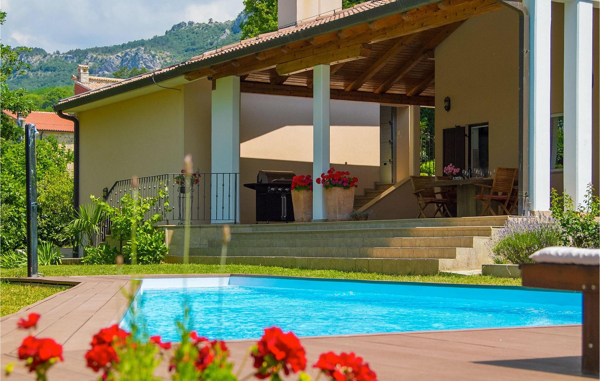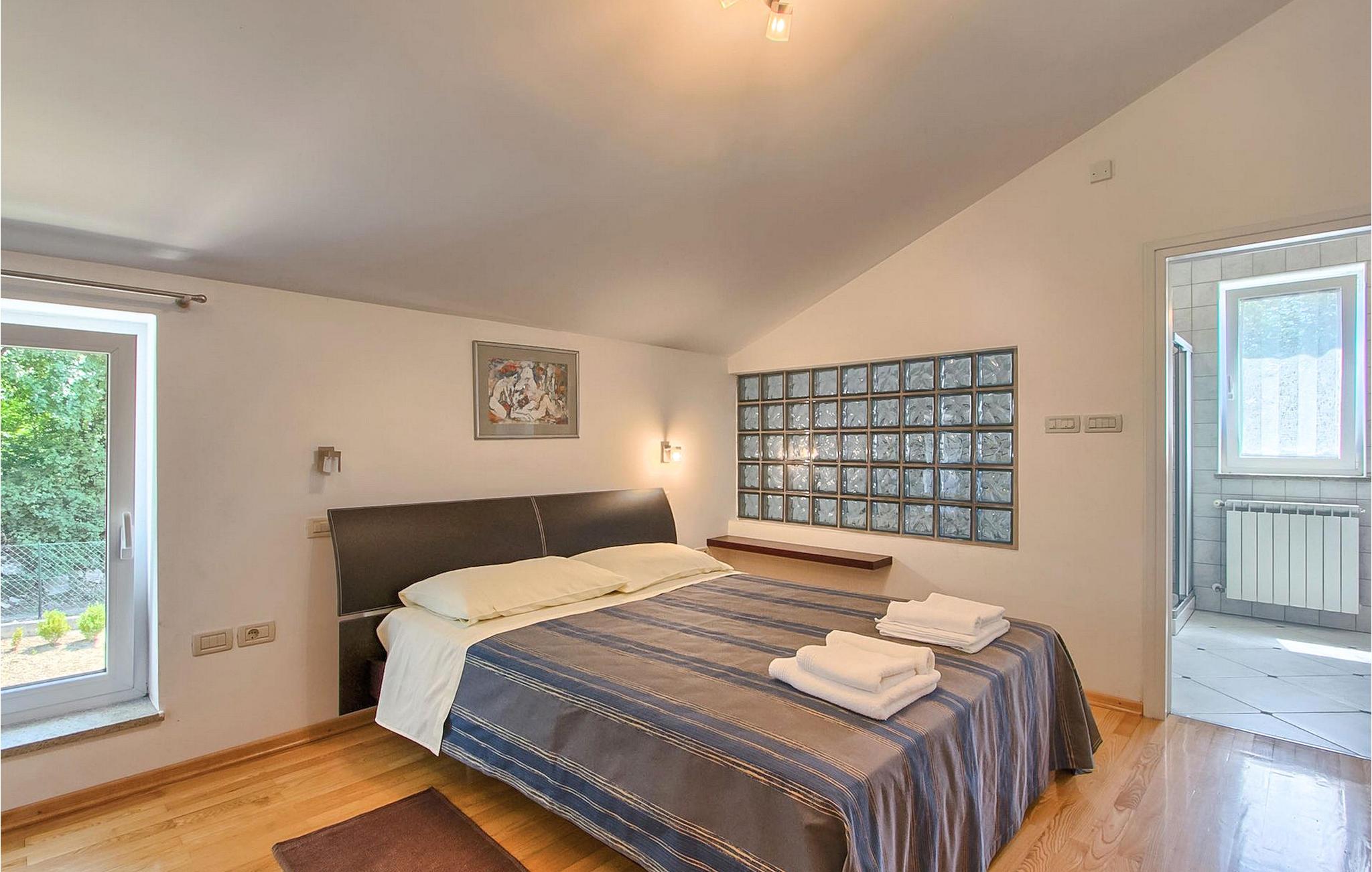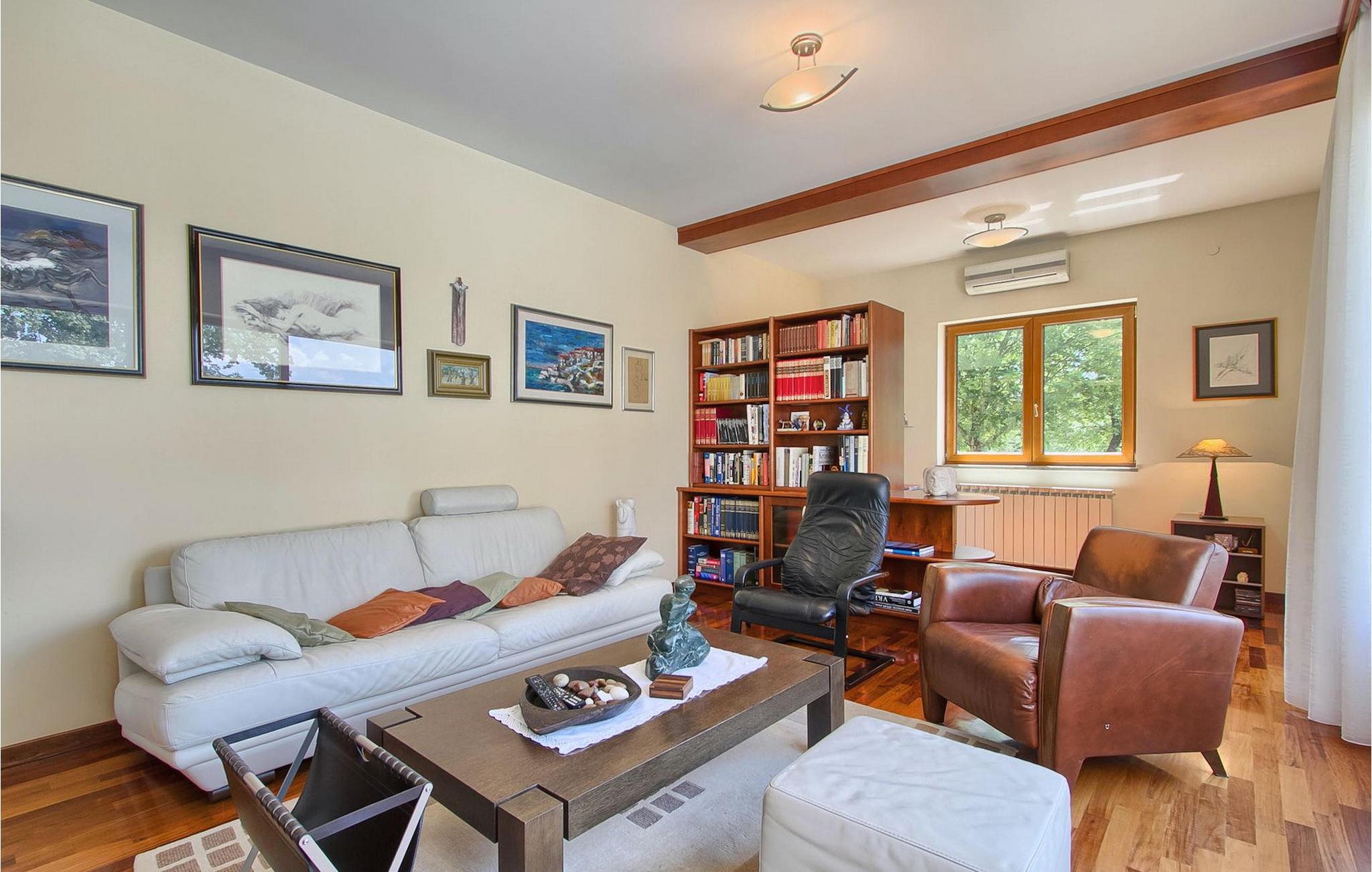Dette er en ejendom ideel til familieferier, der giver privatliv og sikrer afslapning. Villa Vesna er en smuk moderne ejendom, der tilbyder indkvartering for op til 8 gæster. Villaen har i alt 4 soveværelser, 3 med dobbeltsenge og et med 2 enkeltsenge. I stueetagen er der en rummelig stue/spisestue/køkken med direkte adgang til den private swimmingpool i haven, hvor du også finder et loungeområde. Den store swimmingpool er 40m2 stor og dens moderne form giver en længde på over 10 meter, mens den smukke middelhavshave byder på privatliv og fred. Der er en garage til 2 køretøjer og en typisk istrisk konoba - et sted, hvor du sandsynligvis vil tilbringe det meste af din tid, mens du bor på Villa Vesna. Dette er et rummeligt værelse med åben pejs og et stort bord, hvor hele selskabet kan samles og hygge sig. Villa Vesna ligger i en lille og rolig landsby kaldet Majcani lige uden for Buzet. I dag er Buzet almindeligt kendt som 'trøflernes by', da skovene langs Mirna-floden er særligt rige på trøfler. Buzet, en by placeret på en bakke midt i Mirna-flodens frugtbare dal var beboet i forhistorien, den blev befæstet under det romerske styre. Den centrale plads med sognekirken Jomfru Marias himmelfart er selve kernen i den gamle bydel. Mens du er her, så sørg for ikke at gå glip af et besøg på County Museum of Buzet og dets omgivelser. I Buzets omgivelser er der nogle meget velbevarede middelalderbyer. Villa Vesna tilbyder privatlivets fred og fred i en lille landsby, og alligevel er alt kun et par minutters kørsel væk, markedet, restauranter og barer.