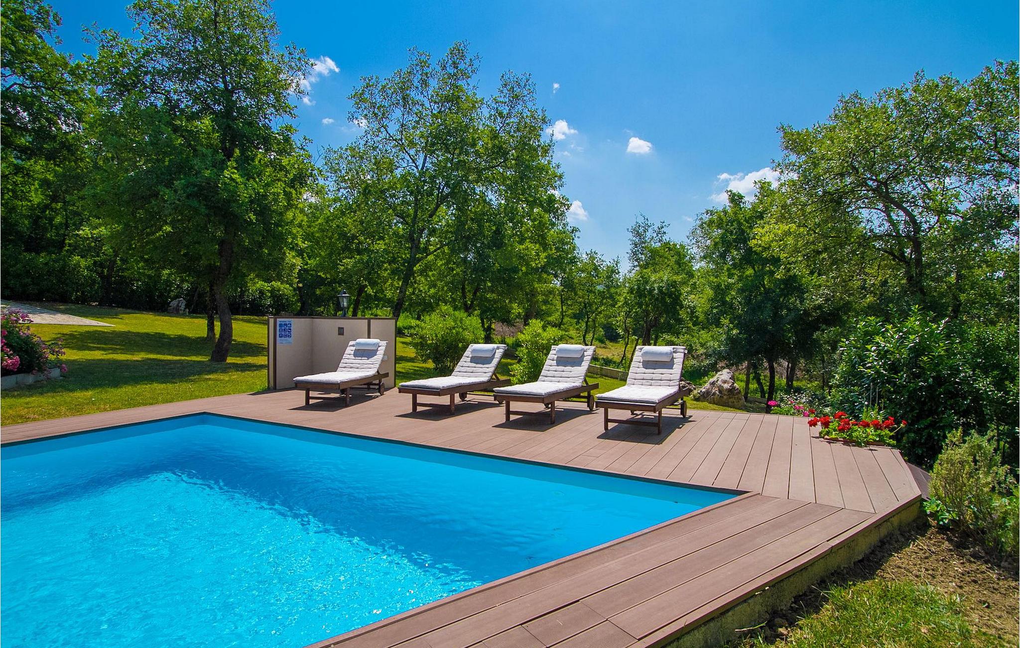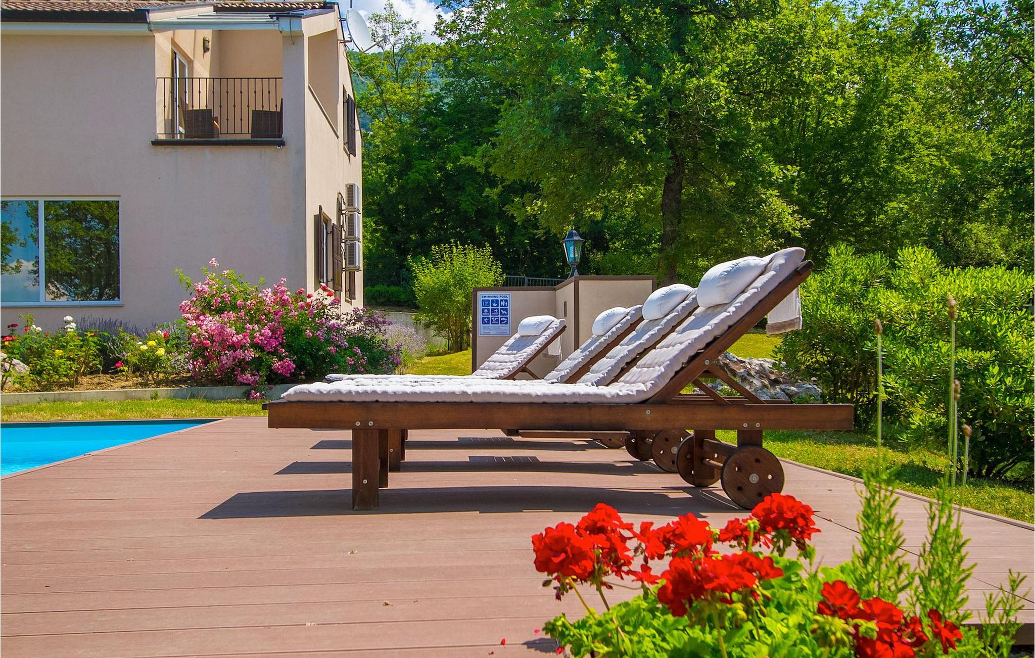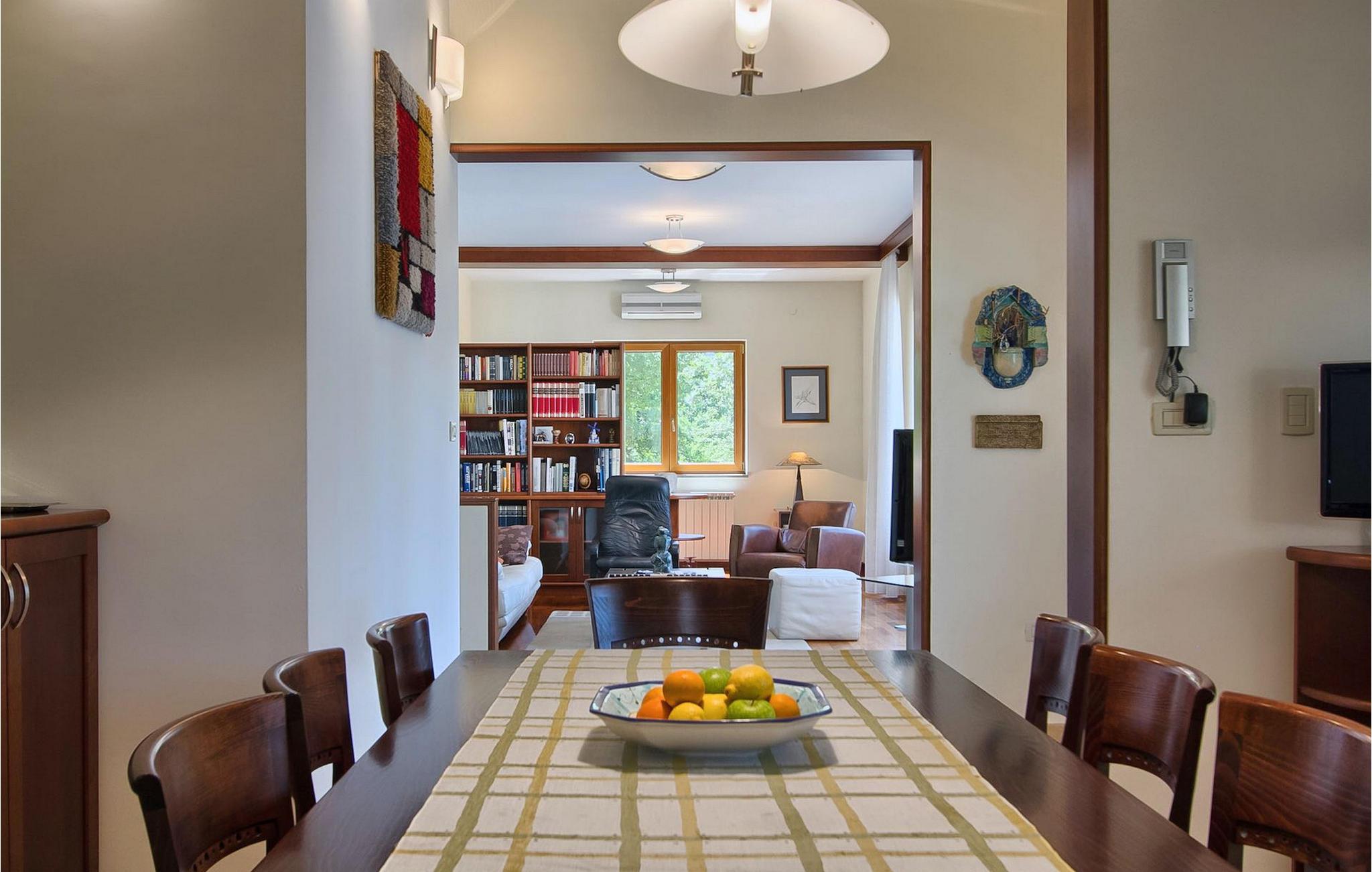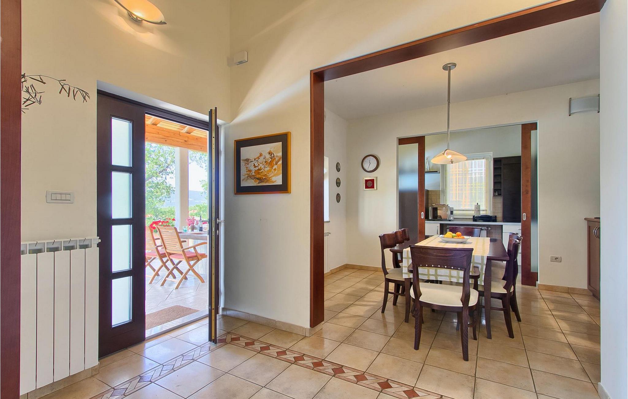 Dette er en ejendom ideel til familieferier, der giver privatliv og sikrer afslapning. Villa Vesna er en smuk moderne ejendom, der tilbyder indkvartering for op til 8 gæster. Villaen har i alt 4 soveværelser, 3 med dobbeltsenge og et med 2 enkeltsenge. I stueetagen er der en rummelig stue/spisestue/køkken med direkte adgang til den private swimmingpool i haven, hvor du også finder et loungeområde. Den store swimmingpool er 40m2 stor og dens moderne form giver en længde på over 10 meter, mens den smukke middelhavshave byder på privatliv og fred. Der er en garage til 2 køretøjer og en typisk istrisk konoba - et sted, hvor du sandsynligvis vil tilbringe det meste af din tid, mens du bor på Villa Vesna. Dette er et rummeligt værelse med åben pejs og et stort bord, hvor hele selskabet kan samles og hygge sig. Villa Vesna ligger i en lille og rolig landsby kaldet Majcani lige uden for Buzet. I dag er Buzet almindeligt kendt som 'trøflernes by', da skovene langs Mirna-floden er særligt rige på trøfler. Buzet, en by placeret på en bakke midt i Mirna-flodens frugtbare dal var beboet i forhistorien, den blev befæstet under det romerske styre. Den centrale plads med sognekirken Jomfru Marias himmelfart er selve kernen i den gamle bydel. Mens du er her, så sørg for ikke at gå glip af et besøg på County Museum of Buzet og dets omgivelser. I Buzets omgivelser er der nogle meget velbevarede middelalderbyer. Villa Vesna tilbyder privatlivets fred og fred i en lille landsby, og alligevel er alt kun et par minutters kørsel væk, markedet, restauranter og barer.