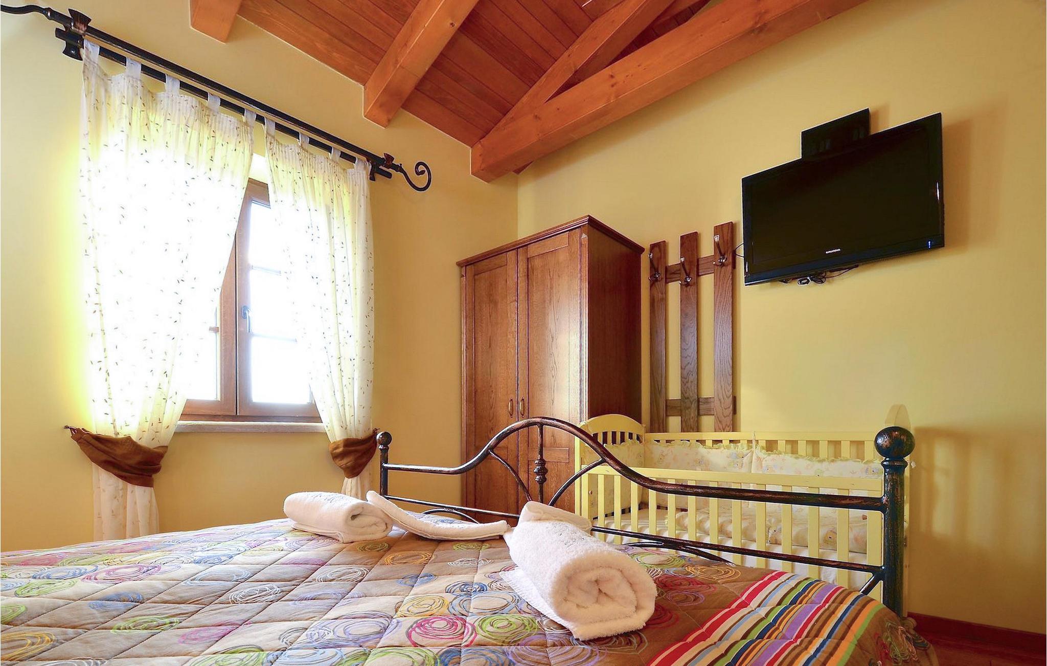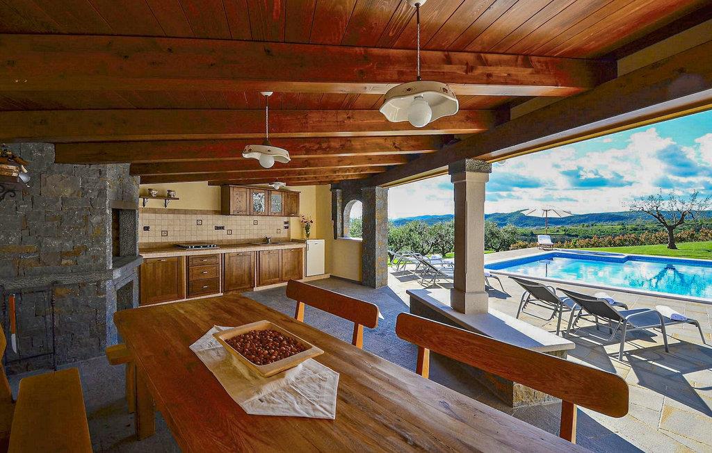Den rummelige stue i denne villa er et ideelt område at samles, da det omfatter et stort træbord med plads til tolv og en traditionel istrisk pejs. Mens åbningen til venstre fører ind i et køkken udstyret på en moderne måde, trækker den forreste dig ud på en terrasse med udsigt over det hvide trøffelhabitat, den begravede sø Butoniga og flere maleriske, historiske små byer. Lejen inkluderer en gratis trøffelsmagning arrangeret af ejerne. På samme etage er der et rummeligt to-personers soveværelse med eget bad med udgang til terrassen. Villaen tilbyder lokale kvalitetsprodukter lavet af ejerne, såsom istriske pølser med trøfler, trøffelost, trøffelhonning. Anden sal er reserveret til tre soveværelser. Hvert soveværelse har eget badeværelse med to håndvaske og bruser. Stueetagen er reserveret til rekreation, tidsfordriv og afslapning. Intet er overladt til tilfældighederne med alle generationer taget hånd om. For de mindste er der et børnehjørne, mens der for de ældre er plads til afslapning – et wellness-område med en fire personers jacuzzi og en finsk sauna. Også på denne etage er der poolbord, bordfodbold og dartmaskine samt motionsområde med direkte adgang til poolen. Gæsterne har også et vaskeri til deres rådighed. Det femte og også det største soveværelse ligger i stueetagen, det har en dobbeltseng og 2 enkeltsenge, et moderne badeværelse og direkte adgang til haven. Hvis du har brug for at køle af i de varme sommermåneder, er der en 50 m2 stor pool med hydromassagepumper. Du kan fange lidt sol i en af de tolv liggestole, og hvis du ønsker et mindre isoleret sted, vælg et af oliventræerne for at give dig lidt skygge. Mens du nyder udsigten over søen og de omkringliggende hundredeårsskove, kan din yngste hygge sig i sandkassen, på vippen eller gyngerne. I haven er der også et overdækket udekøkken med grill, gaskomfur, vask, køleskab og et tolv personers bord. Her kan gæsterne selv tilberede specialiteter fra Istrien eller stole på professionel vejledning. En mobil butik med basale dagligvarer kommer til landsbyen 3 gange om ugen. Villa Olea er beliggende i en lille og rolig landsby kaldet Paladini, beliggende på en unik høj position, der tilbyder perfekt privatliv og betagende udsigt til søen Butoniga og dens magiske omgivelser. Den større by er Buzet, der er almindeligt kendt som 'trøflernes by', da skovene langs Mirna-floden er særligt rige på dem. Beliggende på en bakke, blev det befæstet under det romerske styre, og den centrale plads med sognekirken for Jomfru Marias himmelfart er selve kernen i den gamle bydel. Mens du er her, så sørg for ikke at gå glip af et besøg på County Museum of Buzet og dets omgivelser. I Buzets omgivelser er der nogle meget velbevarede middelalderbyer.